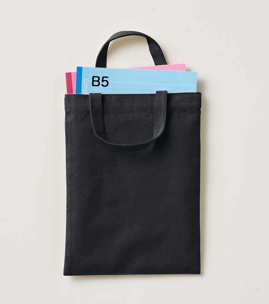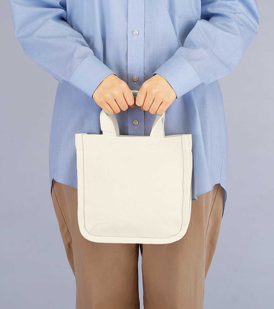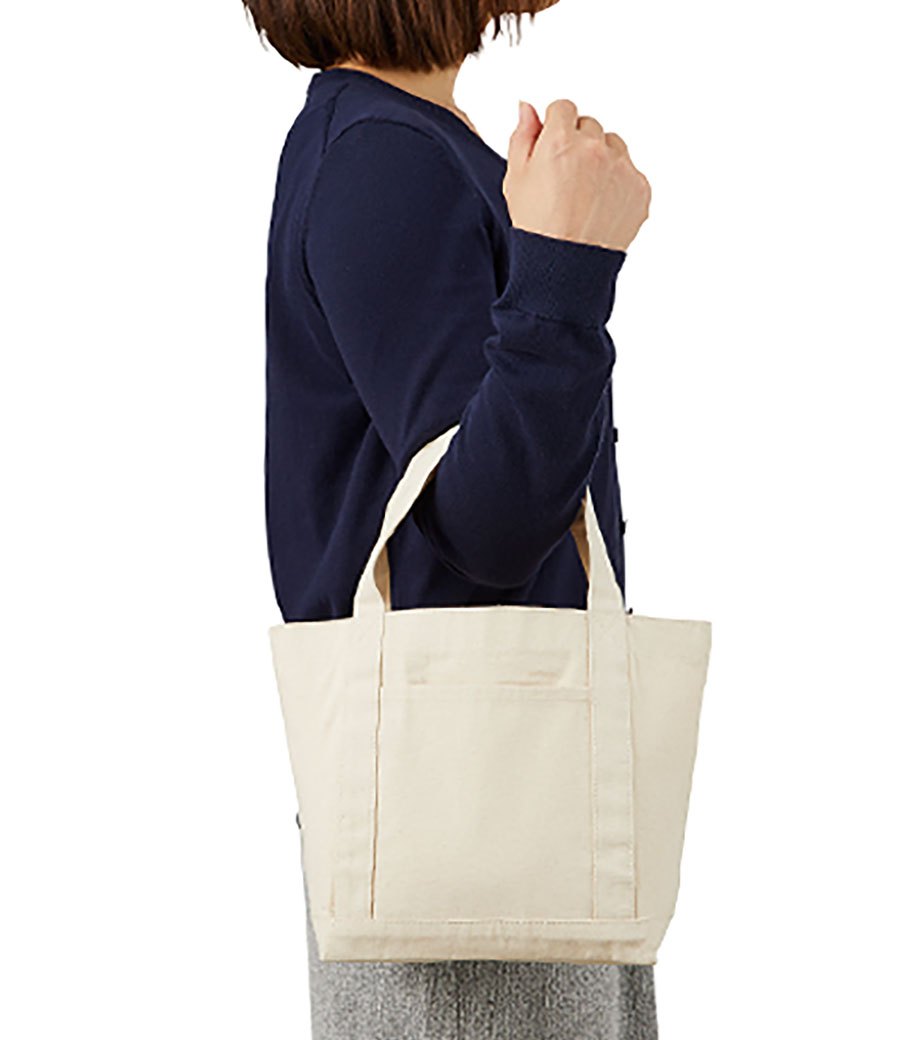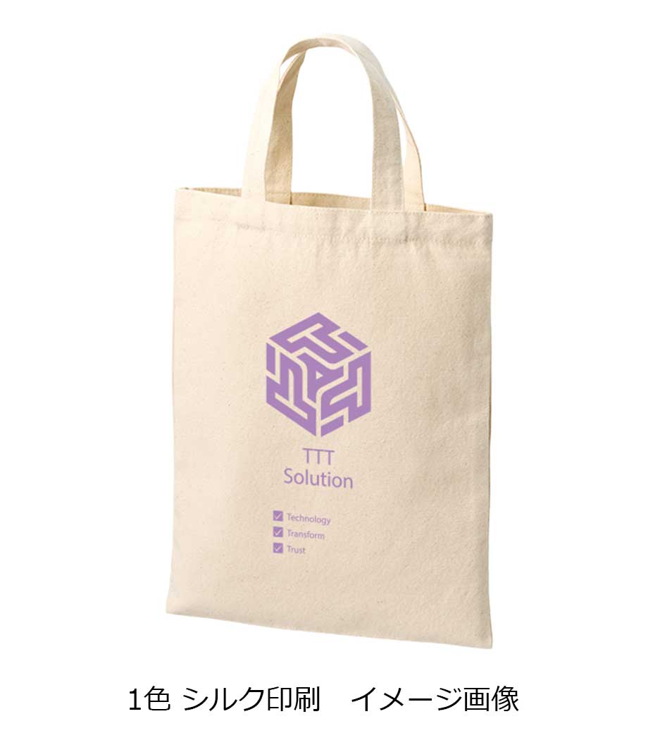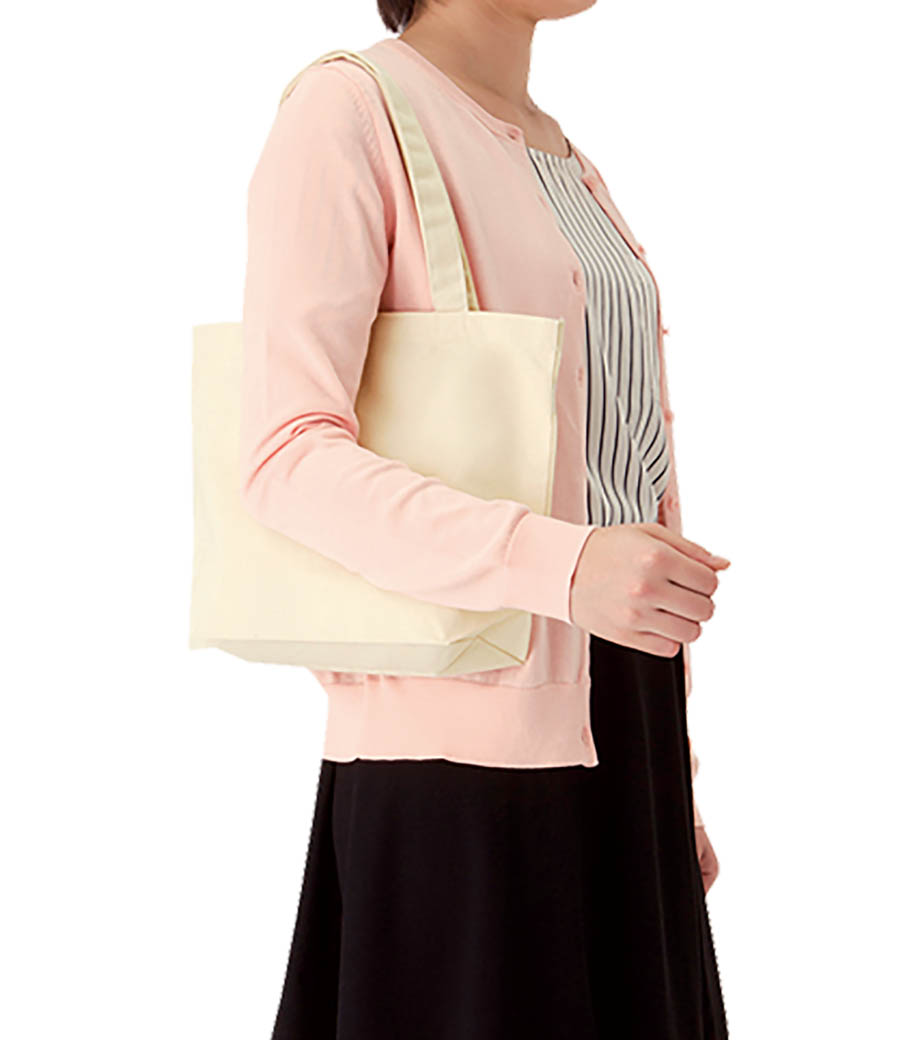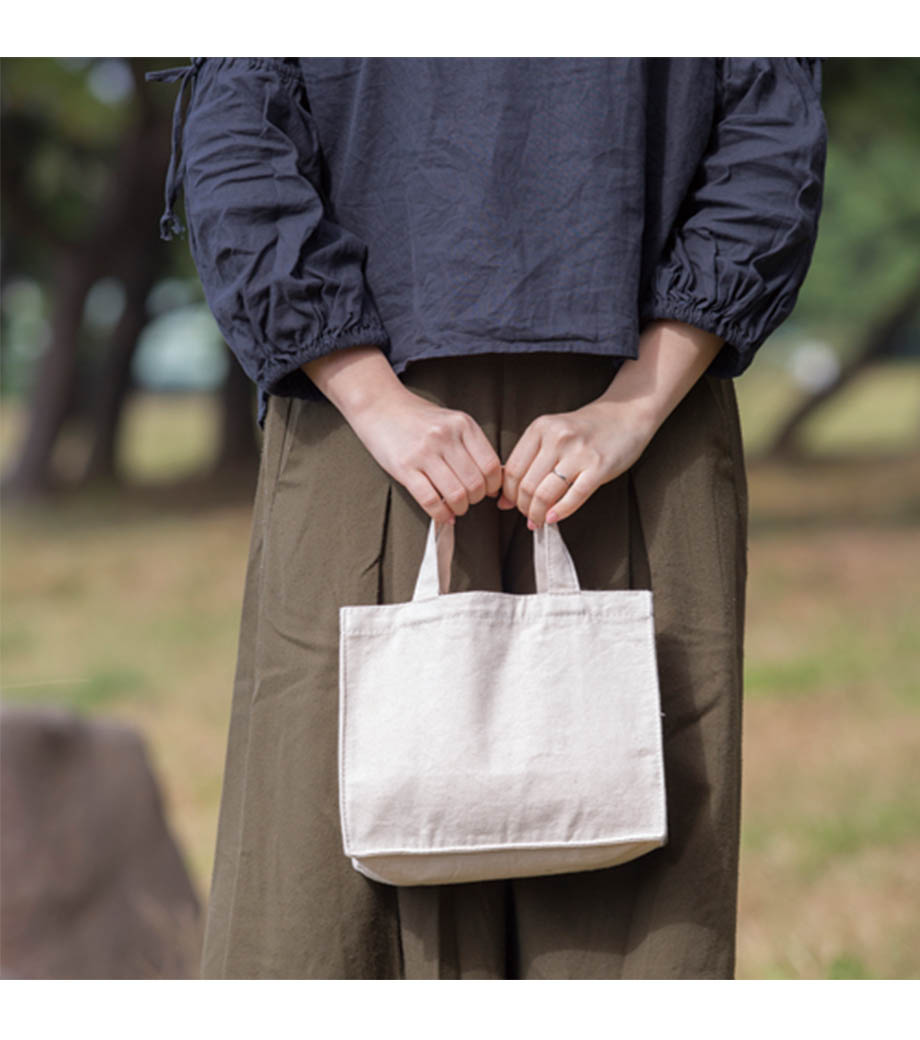キャンバストート(S)は、コンパクトサイズなのに意外に入るミニバッグ。マチが広めで、安定感のあるデザインです。お弁当や小物などの持ち歩きにいかが。しっかりした生地でコットン100%のナチュラルな風合いが楽しめます。カラーバリエーションが豊富なので、企業カラーやイベント・展示会のイメージカラーにあわせてバッグを選ぶことができます。