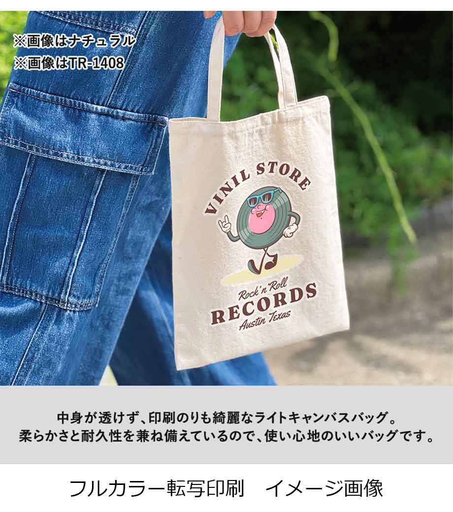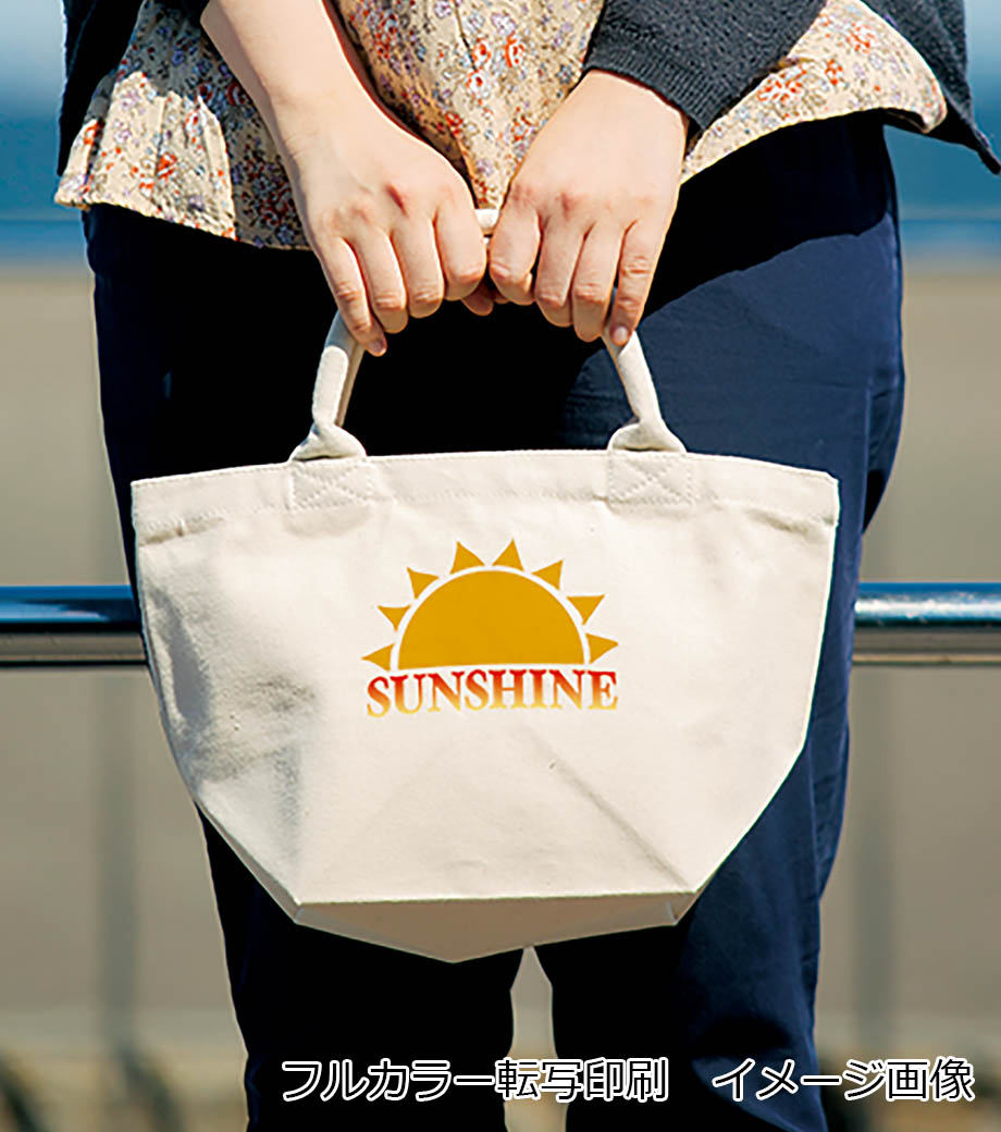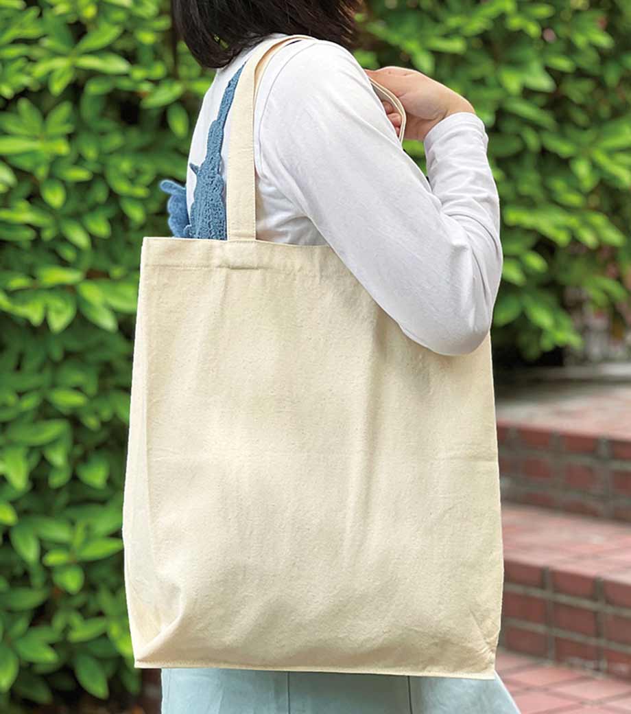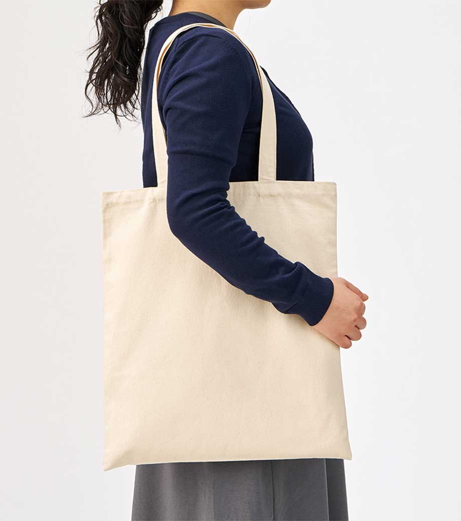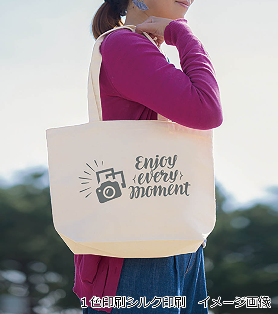 キャンバストートバッグは広い印刷面にメッセージやロゴを自由に印刷できる点が魅力。本体色が豊富なのでコーポレートカラーが選べます。販促品として配布したあとも、日常使いされやすいアイテムです。