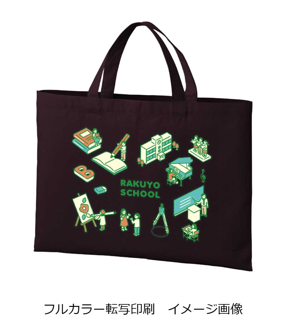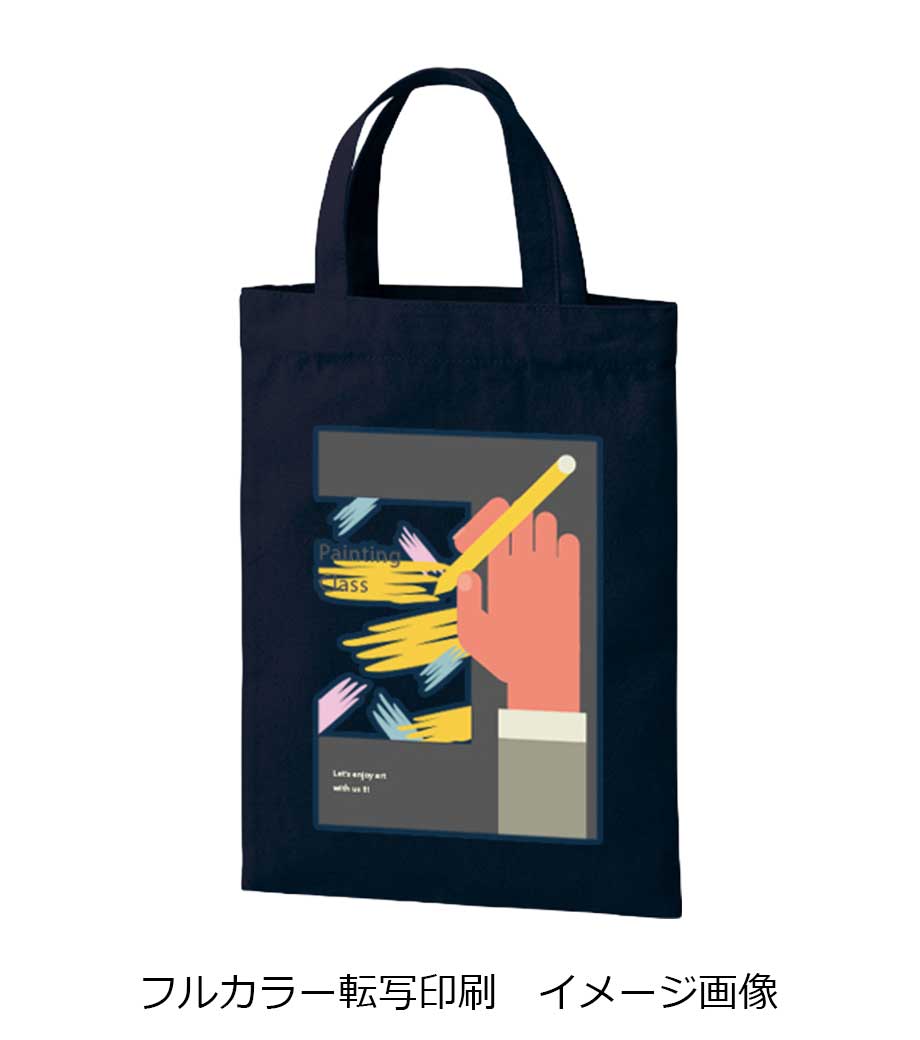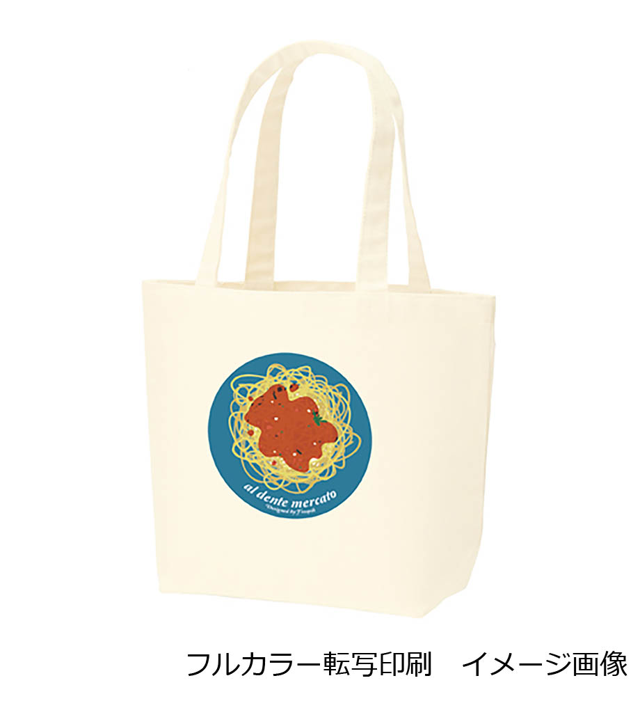 カラーは定番色からカラフル色まで12種類をご用意。印刷は、1色・2色・フルカラー印刷が対応可能。印刷するデザインによってオリジナリティの高いバッグを製作できます。販促ノベルティや同人バッグなど幅広く活用いただけます。