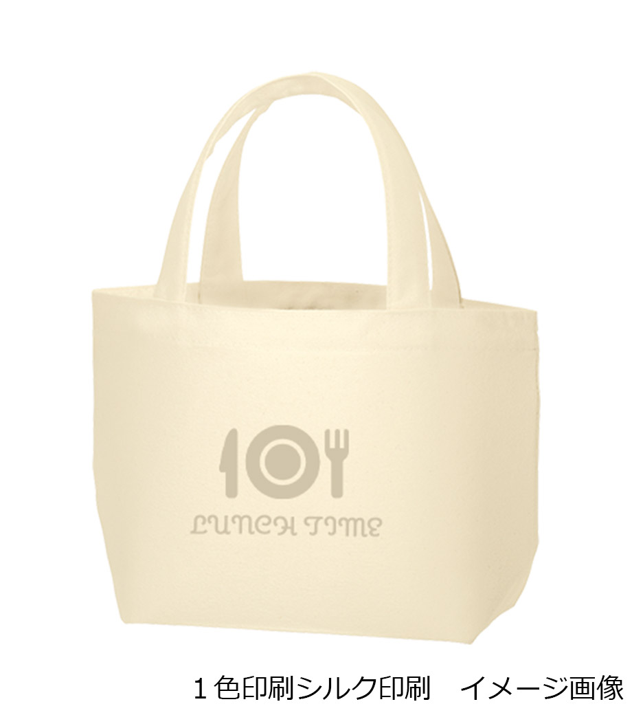 シンプルな無地のデザインで印刷範囲も大きく取れて、ロゴやショップ名などの名入れがよく映えます。1色・2色・フルカラー印刷に対応。普段使いに便利なランチトートに名入れすれば、販促効果もバッチリです!ショップの購入特典や、販売用のオリジナルバッグ製作にいかがでしょうか。