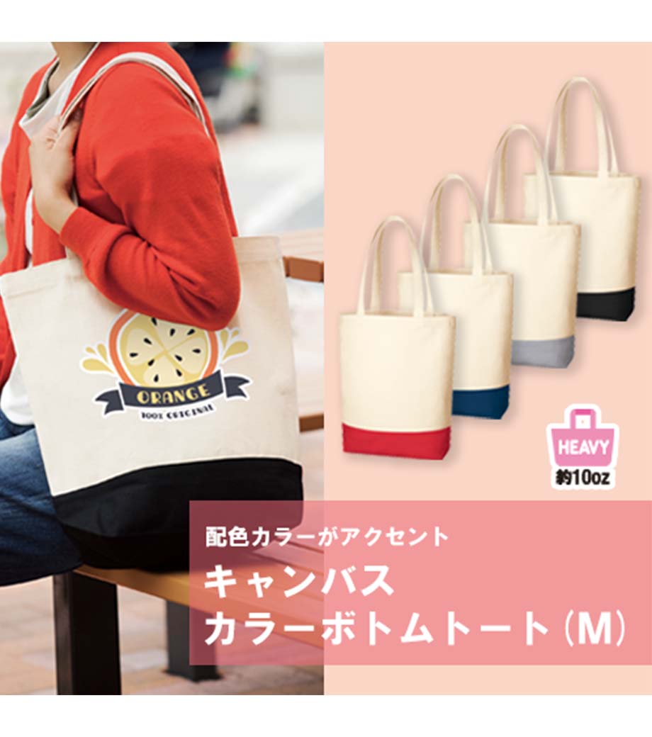 キャンバストート(M)は、ほどよいサイズの肩掛けトートバッグ。12オンスの厚手キャンバス生地で、耐久性もあり中身が透けて見えることがありません。豊富なカラーバリエーションで、企業カラーやイベント・展示会のイメージカラーにあわせて選ぶことができます。