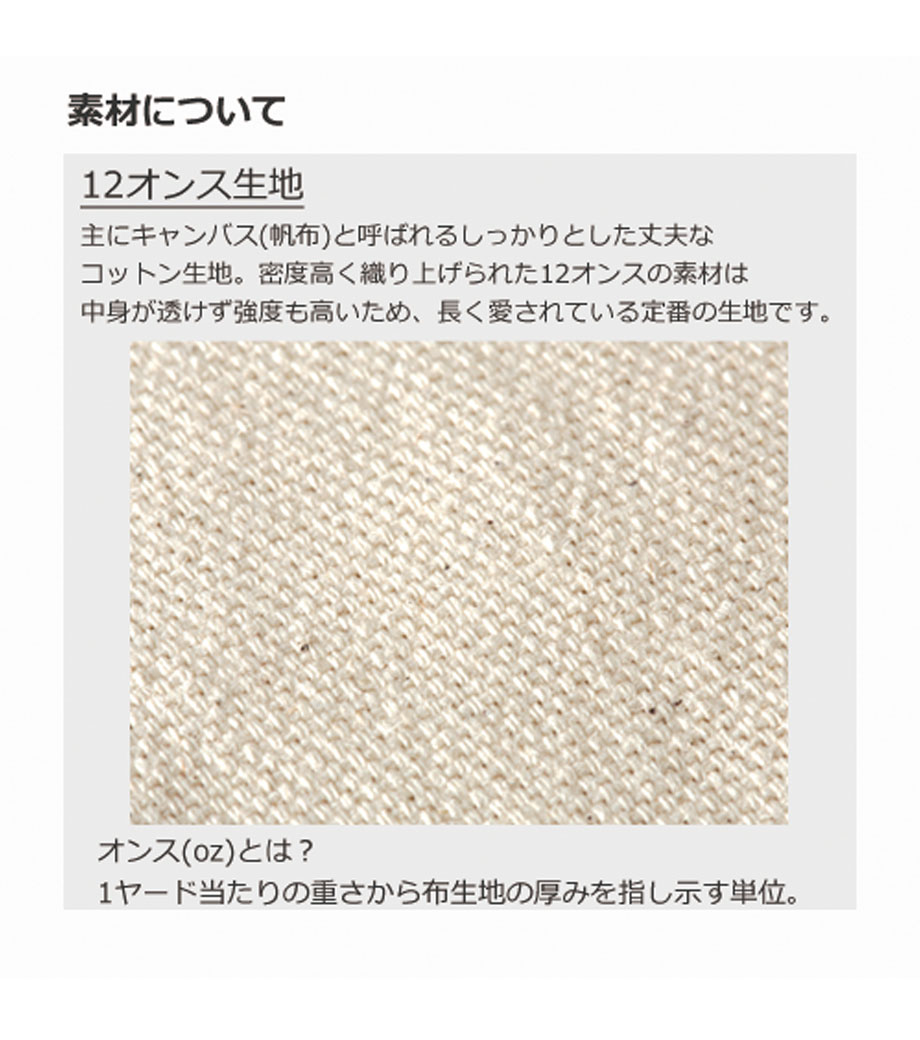 12オンスの厚手キャンバス生地で、耐久性もバッチリ。中身が透けて見えることがありません。