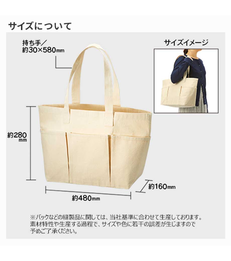 キャンバストート(M)インナーポケット付は、厚手で丈夫なコットン生地を使ったトートバッグです。