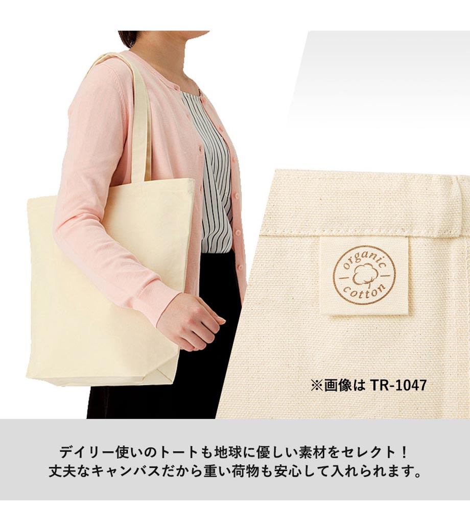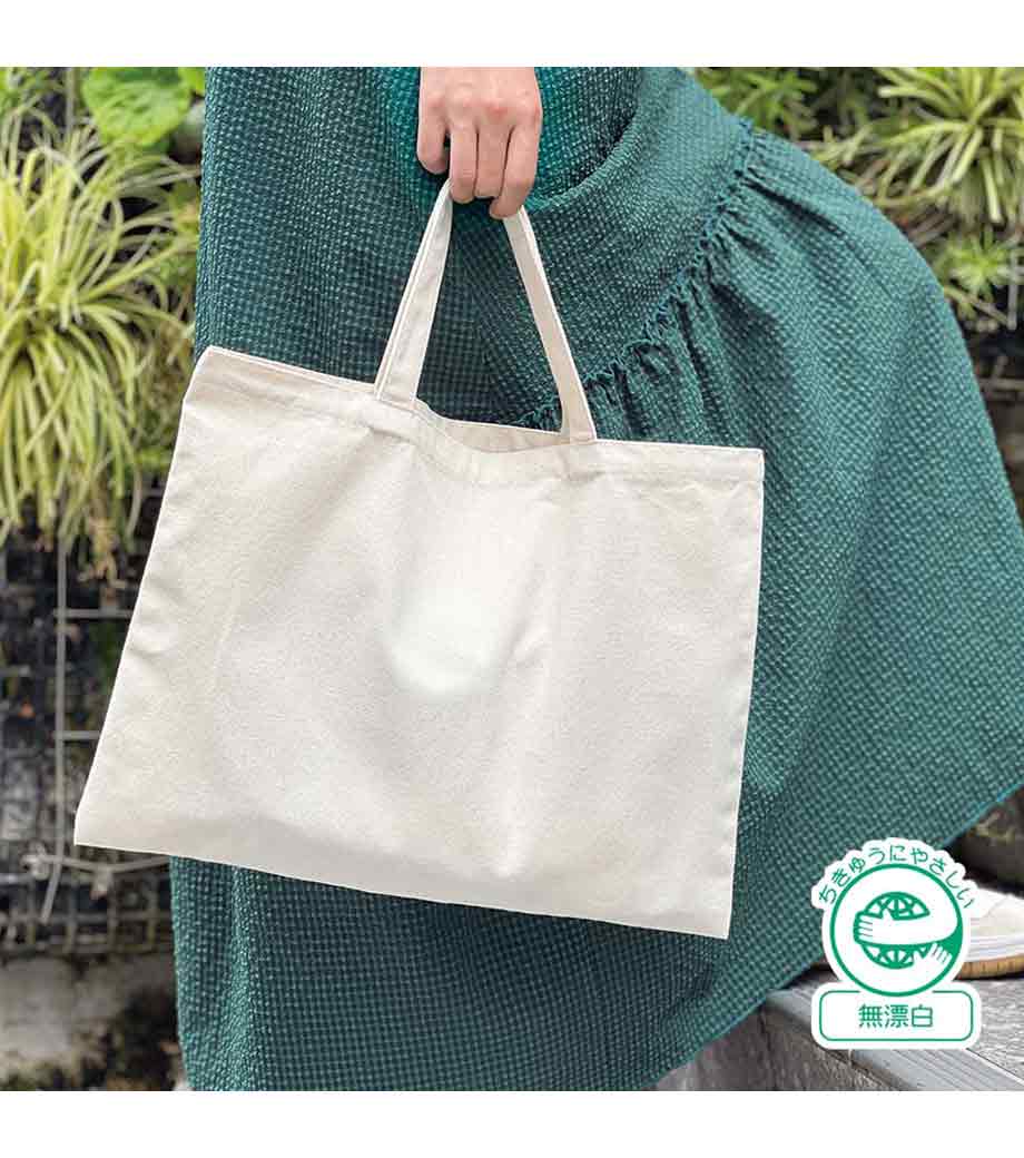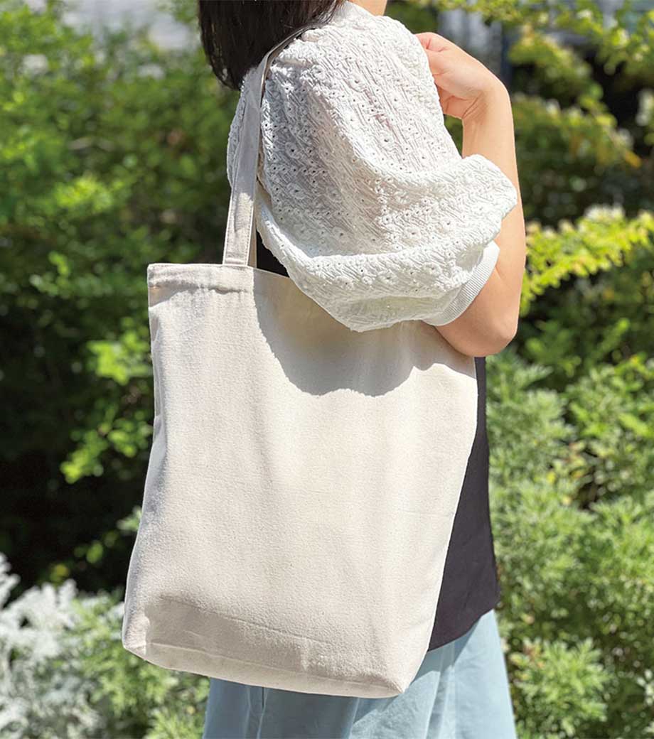シンプルなトートバッグは名入れにぴったり。ロゴを入れてショップのノベルティや、オリジナルバックにいかがでしょうか。