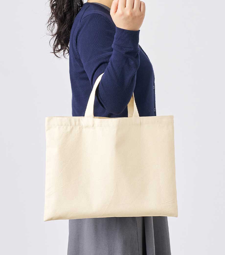 キャンバス(帆布)生地(8oz~)のトートバッグをトート、ショルダー、サコッシュなど種類豊富に取り揃えました。オリジナルデザインのプリント、企業名やブランドロゴの名入れ印刷が小ロットから制作できます。厚手で丈夫なキャンバス生地バッグは、定番ノベルティとして人気。エコバッグにもおすすめ!販促効果の高いおしゃれなオリジナルデザインのバッグが製作できます。