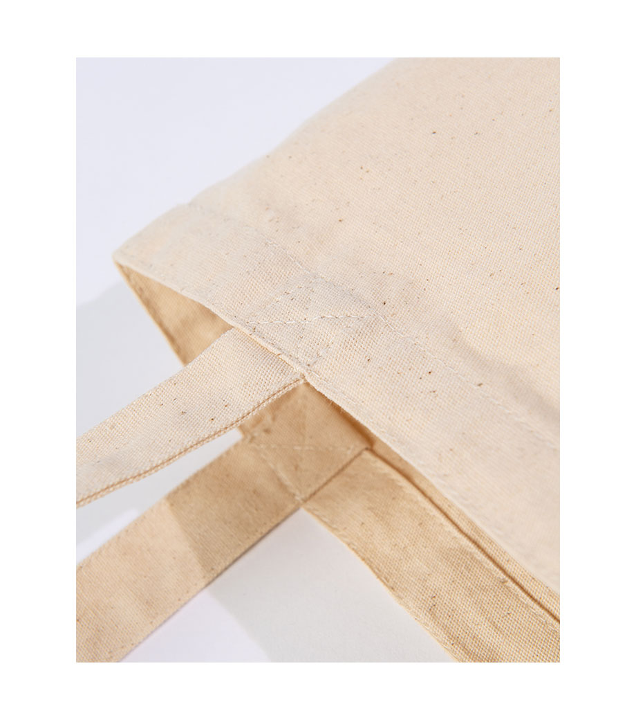 A4サイズ対応の肩掛けトートバッグ。厚すぎず軽量な約8オンス生地を使用しています。本体色ナチュラルでも中身の透け感がほぼありません。サイドに約100mmのマチが付いており、見た目以上に収納力があります。カタログと一緒にノベルティを配布する展示会での使用にもうってつけ!