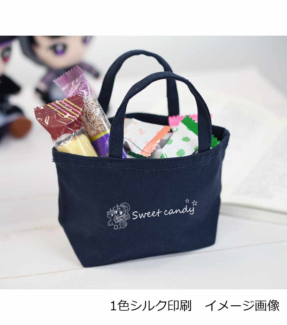 ナチュラル、ネイビー、ナイトブラックの人気の3色展開です。シルク1色印刷に対応。シンプルなデザインに名入れが映えます。結婚式のプチギフトや、洋菓子店などショップのオリジナルグッズや記念品にオススメです。同人グッズとしてキャラクターぬいぐるみ用のバッグにも人気があります。