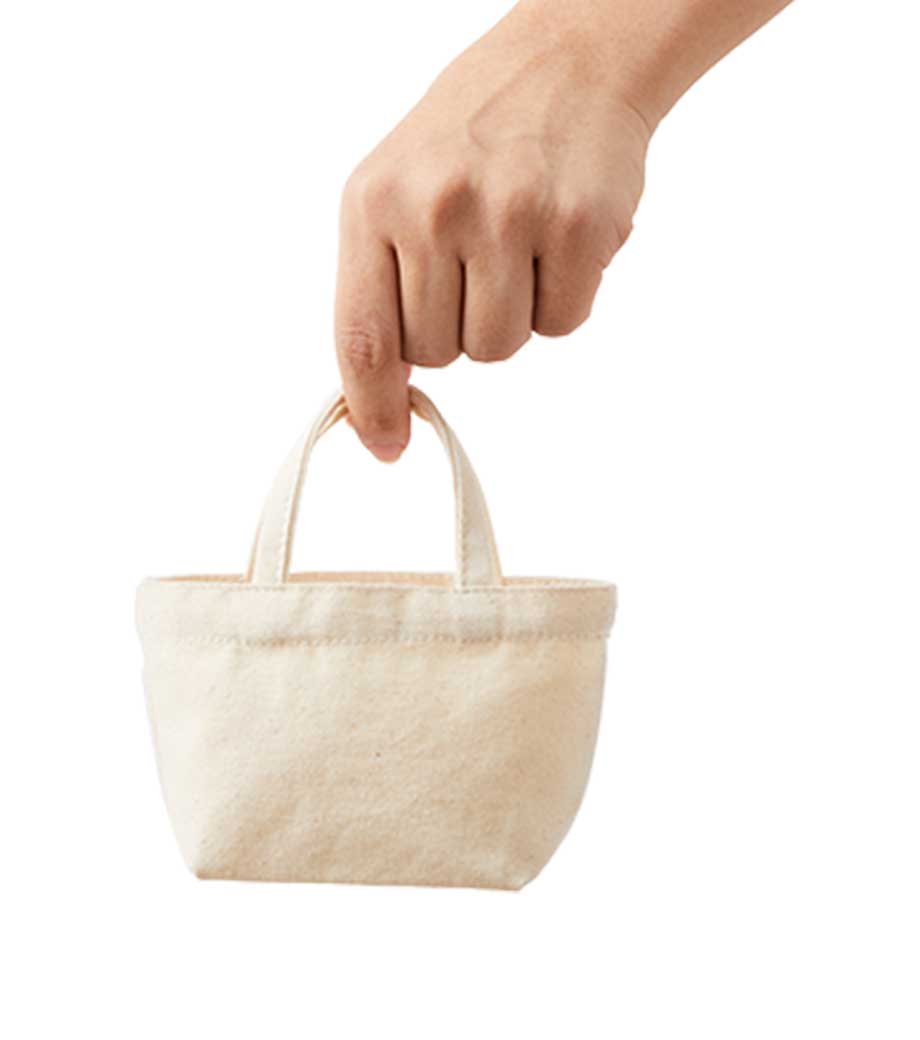 ライトキャンバスパッケージトートは、プチギフトにぴったりなとっても可愛らしいミニサイズのトートバッグです。自然な風合いが素敵なコットン製の生地は約8オンスの厚さで、小さくてもしっかり安心感があります。お菓子などを入れてギフトバッグとして使ったり、小物を入れてデスク周りに置いても華やかです。壁にかけてディスプレイにしてもオシャレですね。