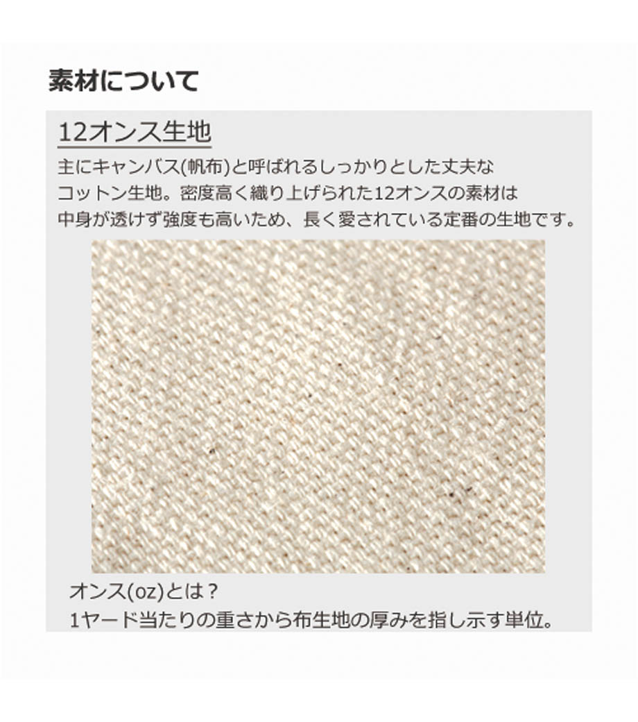 12オンスの厚手キャンバス生地で、耐久性もバッチリ。中身が透けて見えることがありません。