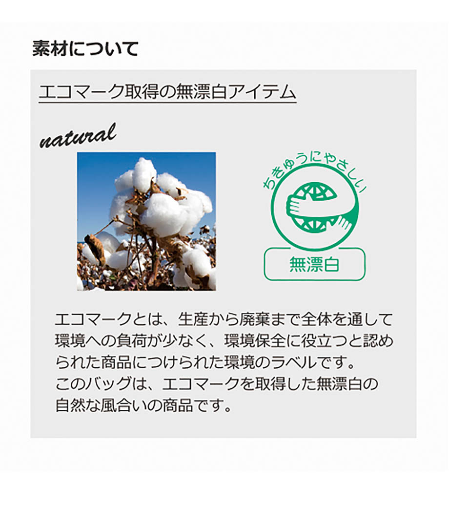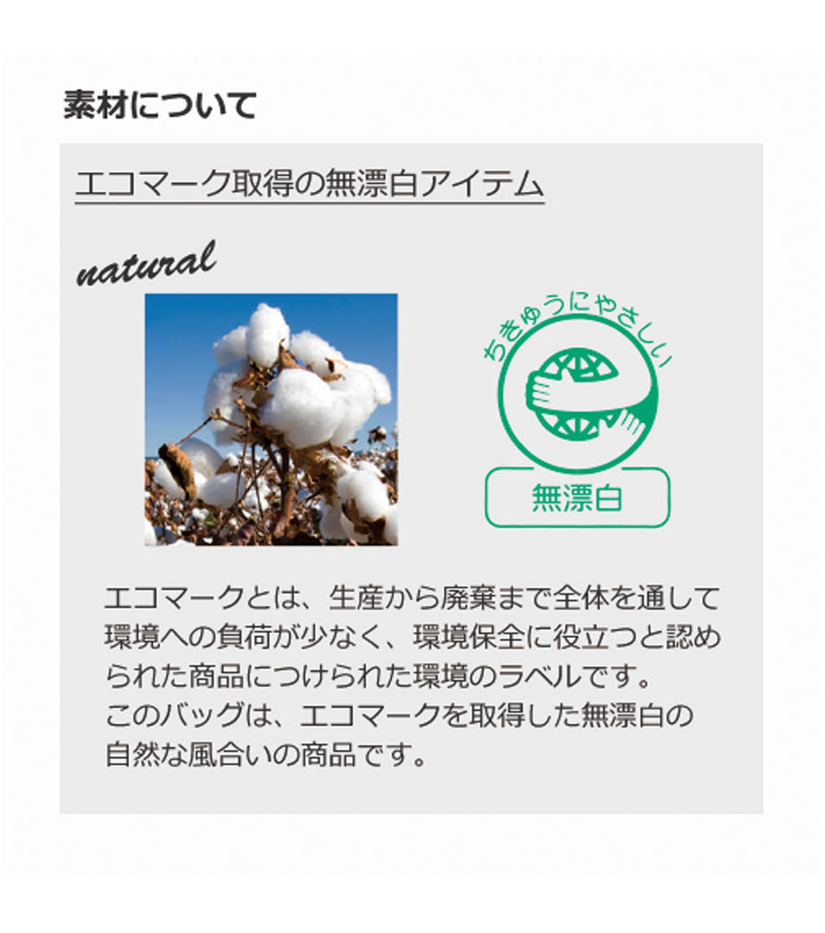印刷面が広範囲でオリジナルバッグを製作しやすい人気のナチュラルカラー。1色・2色・フルカラー印刷に対応しています。