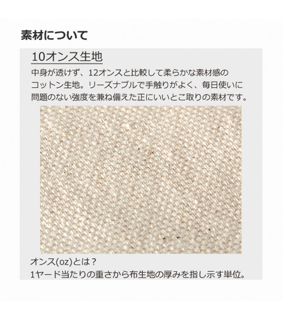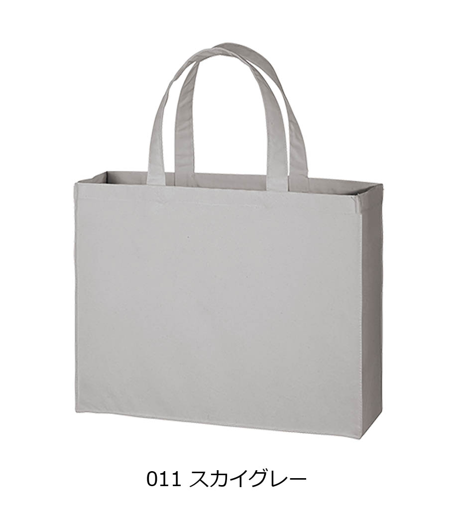 B4がラクラク納まる大判バッグは10オンスとちょうどよい重量感と厚みで、荷物が増えても安心です。オリジナルの名入れも大きく入るので、販促品や展示会、イベントなどのノベルティとしてだけでなく、オシャレなロゴの名入れで学生向けのキャンバスバッグとしても最適ですね。