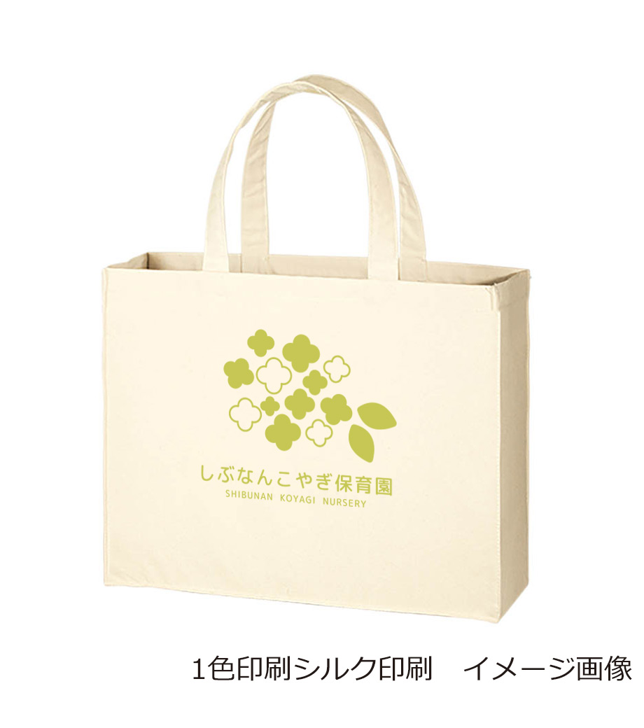 名入れは1色からフルカラーまで対応しており、オリジナルのトートバッグを製作できます。大きめにプリントができるので販促効果もバッチリです。