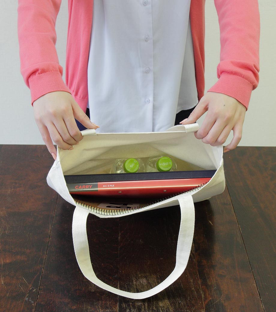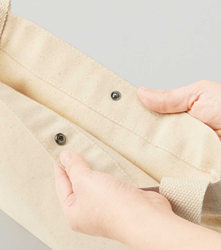 素材はほど良く厚みのある8オンスのキャンバス地。厚めのカタログを入れても安心の強度です。