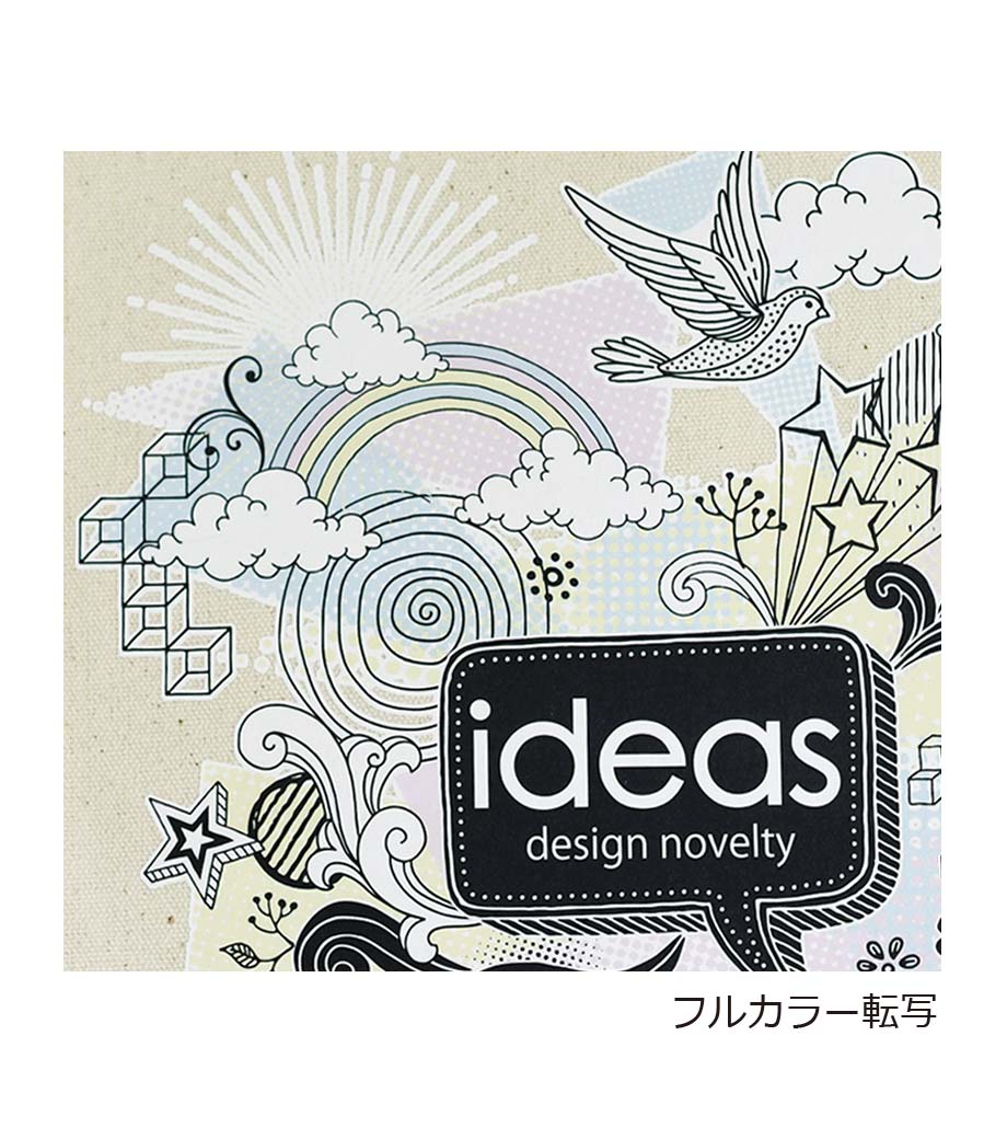 名入れは1色からフルカラーまでマルチに対応。印刷範囲が広いので、イメージに合ったオリジナルバッグを製作できます。ナチュラル・ブラックの2色からお選びいただけます。