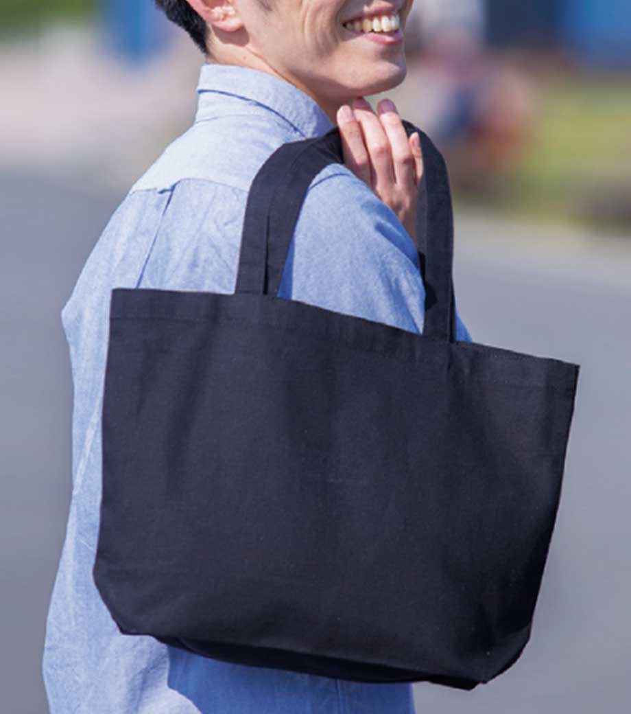 柔かな手触りなのにしっかりと強度のある、生地厚10オンス。頼れる大容量タイプの肩掛けバッグです。イベントやアウトドア、レジャーなどで大活躍します。スーパーでのまとめ買いにも!