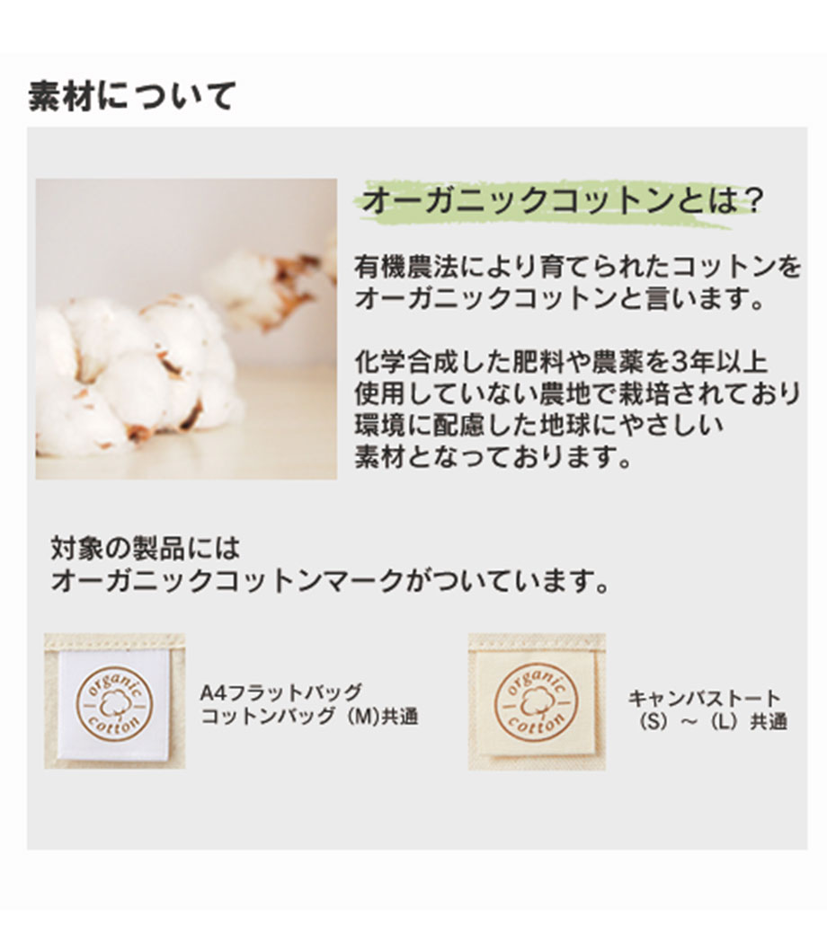 オーガニックコットンとは農薬を使用していない地球環境に配慮されたエコ素材。シンプルな生成りの風合いがどんなデザインでも映えるのでおススメ。セミナー・説明会のテキスト入れやショップの購入特典・ノベルティなど、幅広い用途で使用でき販促効果の高いトートです。卒業記念品にもおすすめ。