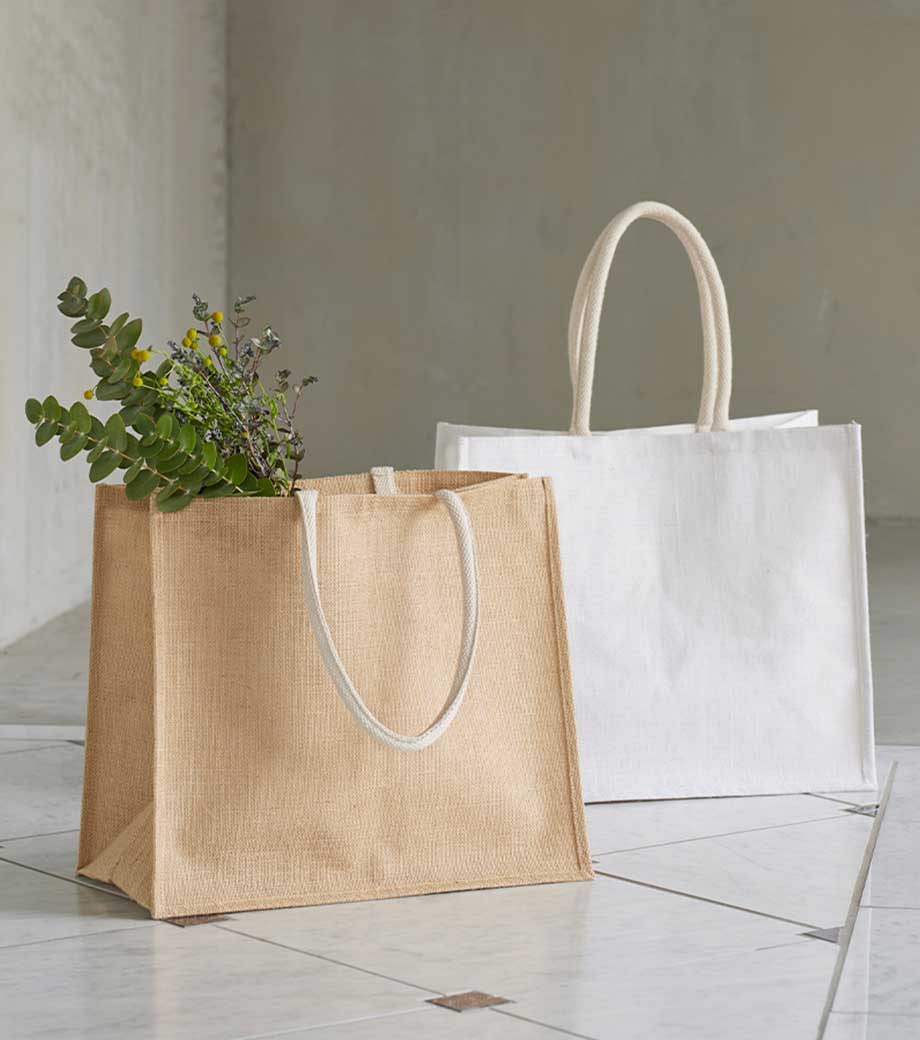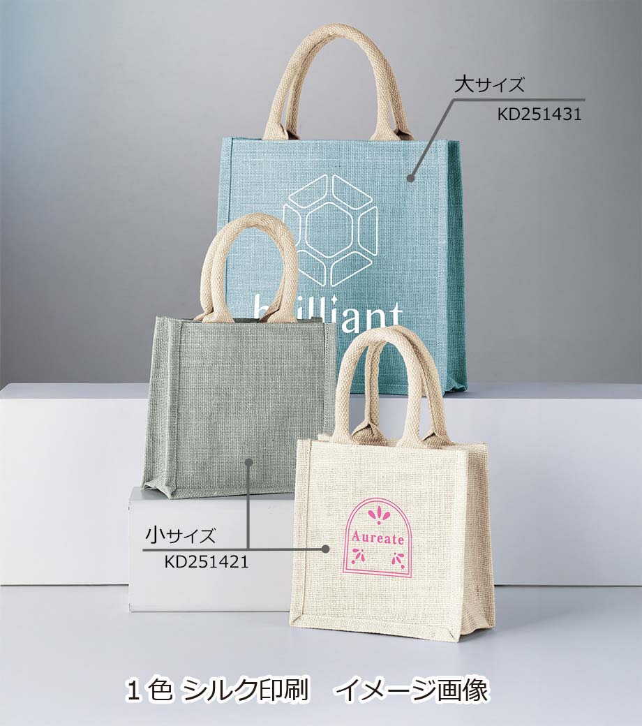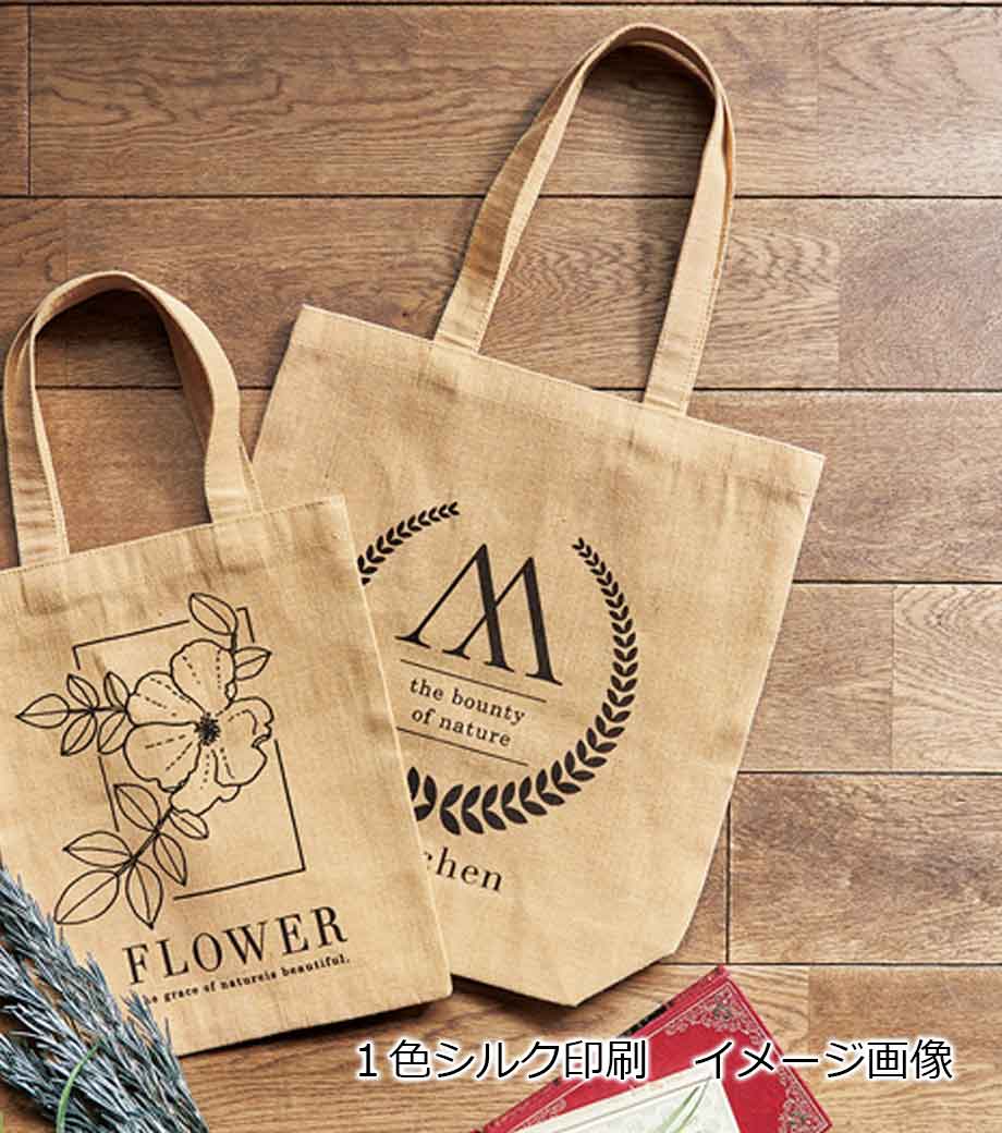 オリジナルの名入れプリントができるおしゃれトートバッグ 麻・ジュートを取り揃えました。小ロットからご注文可能です。年代問わず喜ばれるので、ノベルティ・記念品にピッタリです。