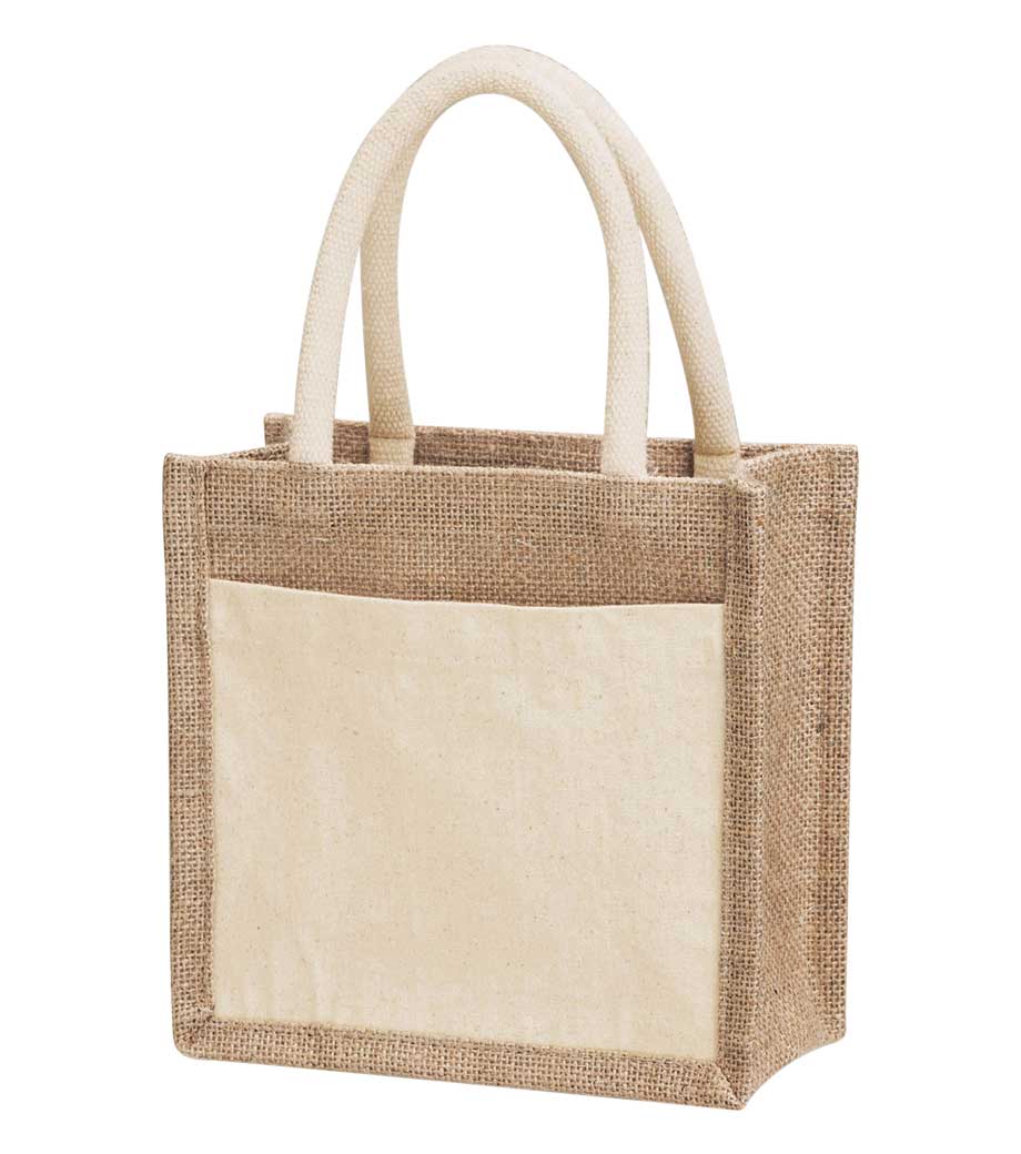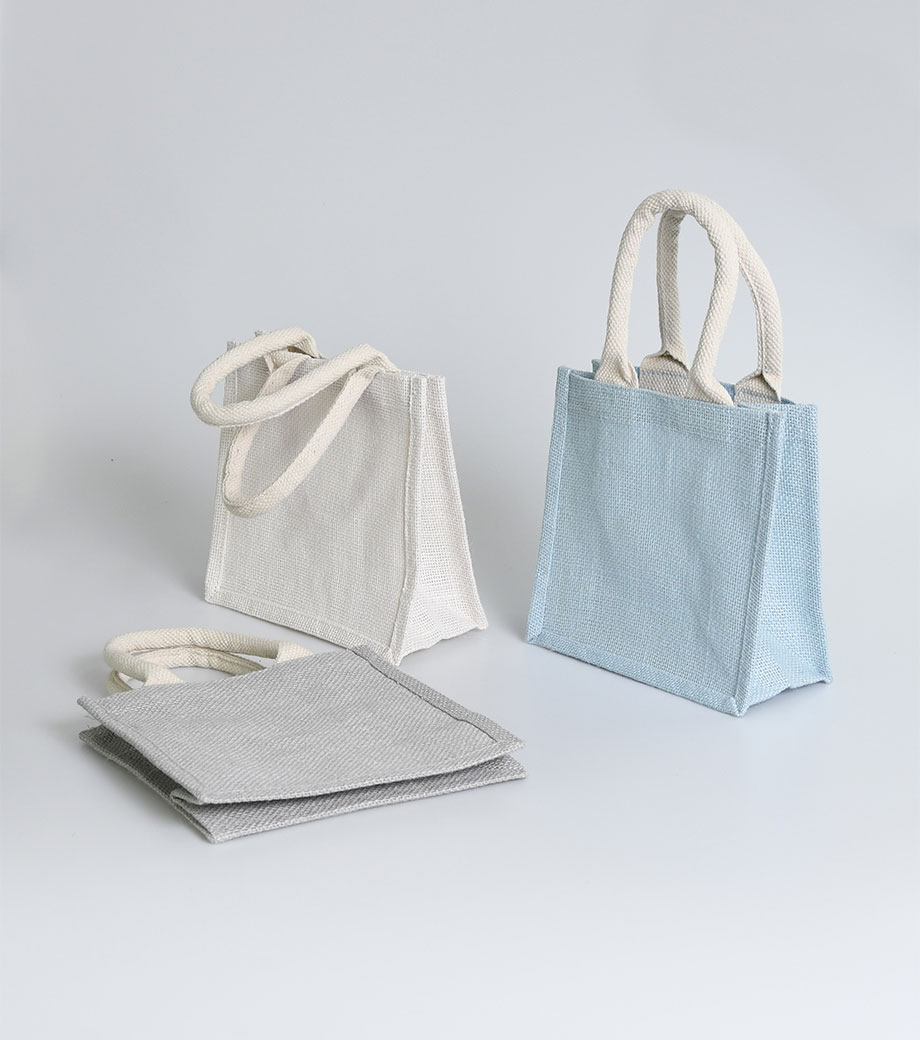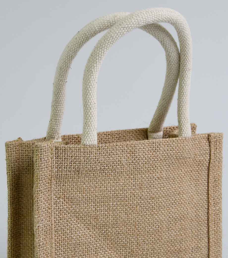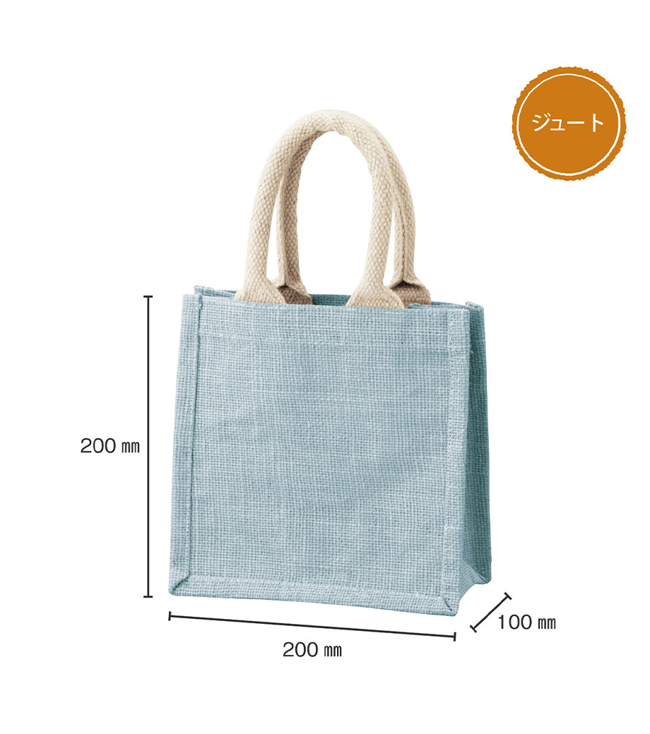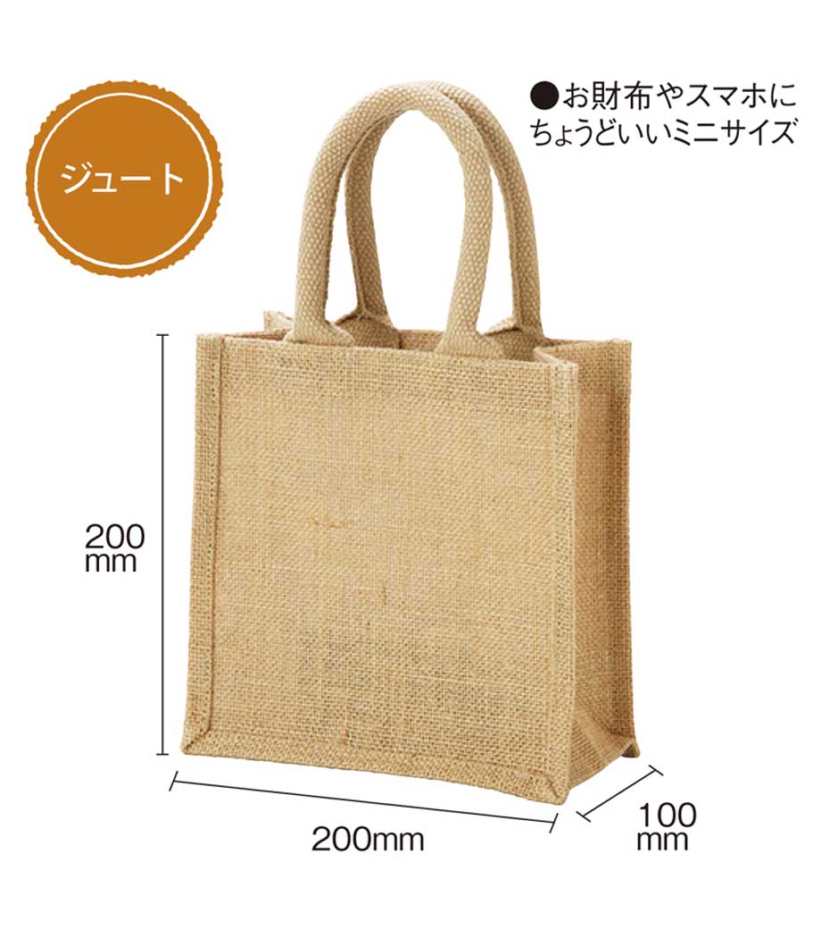 ジュートミニバッグは、スマホやお財布、ドリンクなどが入るミニサイズのバッグです。 ジュートは麻の一種の天然素材。通気性に優れた丈夫な繊維で、コーヒー豆や野菜の保存袋でもおなじみです。ざくっとしたナチュラルな風合いが魅力のバッグは、カジュアルでファッショナブル。おしゃれなノベルティが作成できる、人気のバッグです。