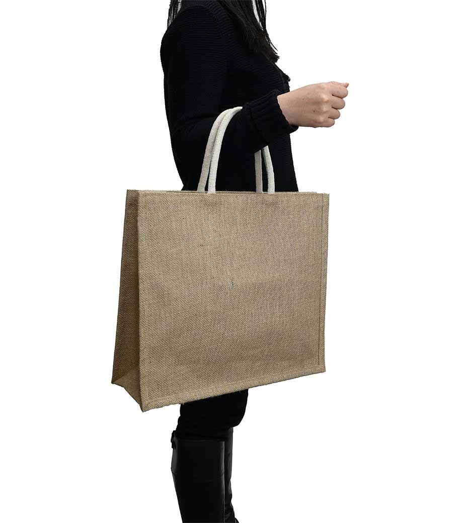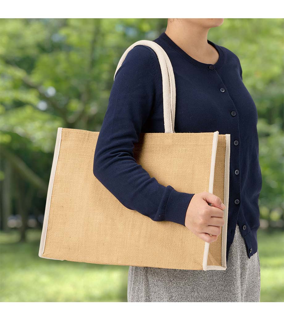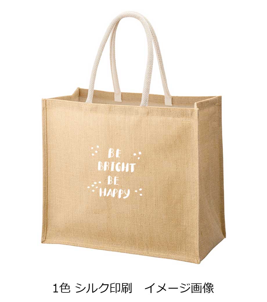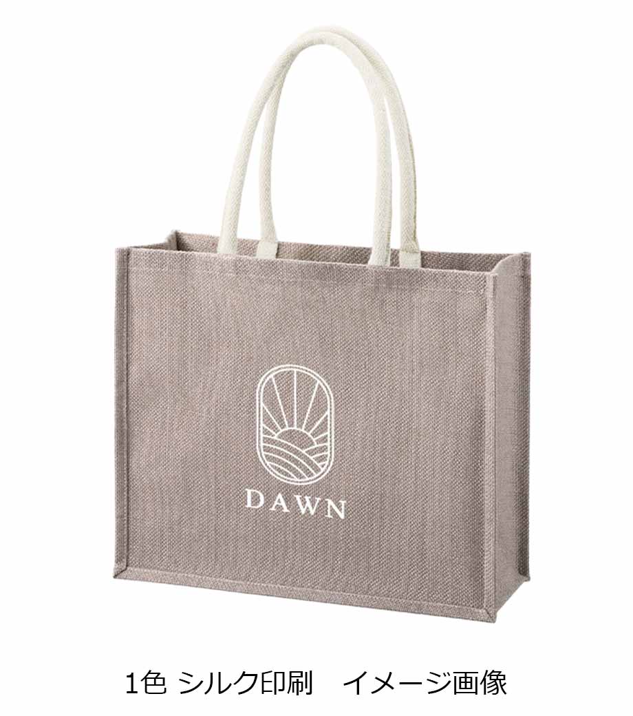ジュートラージバッグは、ナチュラルな風合いが楽しめるトートバッグです。肩掛けできる四角い底マチ。箱もそのまま入るので、記念品などの贈り物や引き出物のお渡し用に。ざくっとした素朴な素材感がおしゃれな、普段使いもできるカジュアルバッグです。