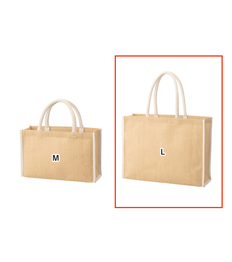ジュートスクエアトート(L)は、ナチュラルな風合いが楽しめる流行のトートバッグ。たっぷり入る大きめサイズなので、お買い物やレジャーなど荷物が多い外出時の強い味方。