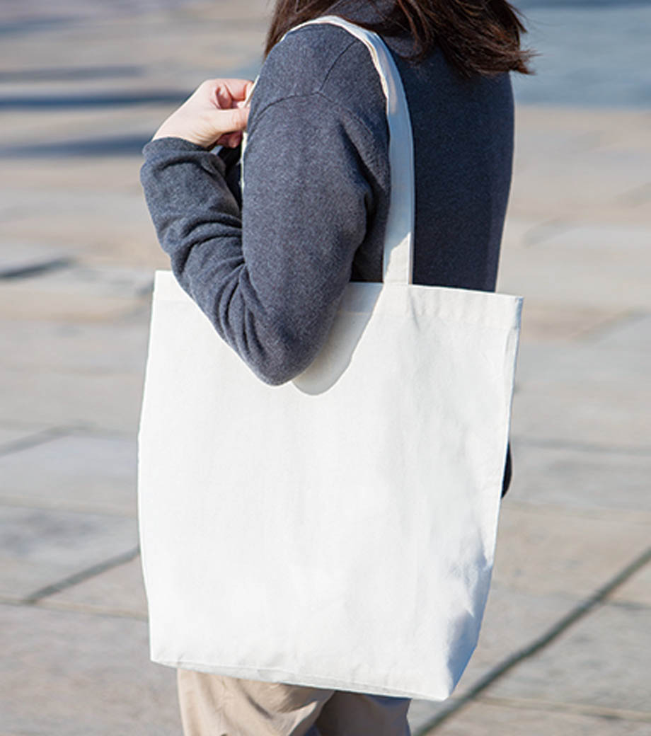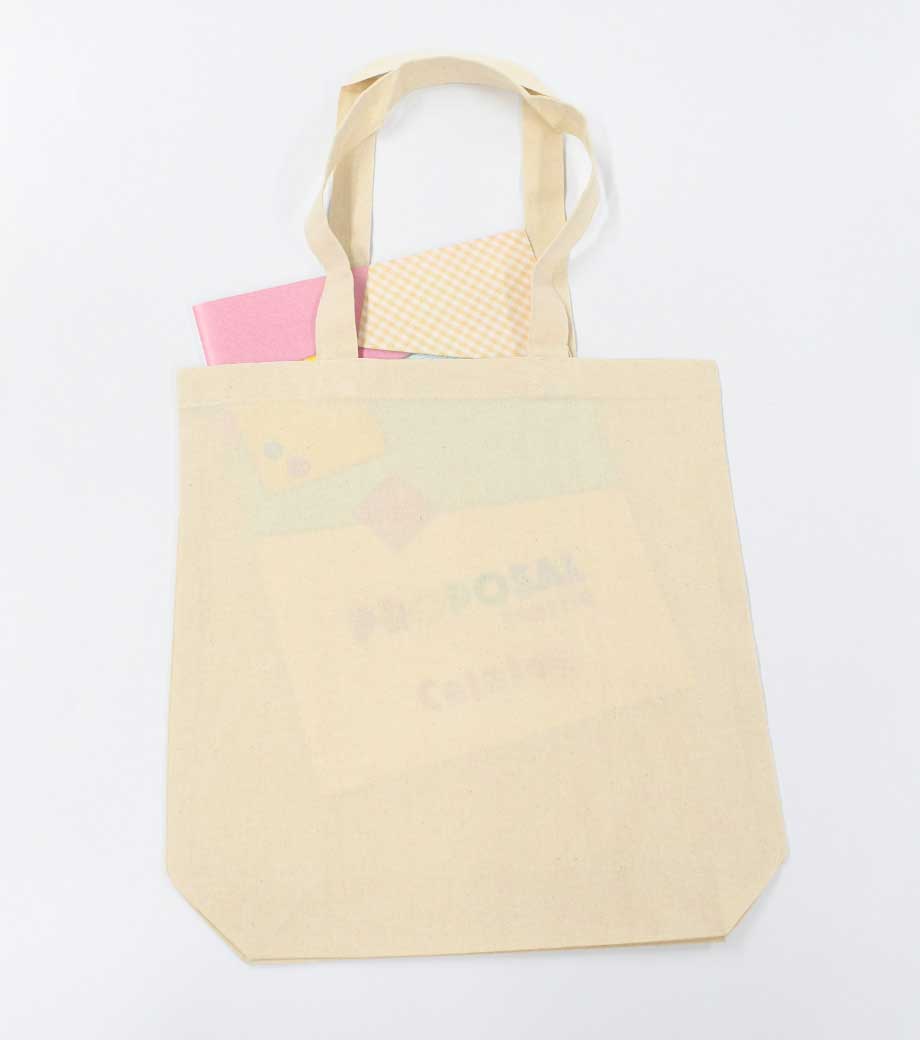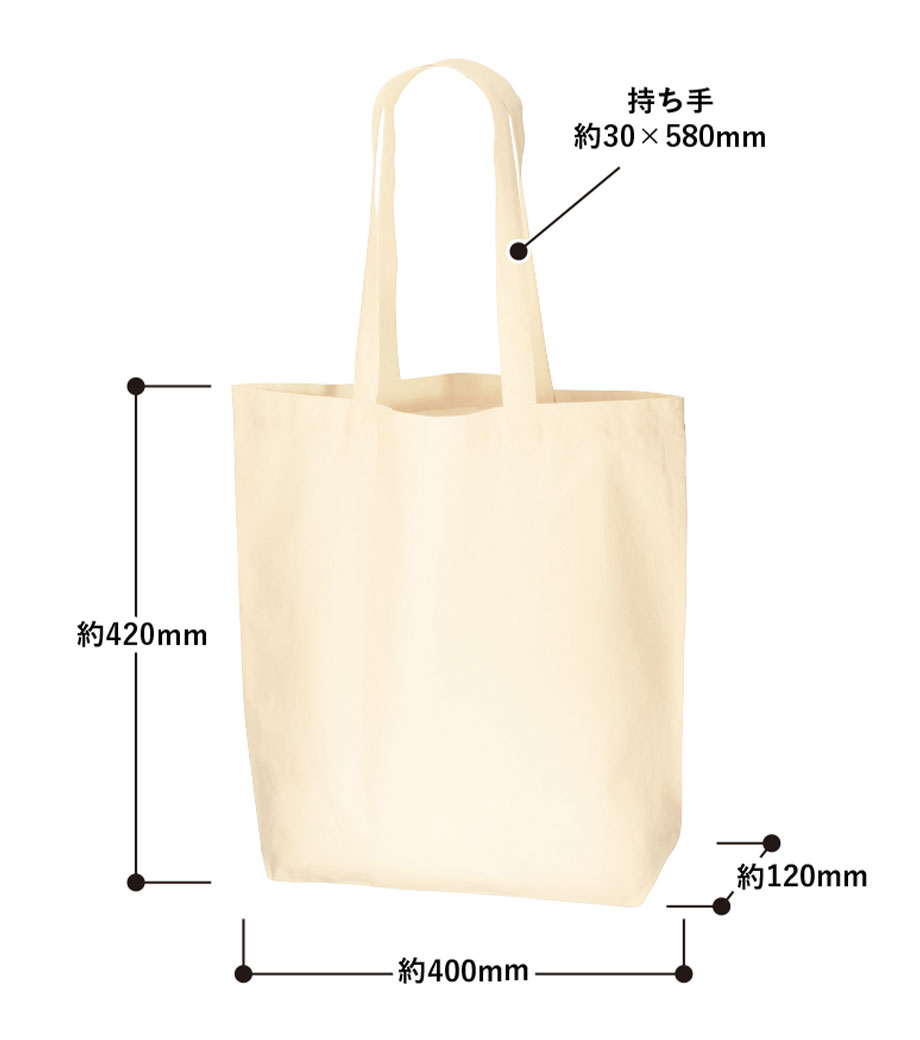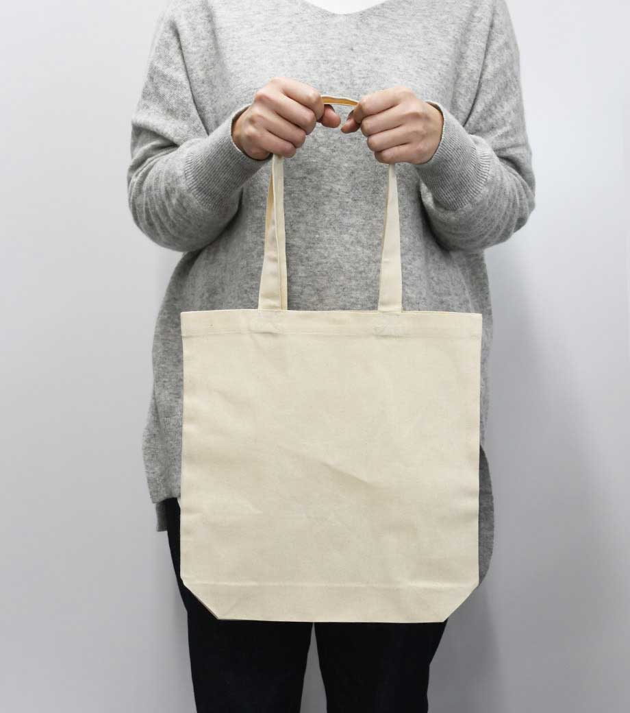 適度な厚みの5オンス以上のコットンバッグ。薄すぎず丈夫で透けにくいのが特徴的。イベント・同人グッズなどにおすすめです。