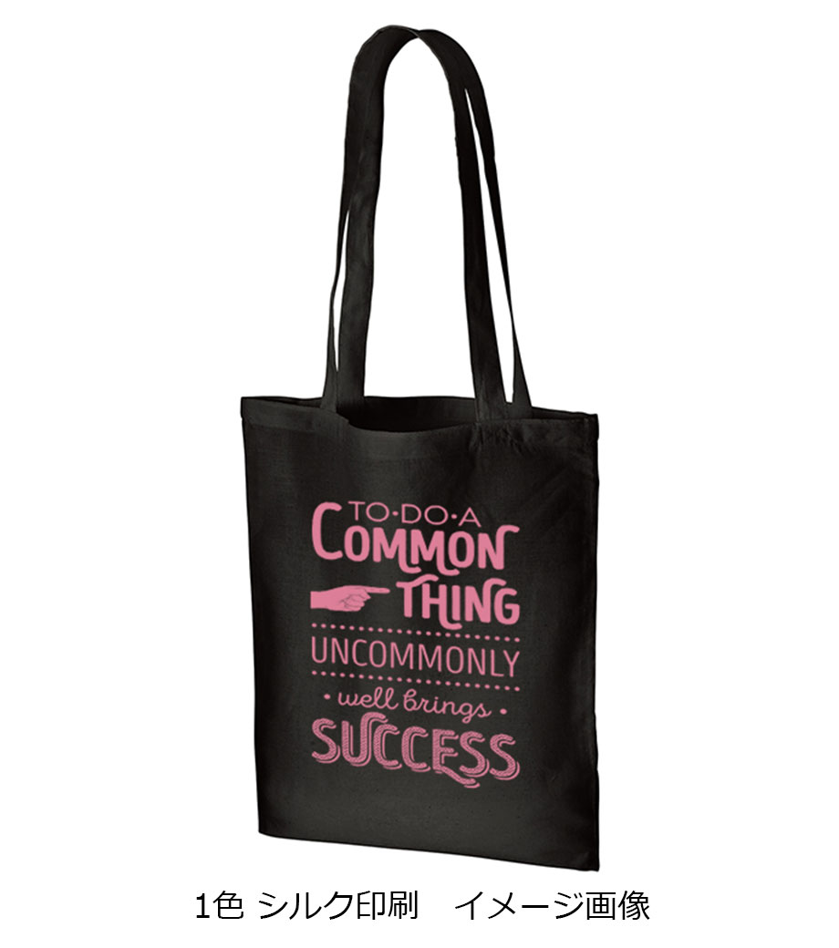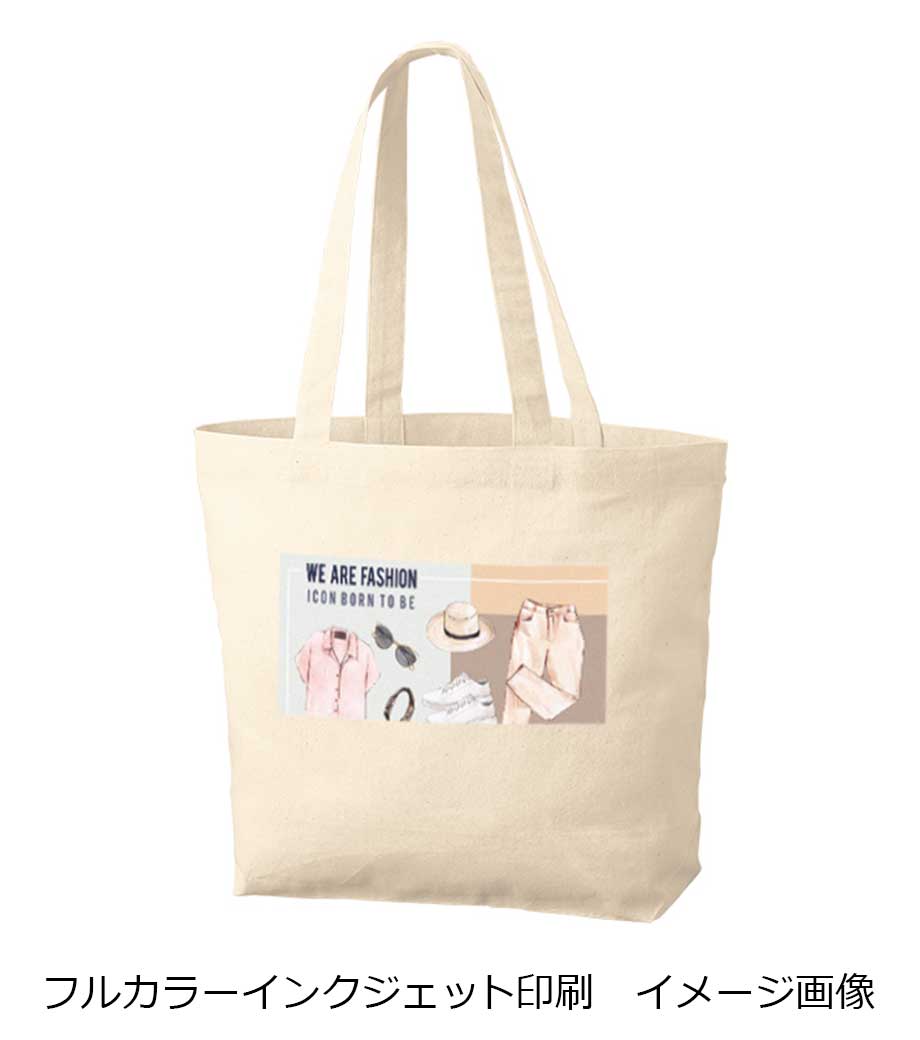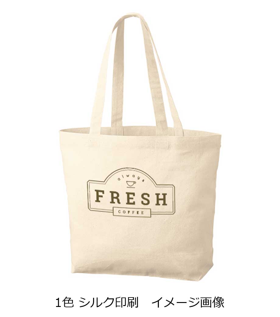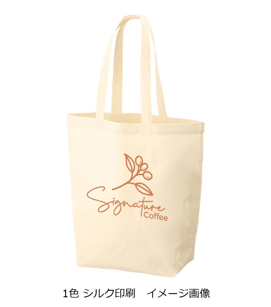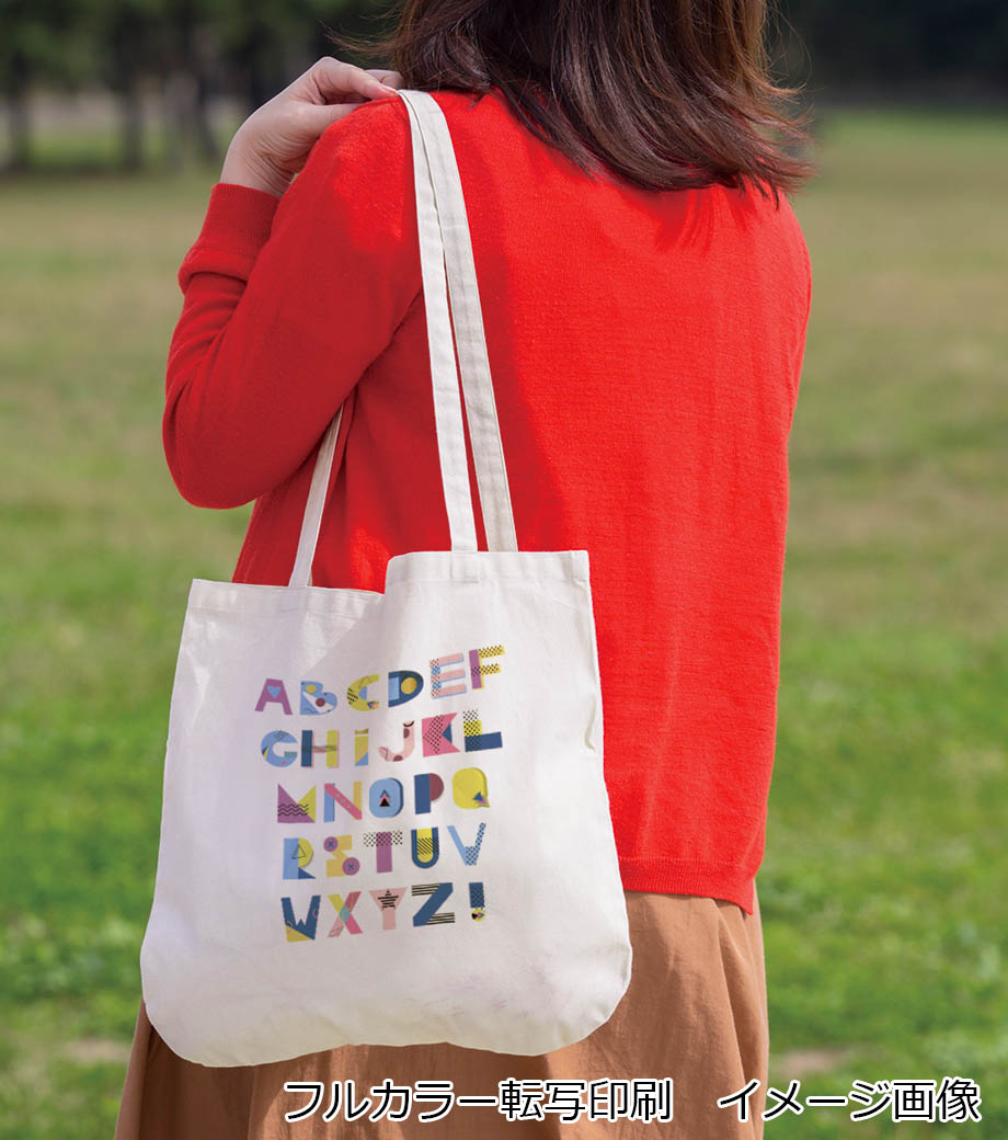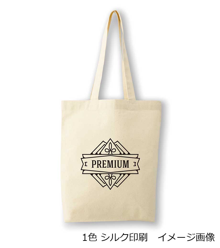 バッグ本体の生地は7オンス相当の厚みがあり丈夫。お買い物用としてもメインバッグとしても持ち運べる使い勝手のよさが魅力です。1色、2色、フルカラーで名入れ可能。ロゴやキャラクターを入れたオリジナルバッグが制作できます。購入特典などのキャンペーン販促品やグッズ制作に人気のノベルティです。