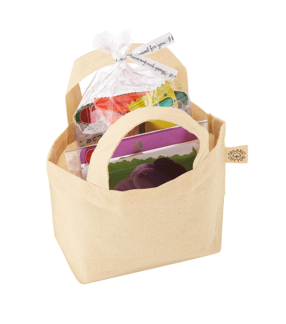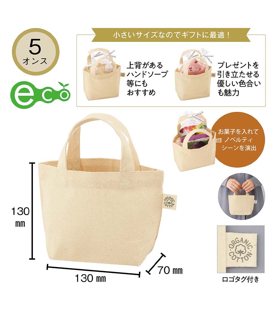 オーガニックコットンを使用しているので環境啓発イベントなどの来場者特典や配布資料を入れるバッグにおすすめです。