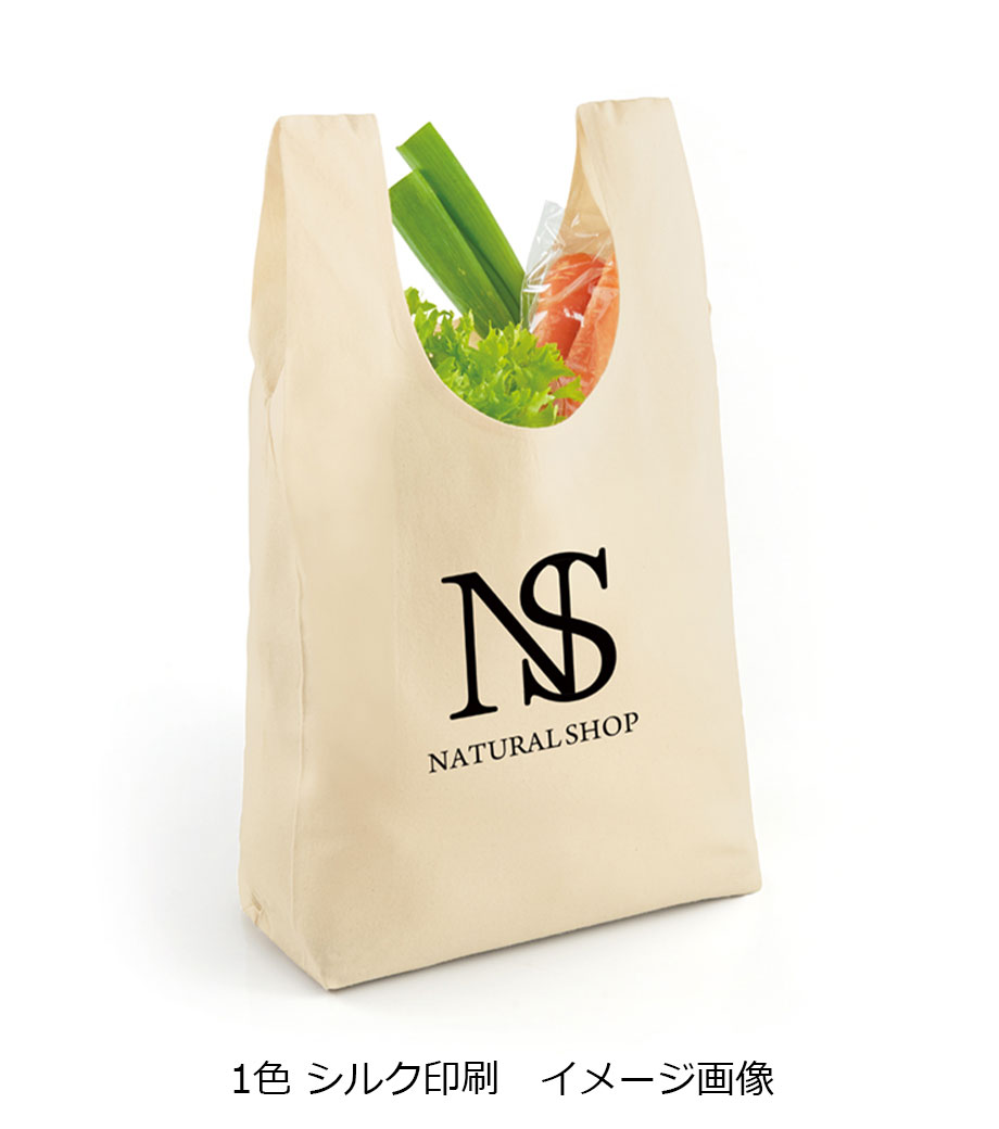 小さめのバッグにも携帯しやすく、日常使いに便利なエコバックになります。スーパーや食料品店の周年記念品、食品メーカーや飲料メーカーの販促ノベルティなどに最適です。