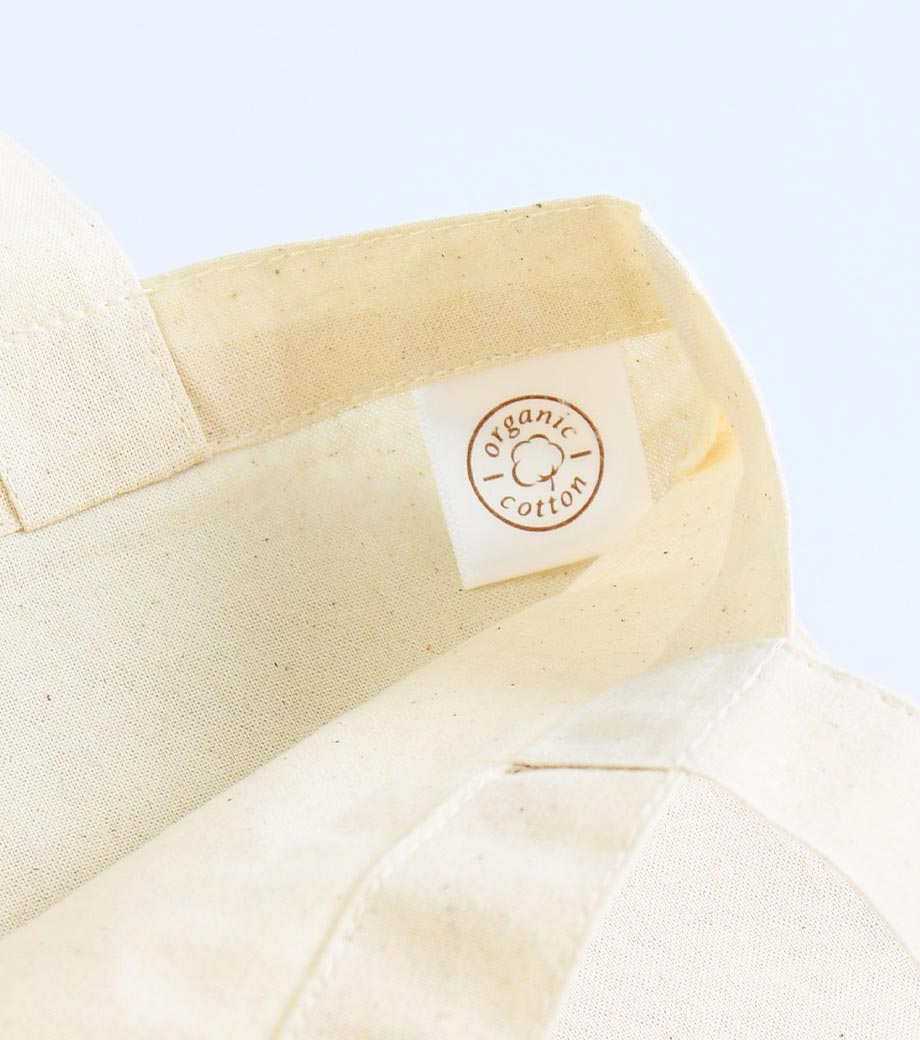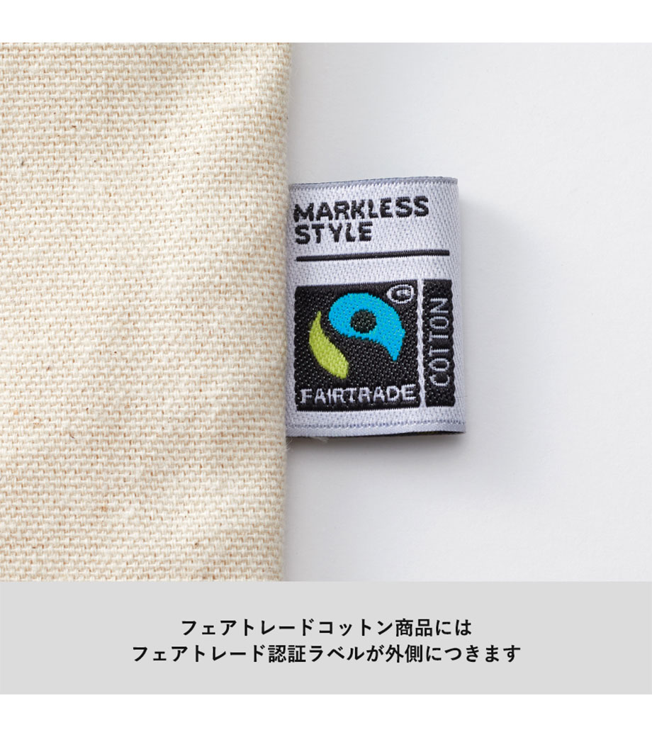 フェアトレードコットンフラットトートは国際フェアトレード認証ラベル付きのエコバッグ。フェアトレードとは、製品を安く販売したいが故に途上国の人々に正当な対価が払われていないなどの問題を解決するために生まれた世界共通の貿易のしくみです。認証ラベルはバッグの外側に縫い付けてあるのでひと目で認知してもらえます。