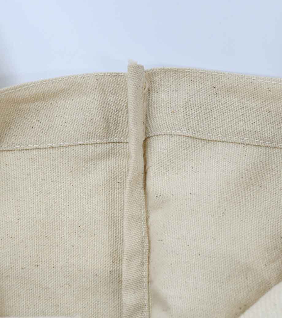 シーチングよりも生地の目が詰まったしなやかな素材。折りたためばコンパクトになりますので持ち運びにも便利です。
