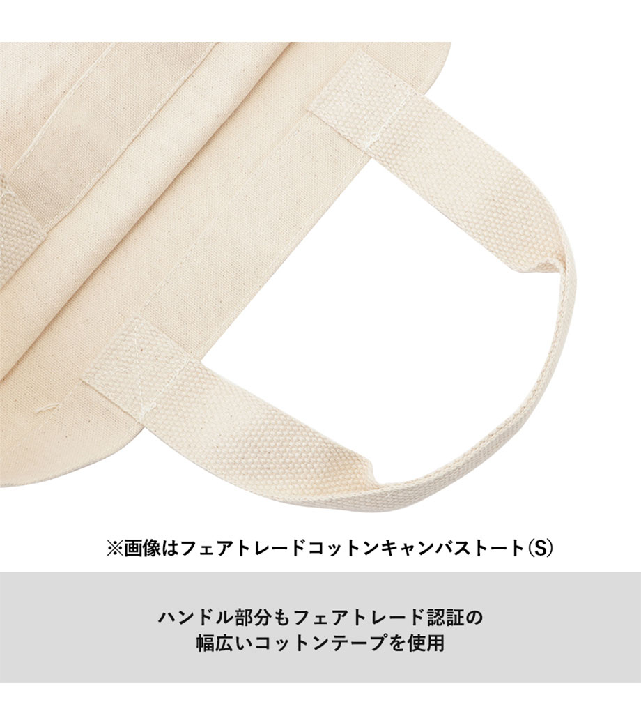 フェアトレードコットントート(M)は、国際フェアトレード基準に認証されたコットンを使用した舟底タイプのトートバッグ。フェアトレードとは発展途上国の原料や製品を適正な価格で購入することで、そのような国の人々の生活改善や自立を支援する活動です。購入することで社会貢献ができるので、SDGsやサスティナブルへの取り組みになり企業価値を高められます。
