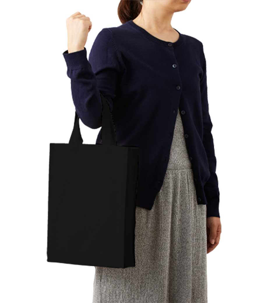 A4サイズが入るマチ付きのタイプは中に物を入れやすく、説明会の資料やカタログを入れたりライブ物販で使用したり、お買い物のエコバッグとしても使えます。厚手で中身が透けにくく、様々な用途に使いやすいのがうれしいポイント。
