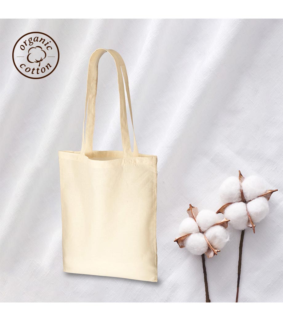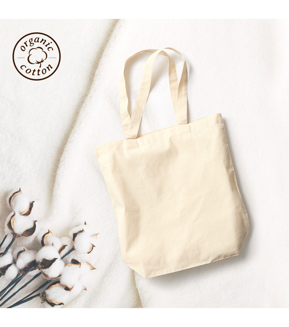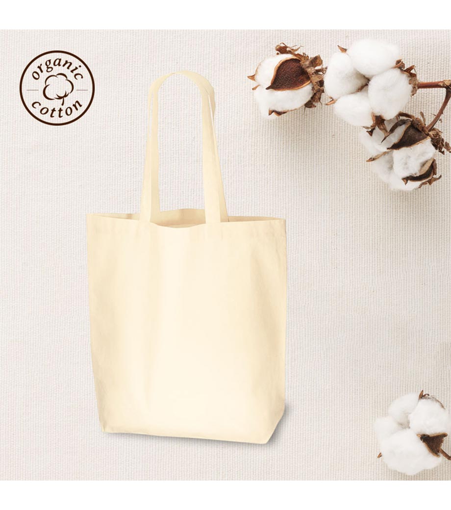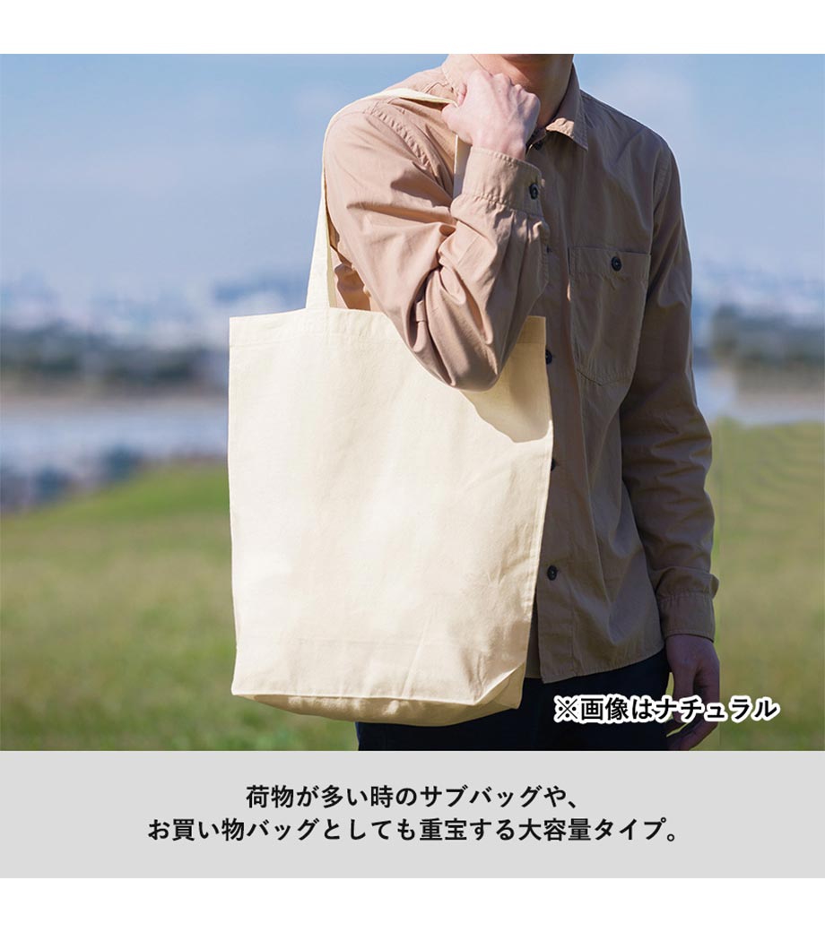 オーガニックコットントート(L)はデイリーユースからアウトドアシーンまで、幅広く使いやすいトートバッグです。男女問わず使用できるシンプルなデザインは、普段使いのサブバッグとして活用できます。レジ袋有料化で必要不可欠になったエコバッグとしても汎用性の高いバッグです。オーガニックコットンを使用しているので環境啓発イベントなどの来場者特典におすすめです。1色印刷・2色印刷・フルカラー転写印刷ができ印刷範囲も広いので宣伝効果も期待できます。