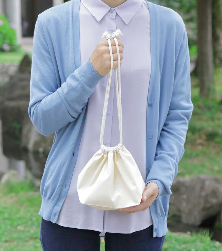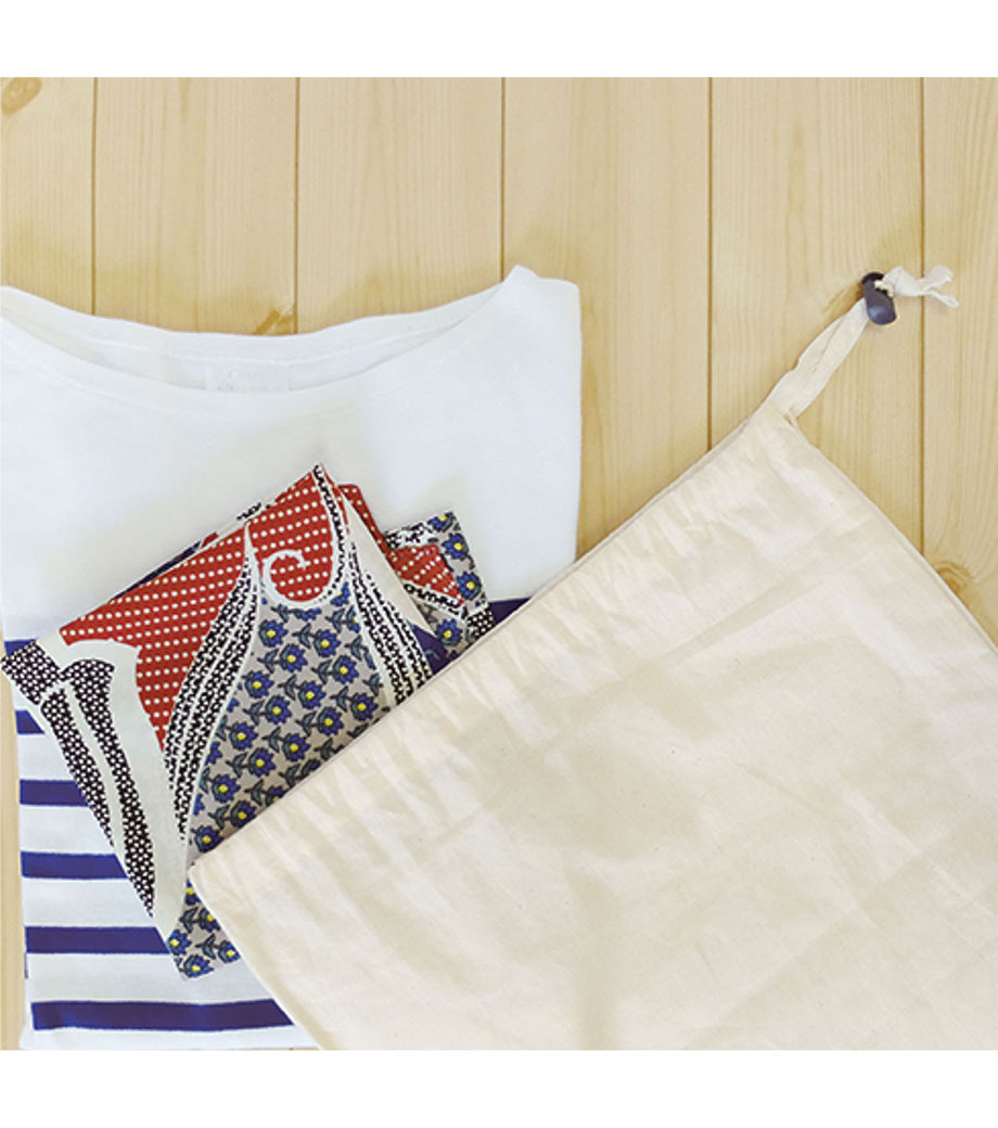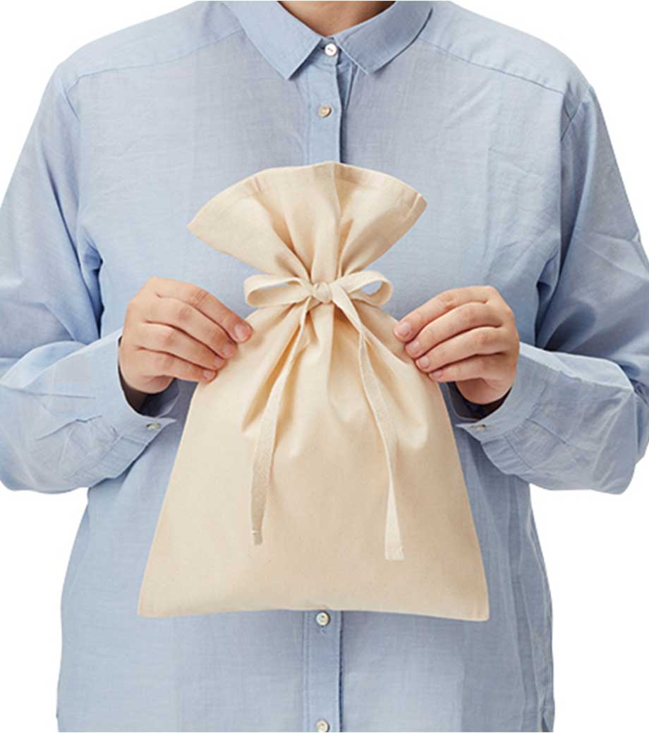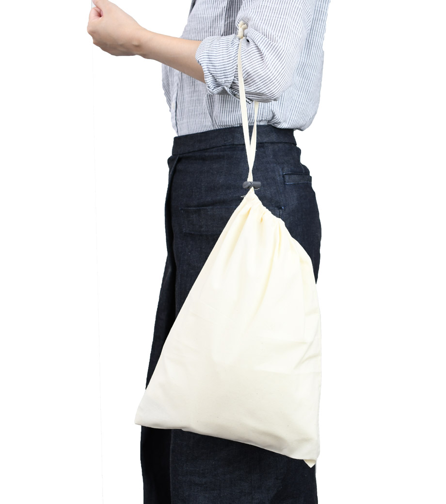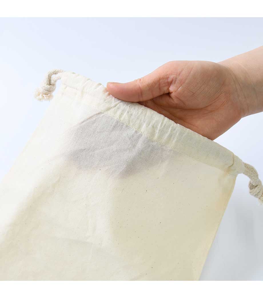 巾着タイプだから使いやすい無漂白コットンのエコトート