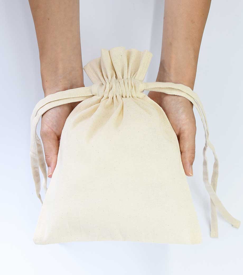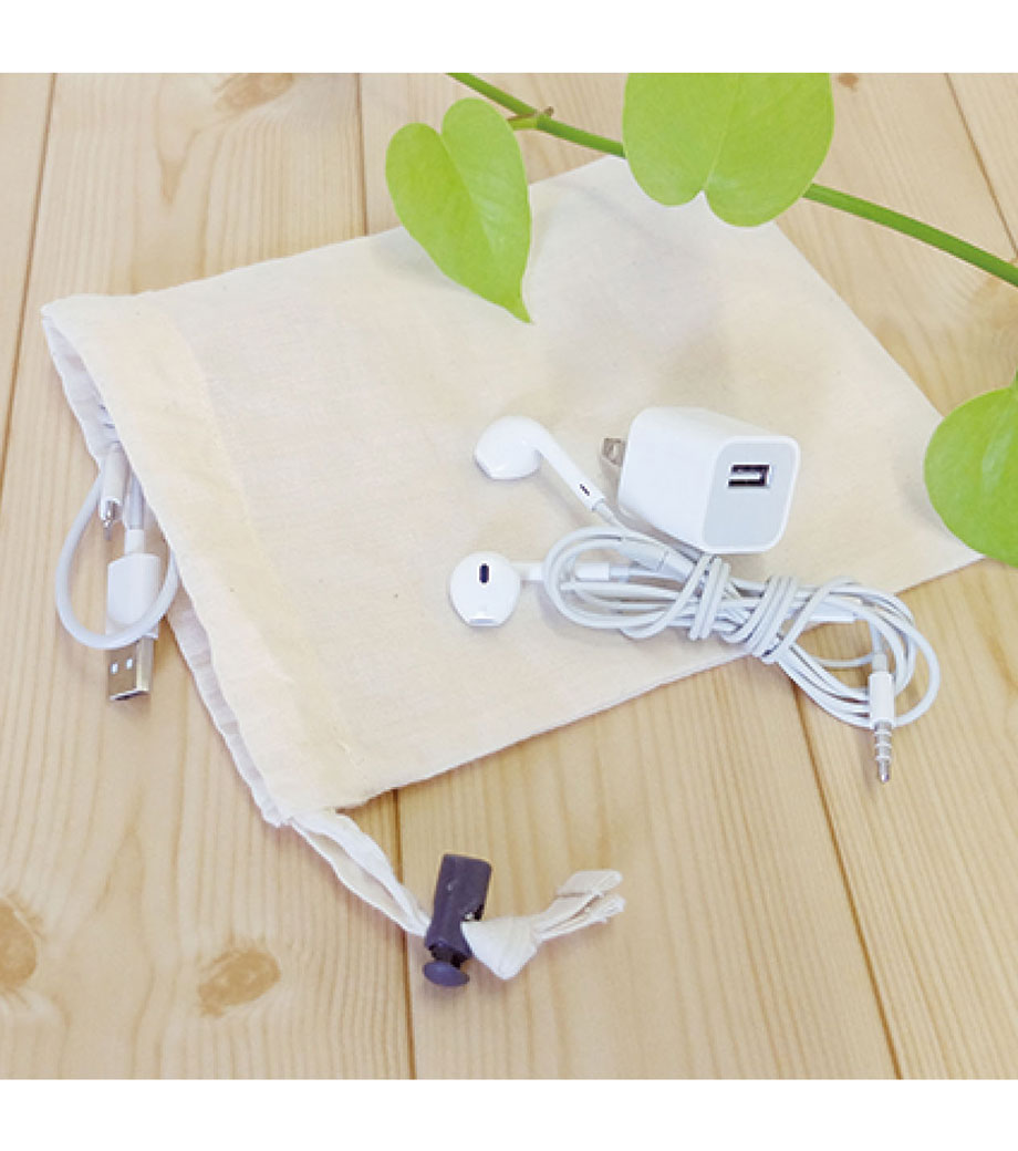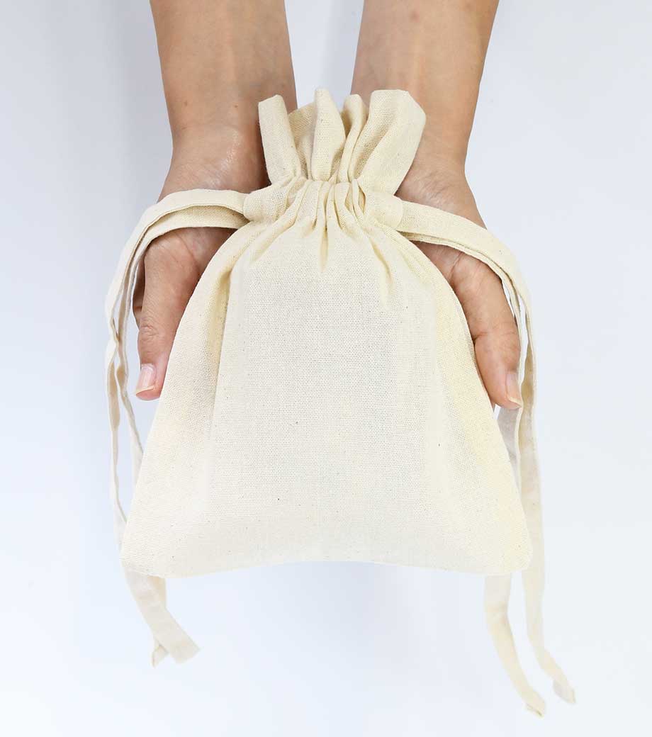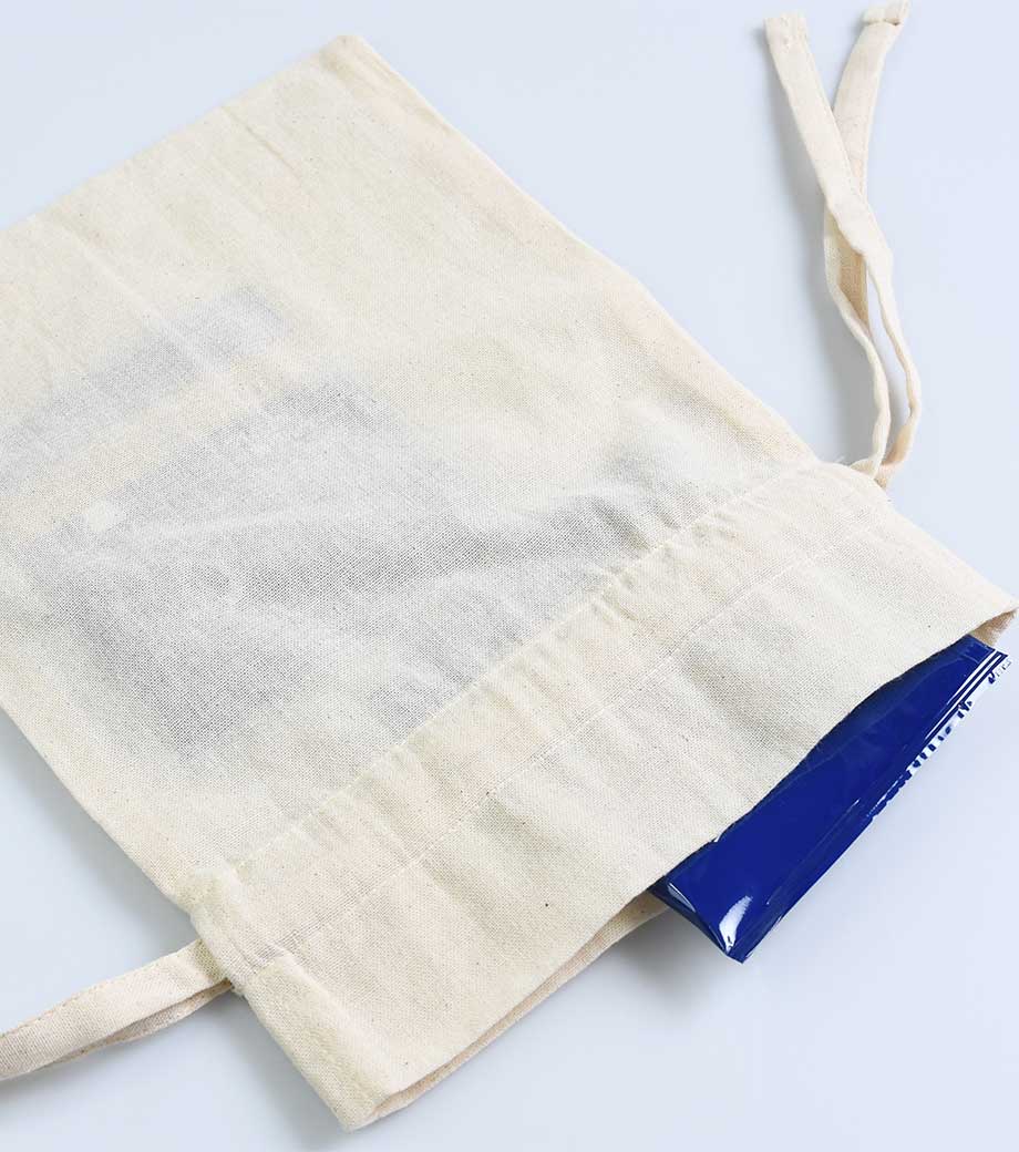 巾着タイプだから使いやすい無漂白コットンのエコトート