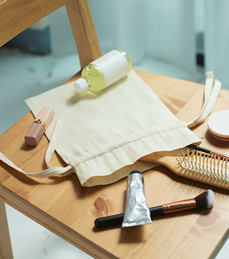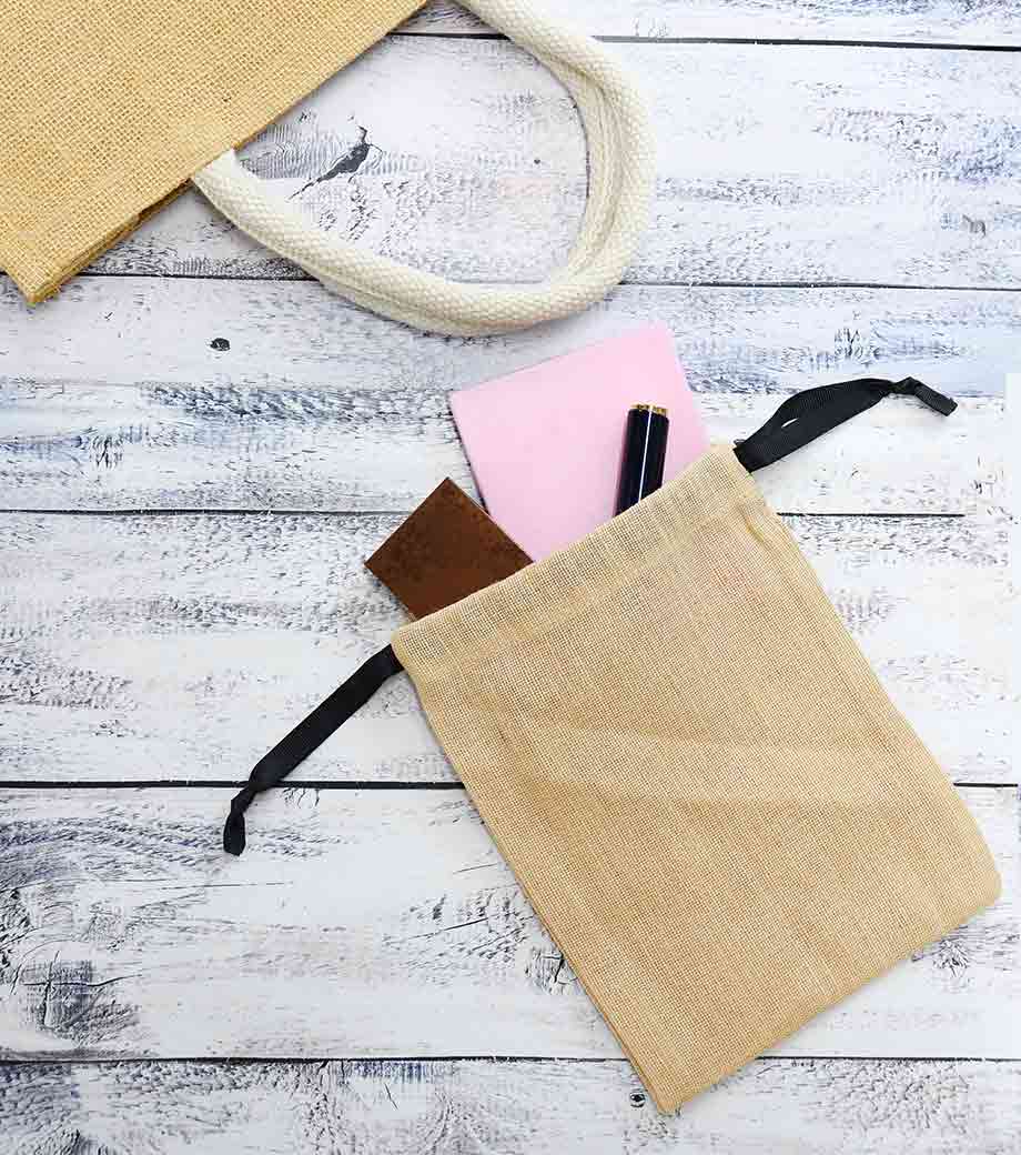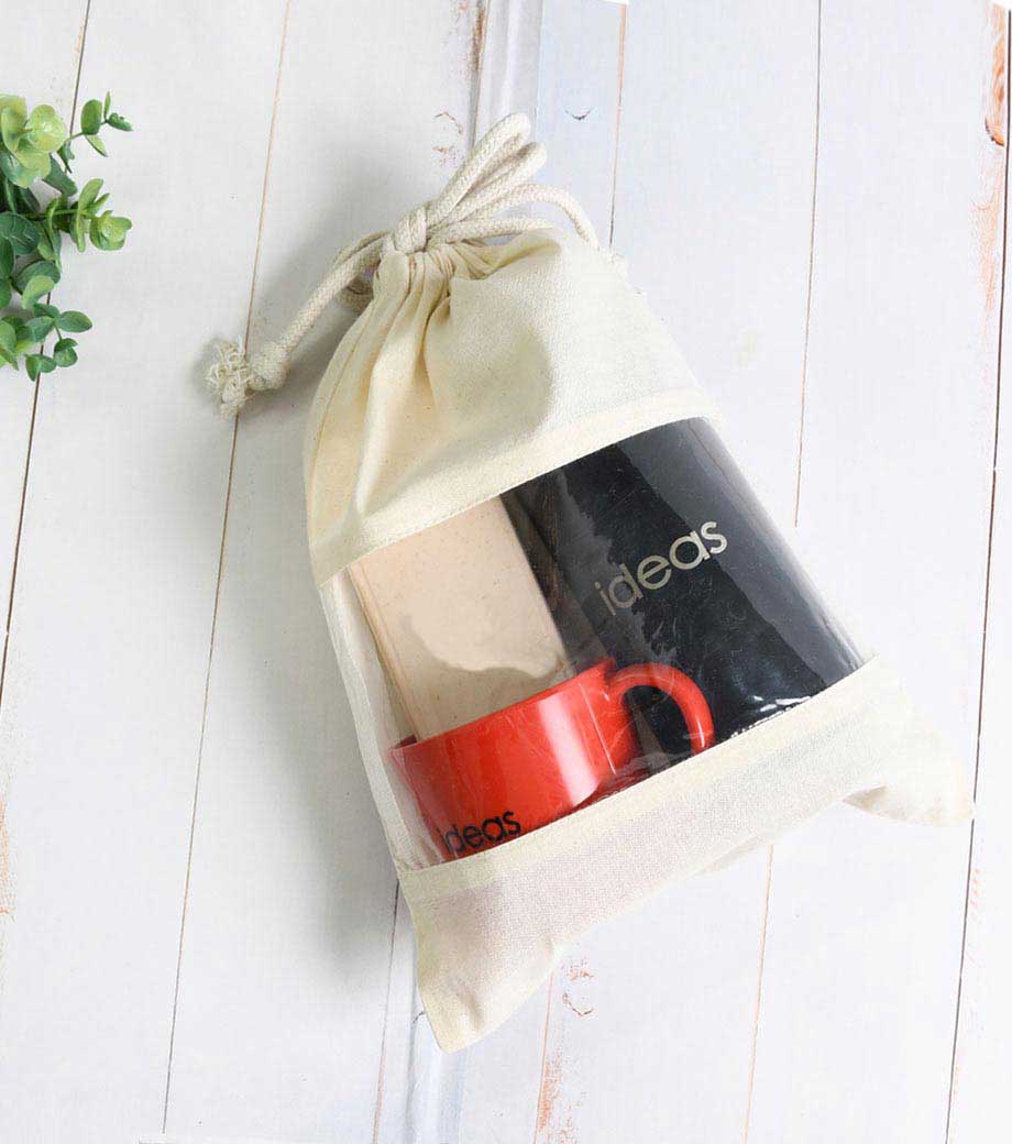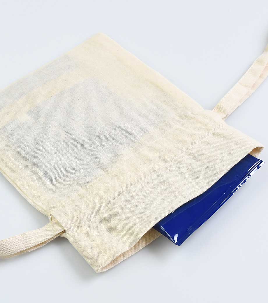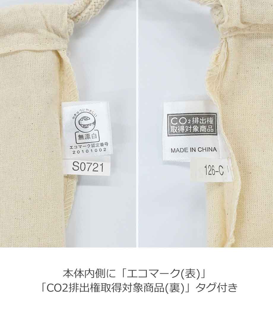 巾着タイプだから使いやすい無漂白コットンのエコトート