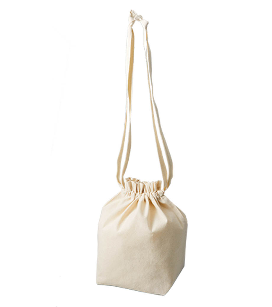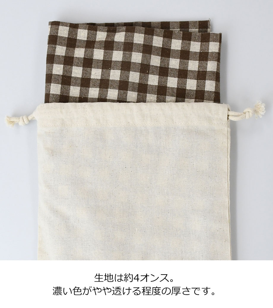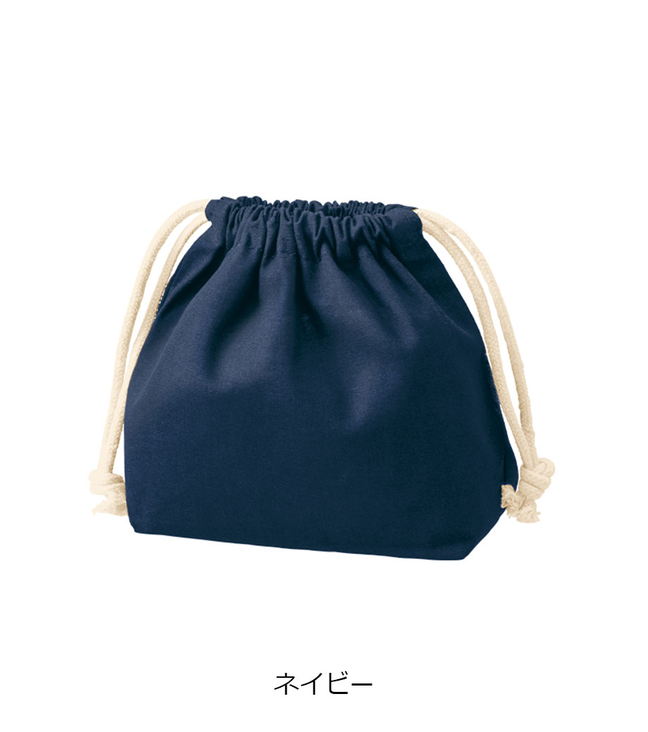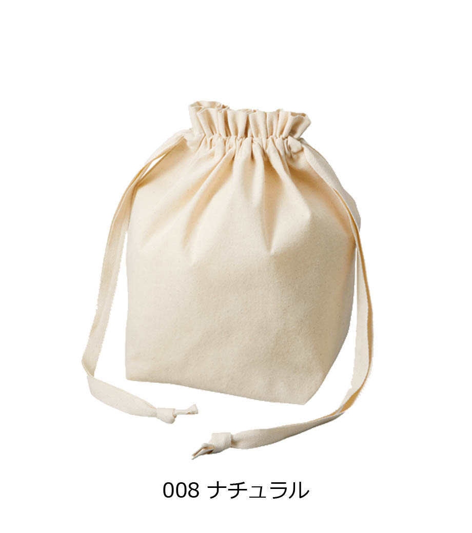 コットンランチ巾着は底にたっぷり約120mmのマチが付いたお弁当入れにぴったりな商品です。生地は約4.7オンスの柔らかいシーチング素材で、地球に優しい無漂白コットンを使用しています。