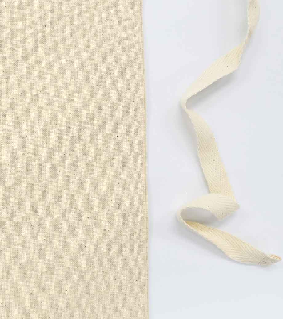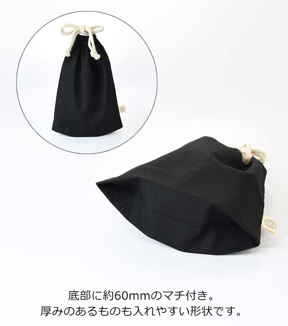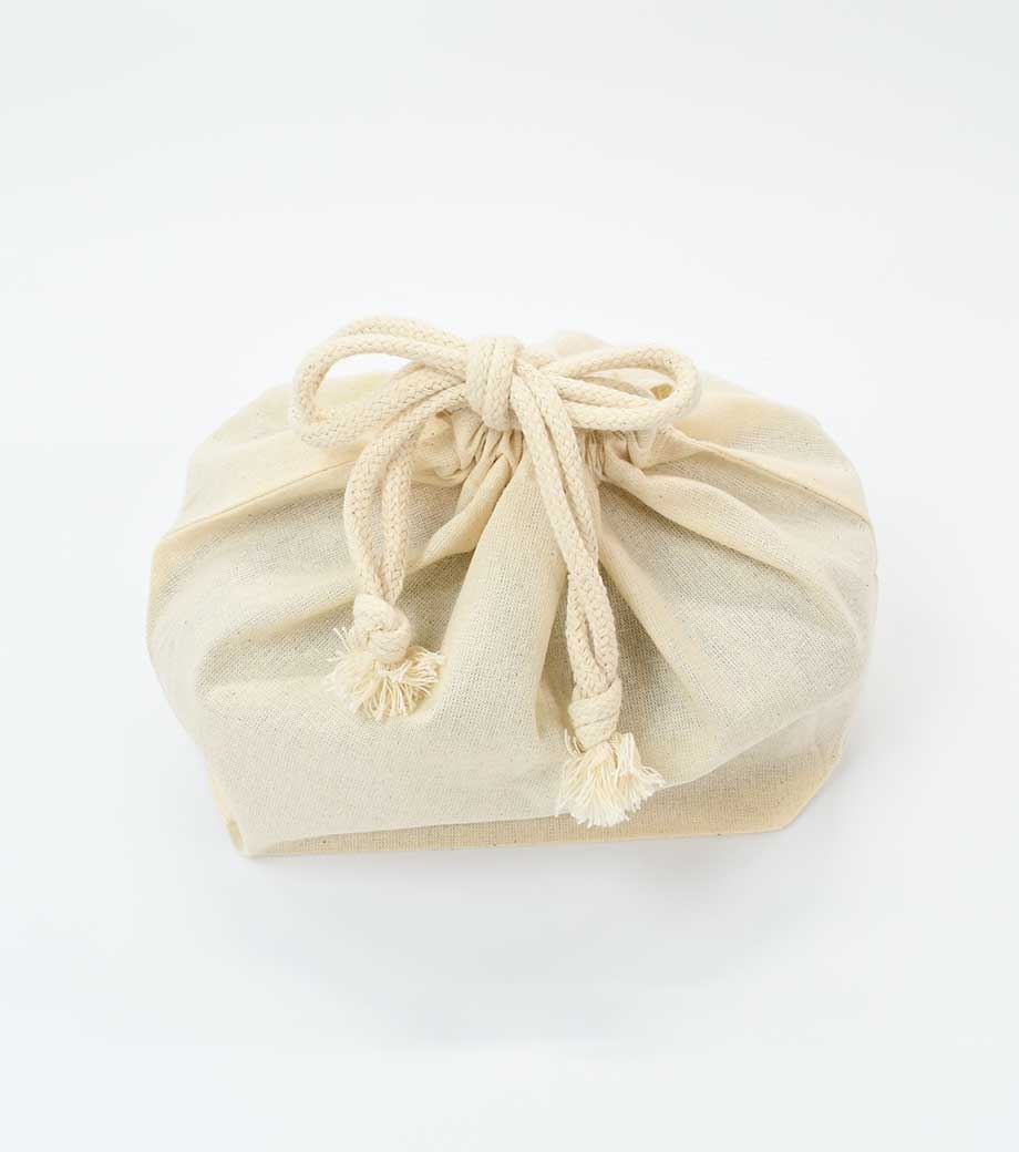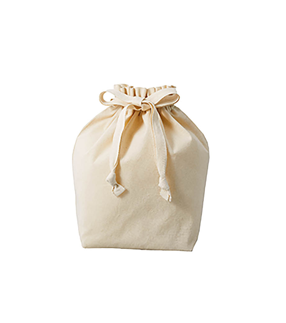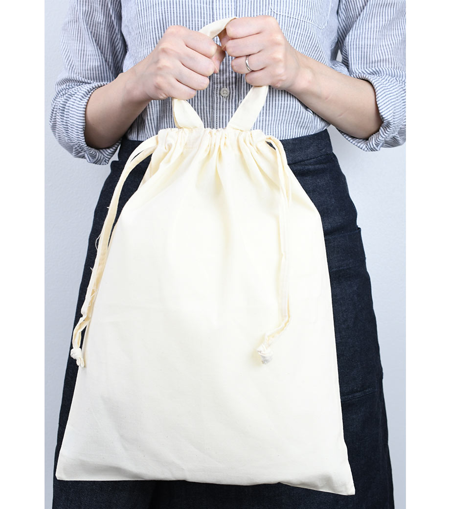 コットンランチ巾着は底にたっぷり約120mmのマチが付いたお弁当入れにぴったりな商品です。生地は約4.7オンスの柔らかいシーチング素材で、地球に優しい無漂白コットンを使用しています。