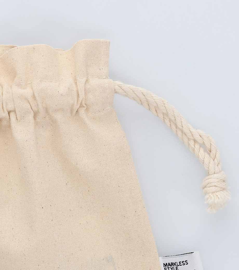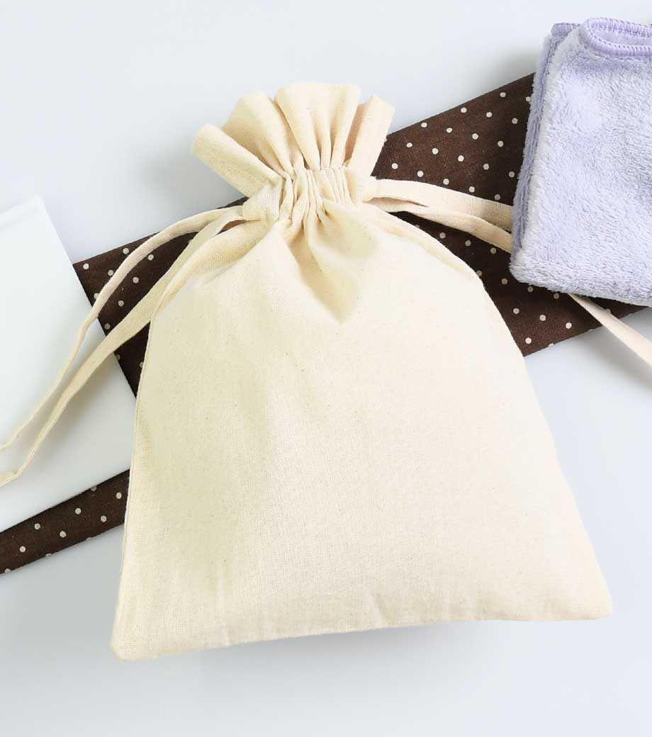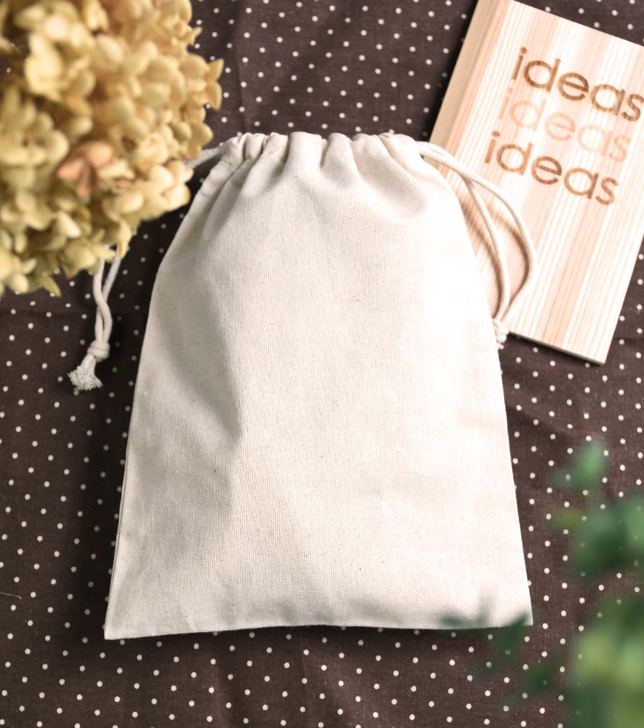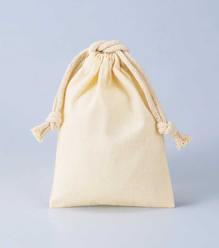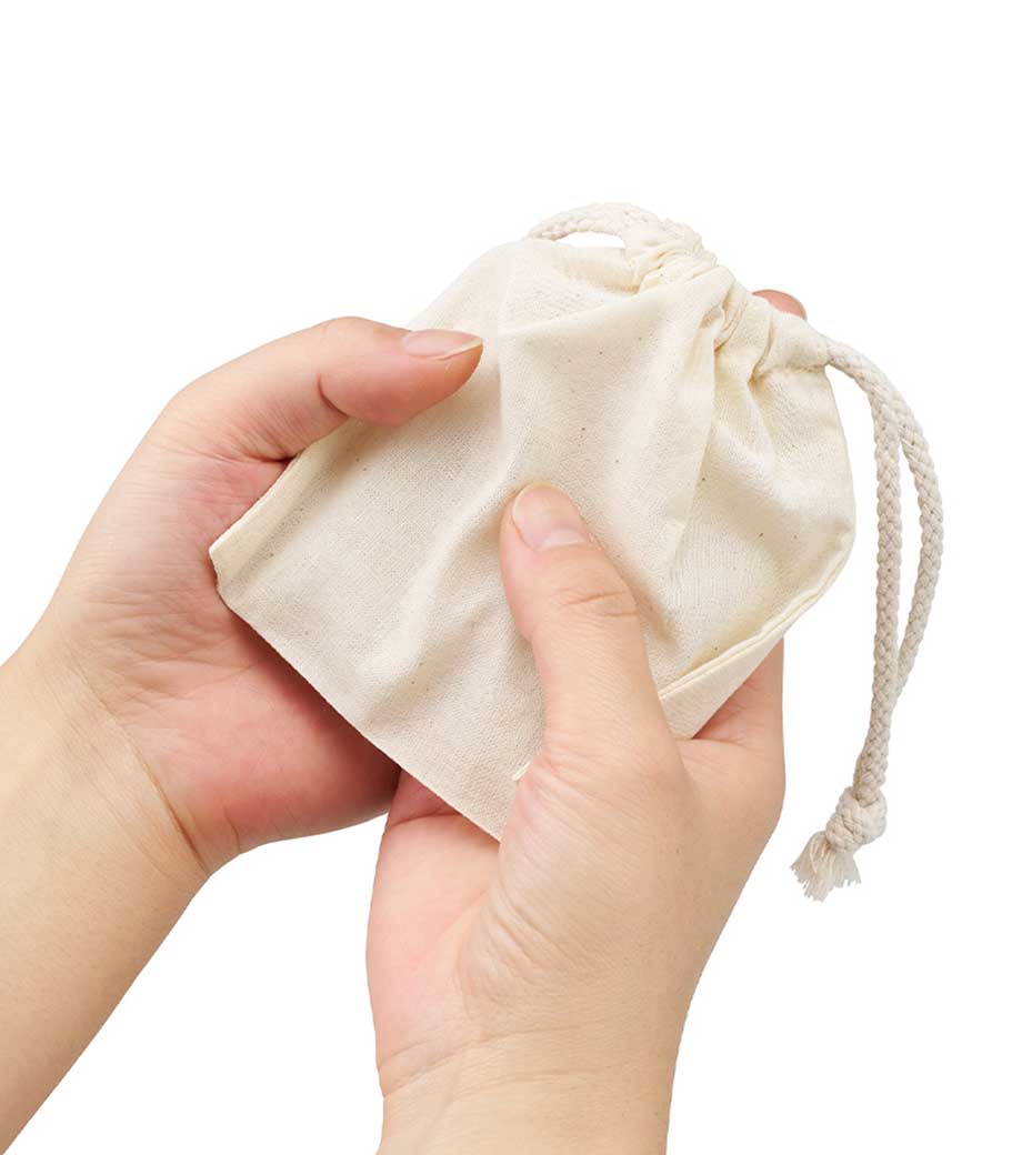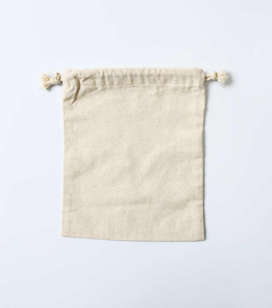 「コットン巾着(Sサイズ)」は自然な風合いが魅力のミニサイズの巾着です。歯ブラシやミニサイズ化粧品などがすっぽり収まる大きさで、レジャーや旅行に行くときにとっても便利。お菓子や小さなプレゼントをいれて、パッケージ用にも使えます。無漂白コットン地なので、汚れてしまっても洗濯機で洗えるので、衛生的です。