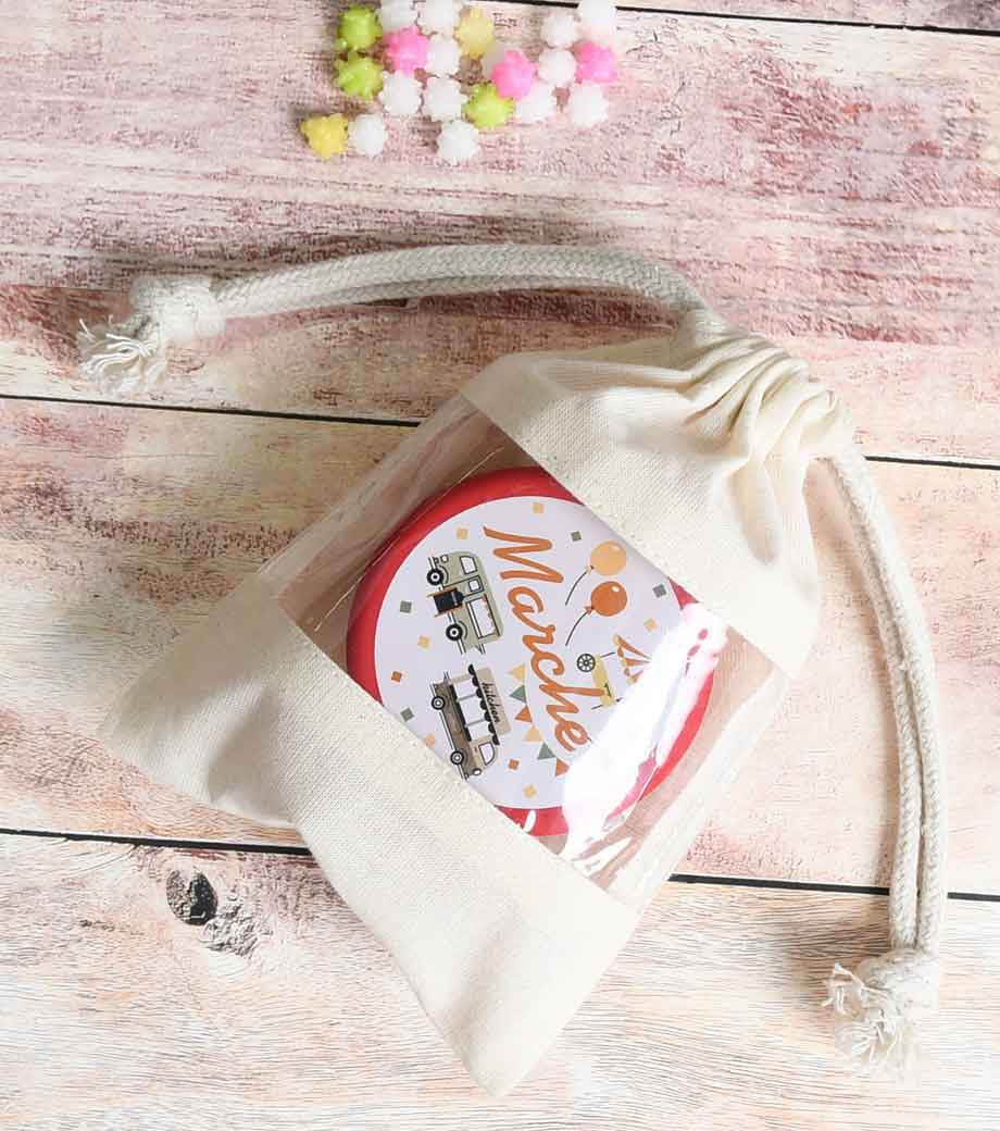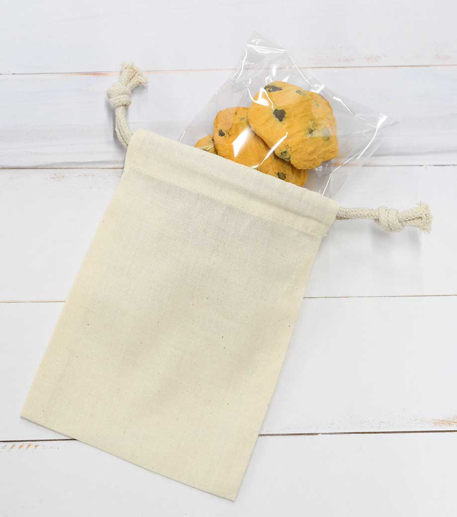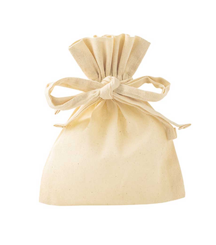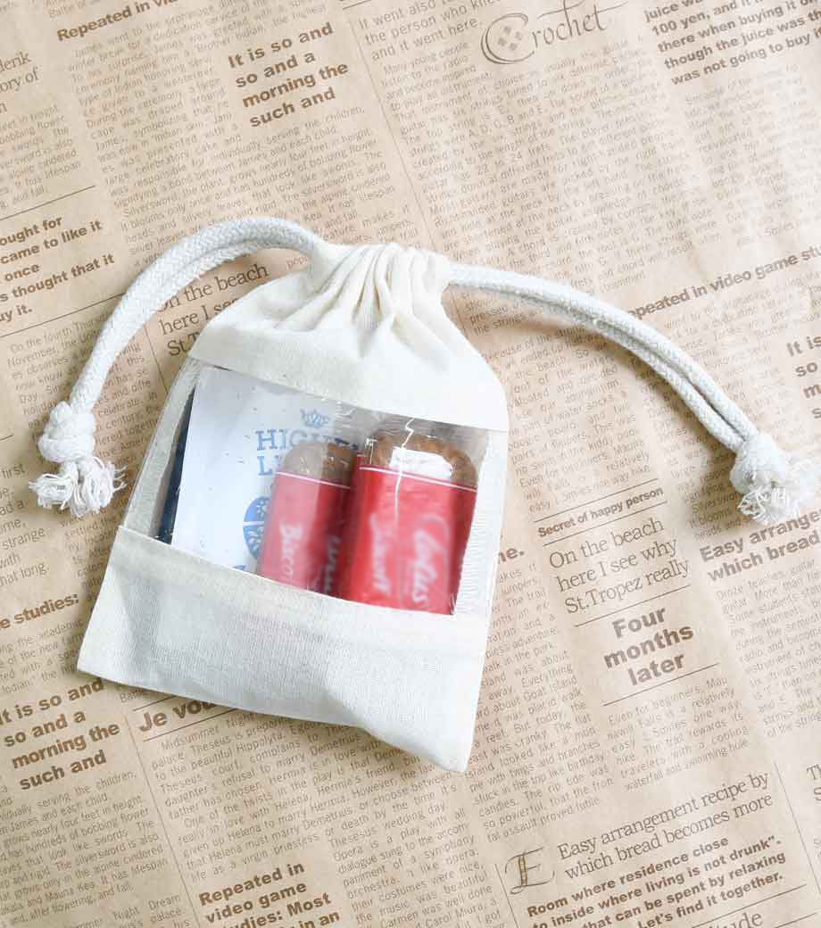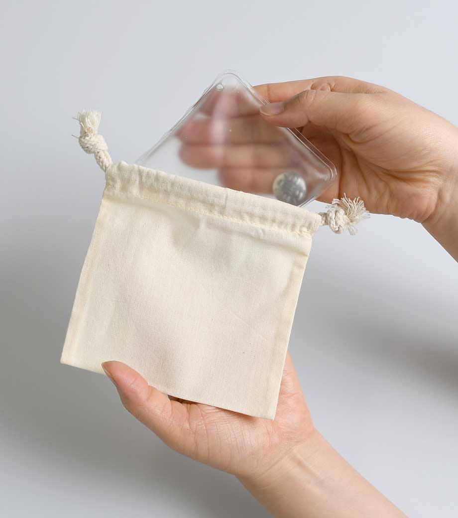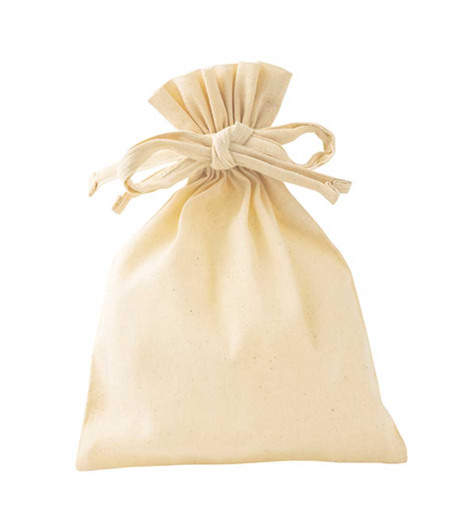 「コットン巾着(Sサイズ)」は自然な風合いが魅力のミニサイズの巾着です。歯ブラシやミニサイズ化粧品などがすっぽり収まる大きさで、レジャーや旅行に行くときにとっても便利。お菓子や小さなプレゼントをいれて、パッケージ用にも使えます。無漂白コットン地なので、汚れてしまっても洗濯機で洗えるので、衛生的です。
