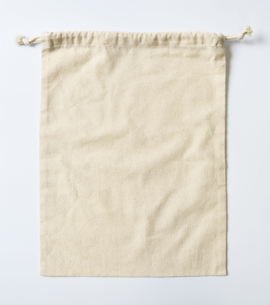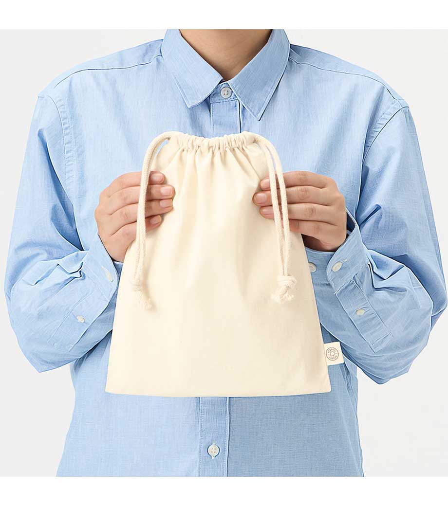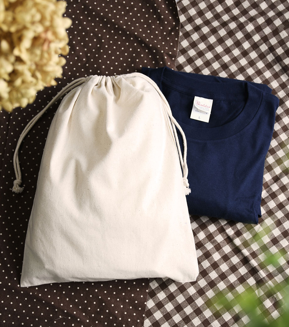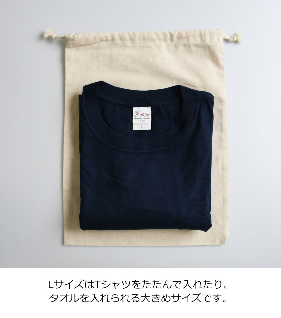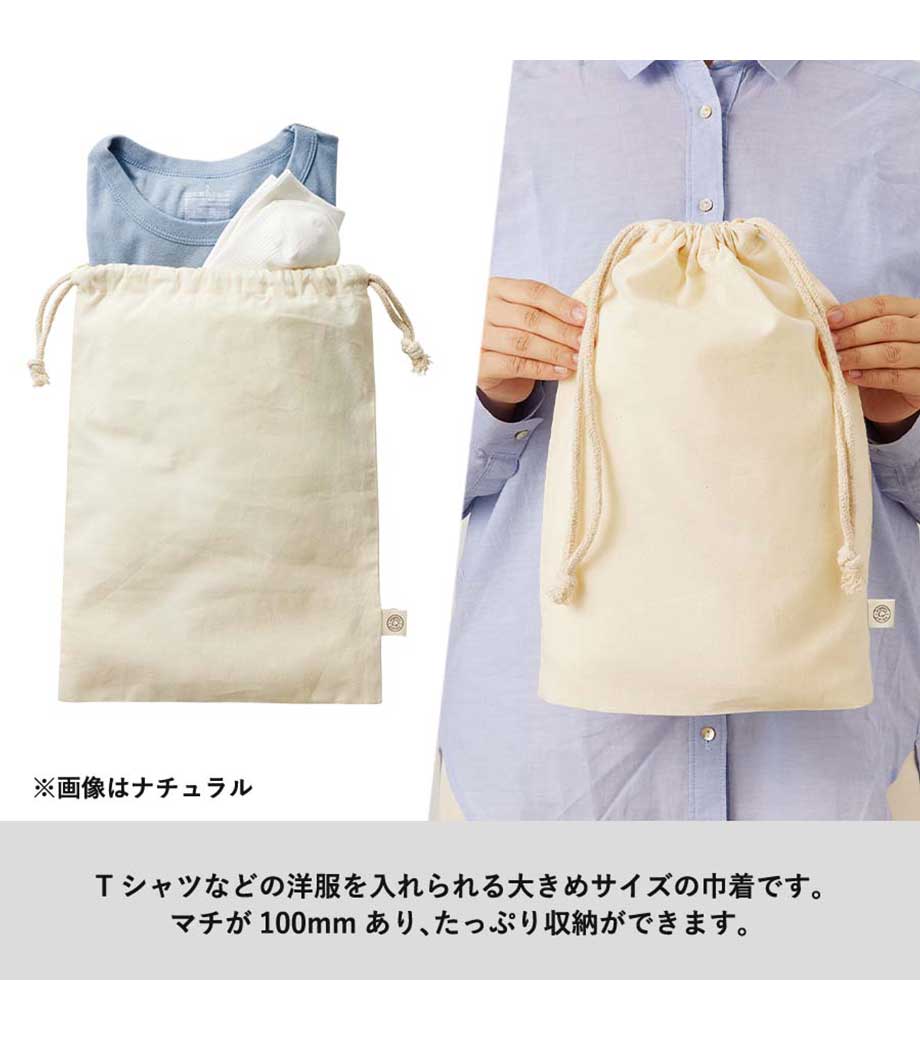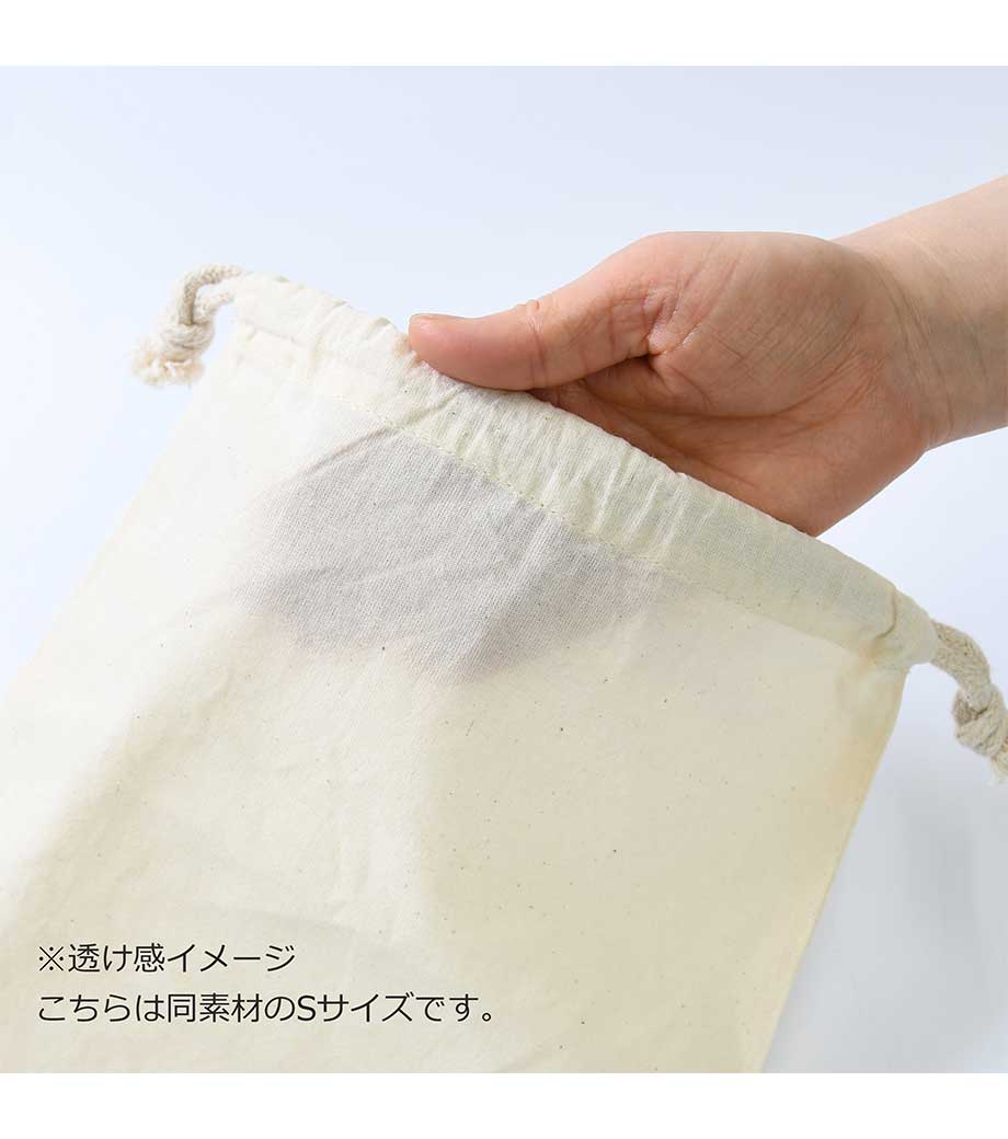 「コットン巾着(L)」は、自然の風合いがやさしい、コットン素材の巾着袋。衣類や小物類の整理にぴったりです。