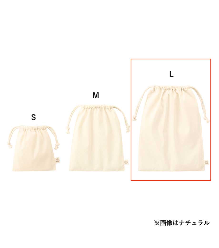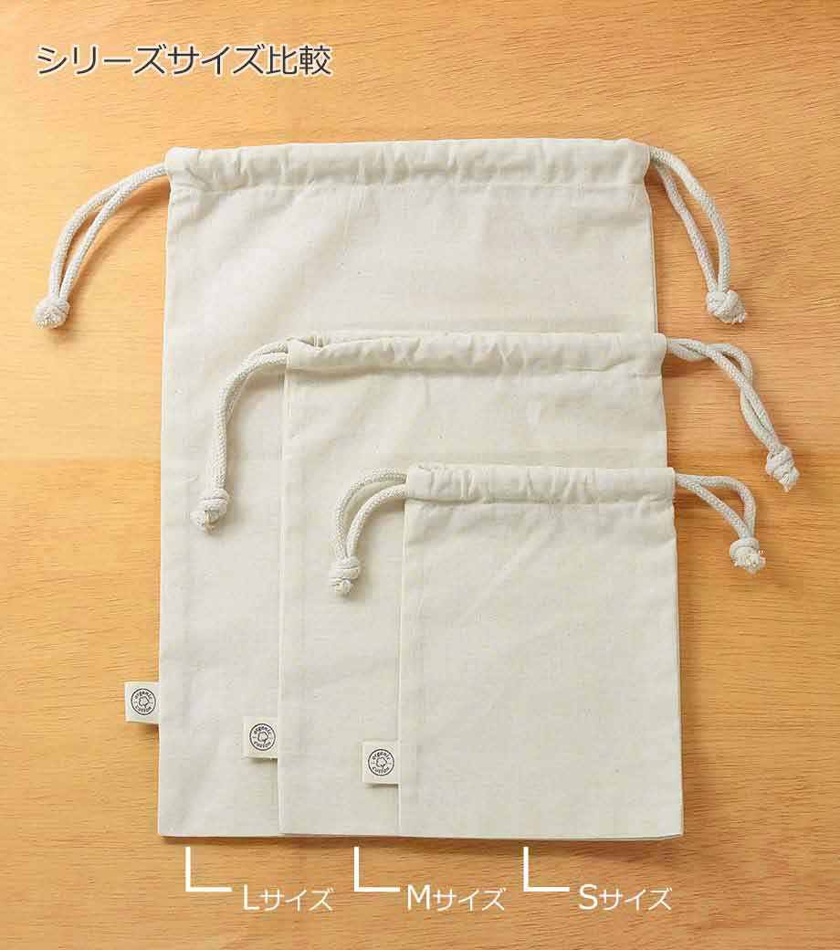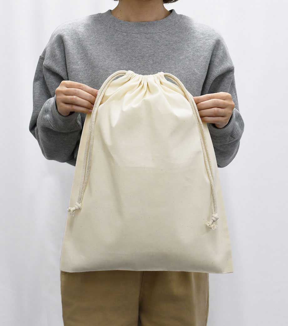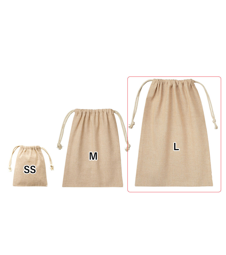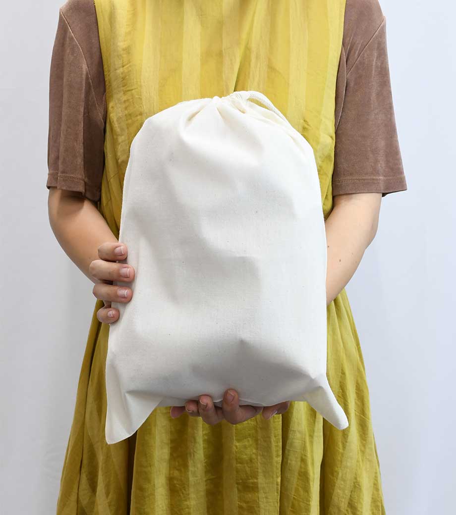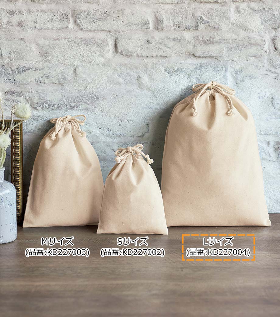 「コットン巾着(L)」は、自然の風合いがやさしい、コットン素材の巾着袋。衣類や小物類の整理にぴったりです。