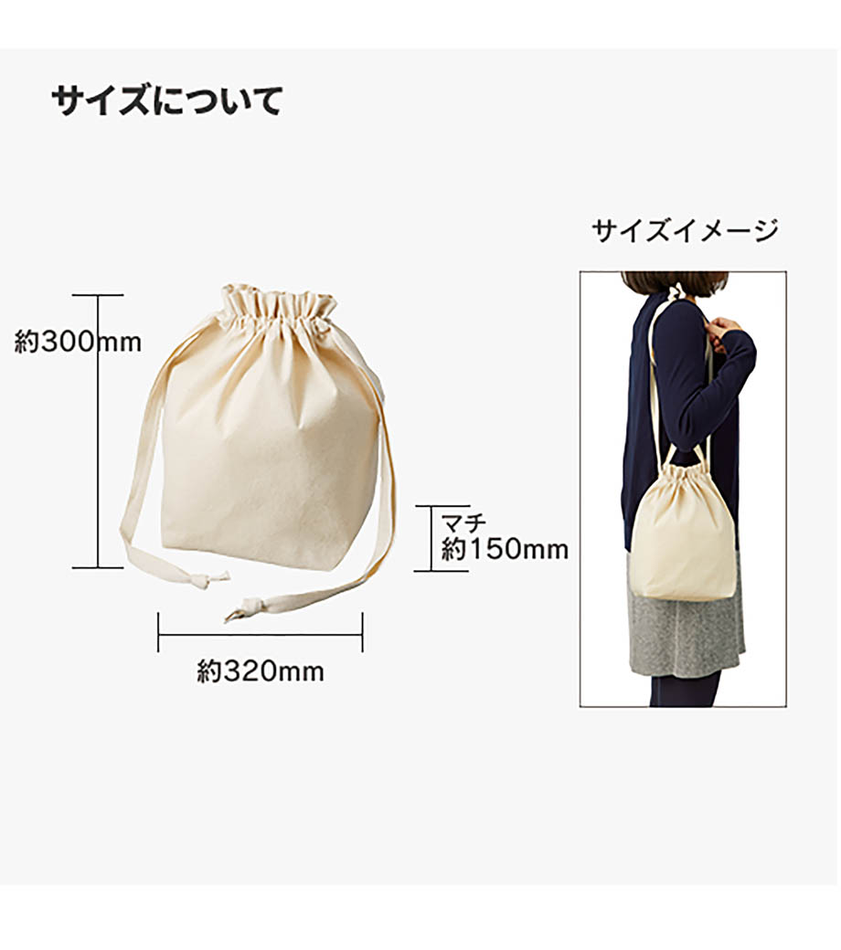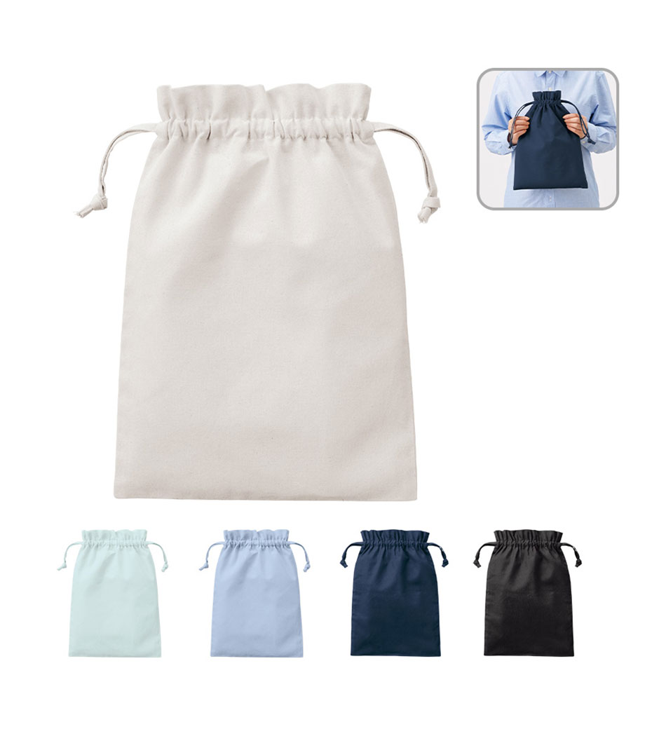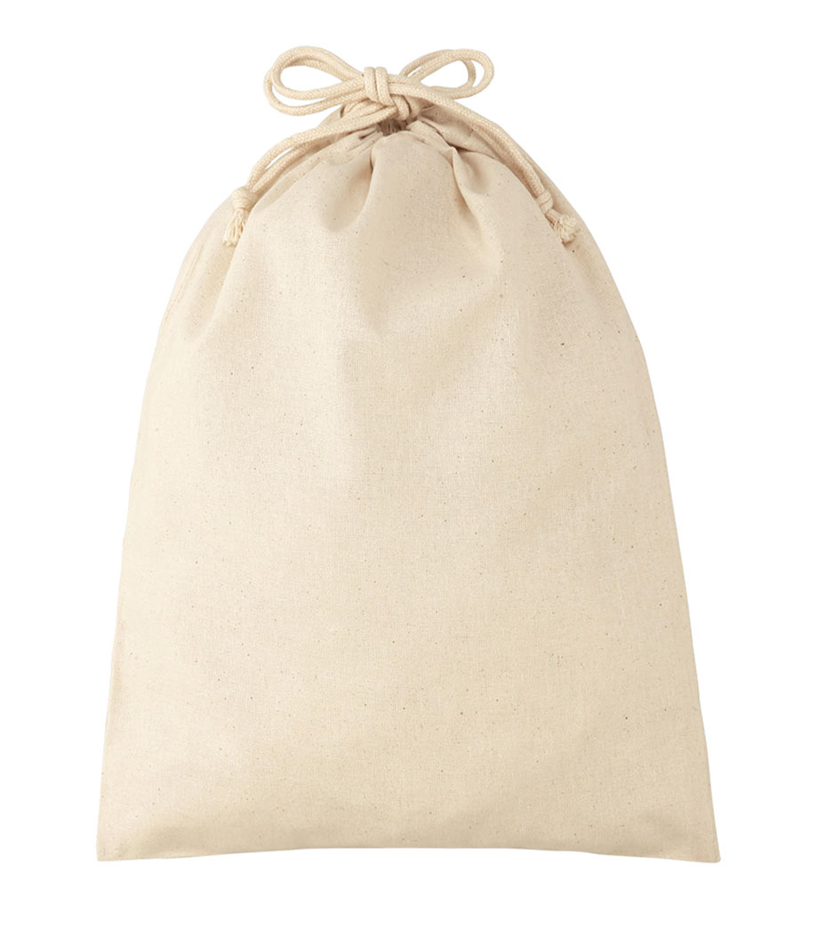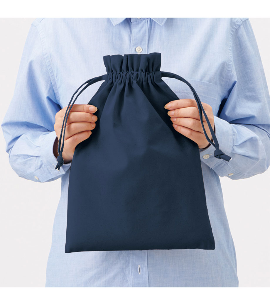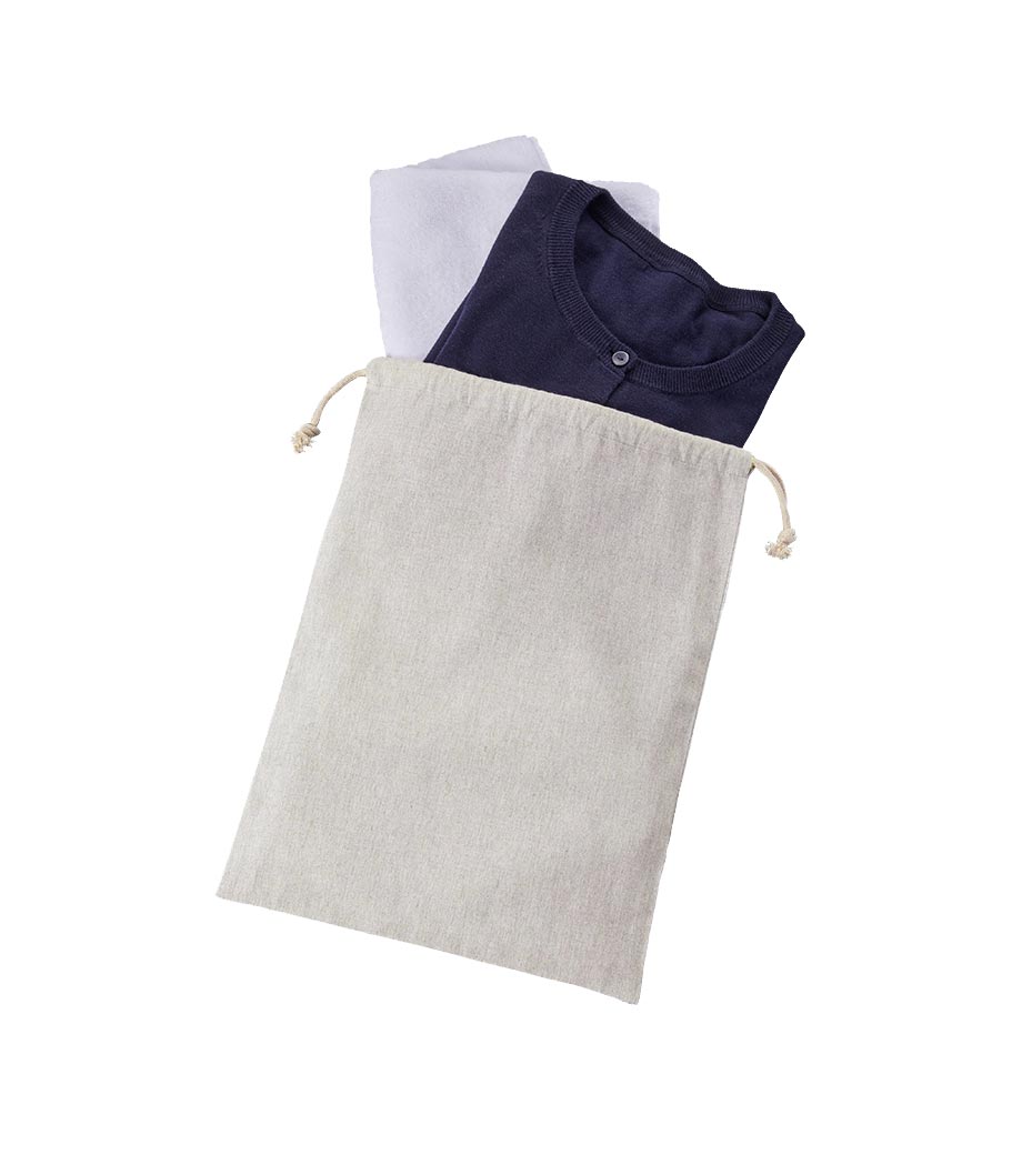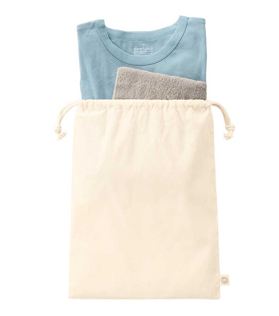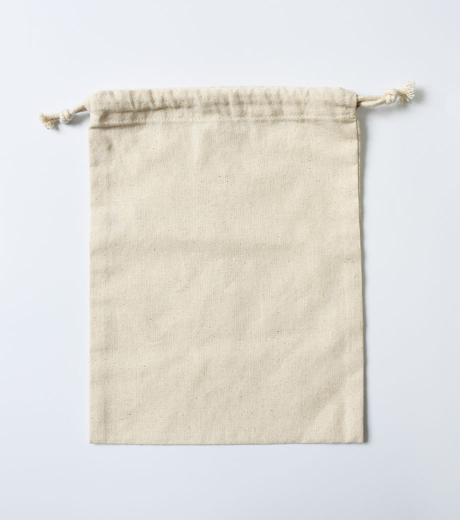 「コットン巾着(L)」は、自然の風合いがやさしい、コットン素材の巾着袋。衣類や小物類の整理にぴったりです。