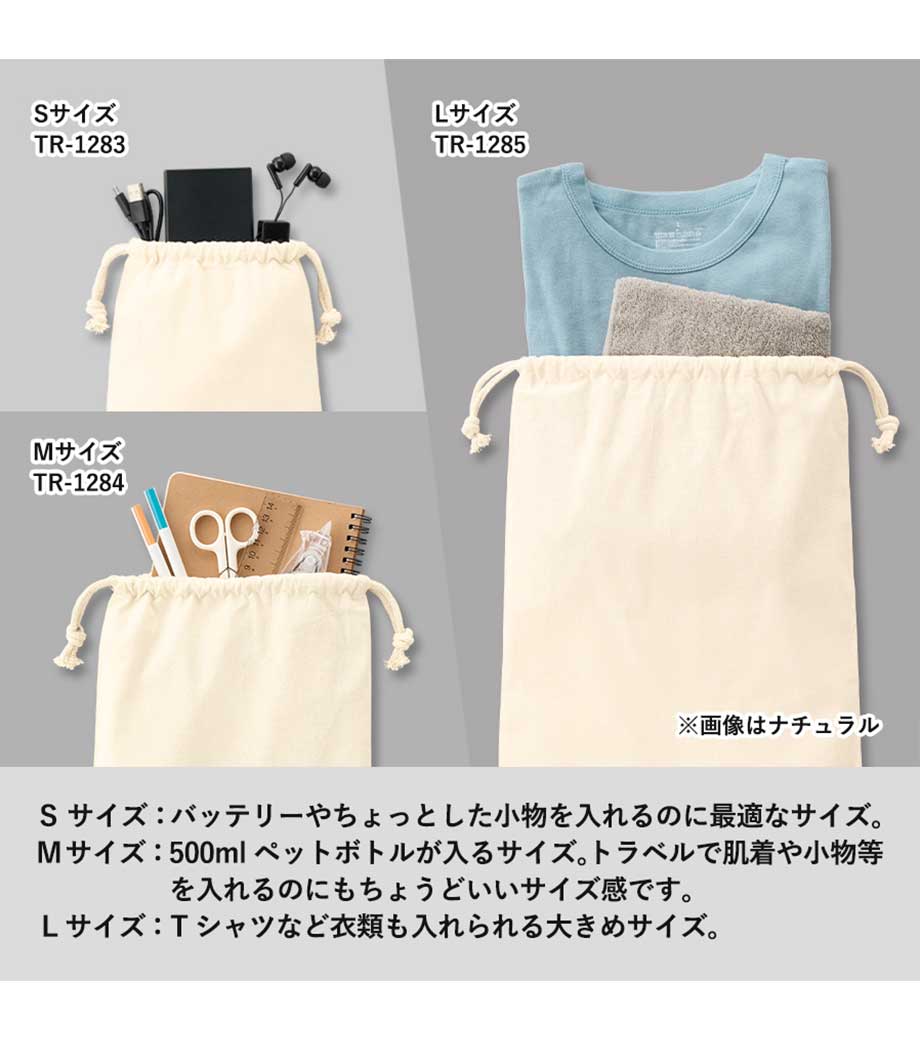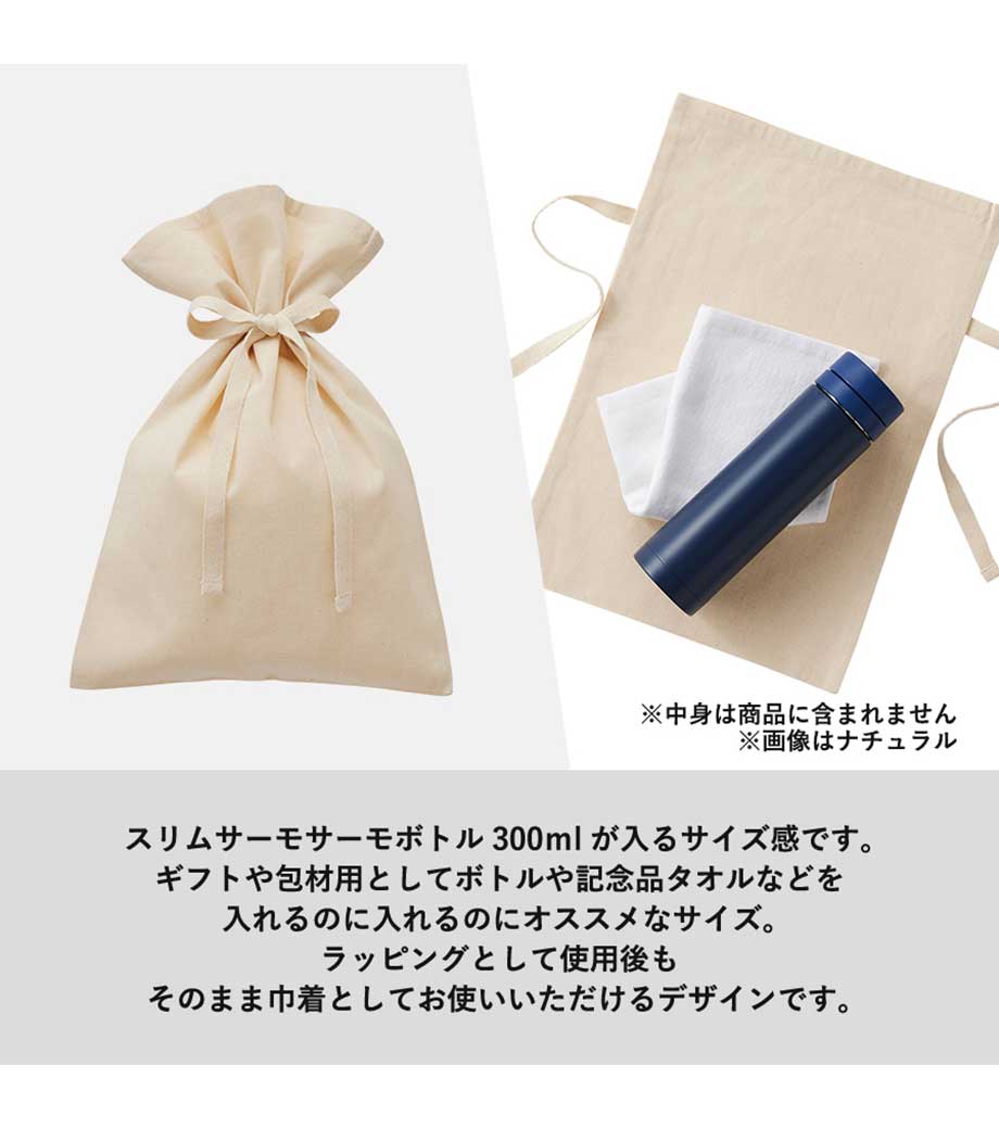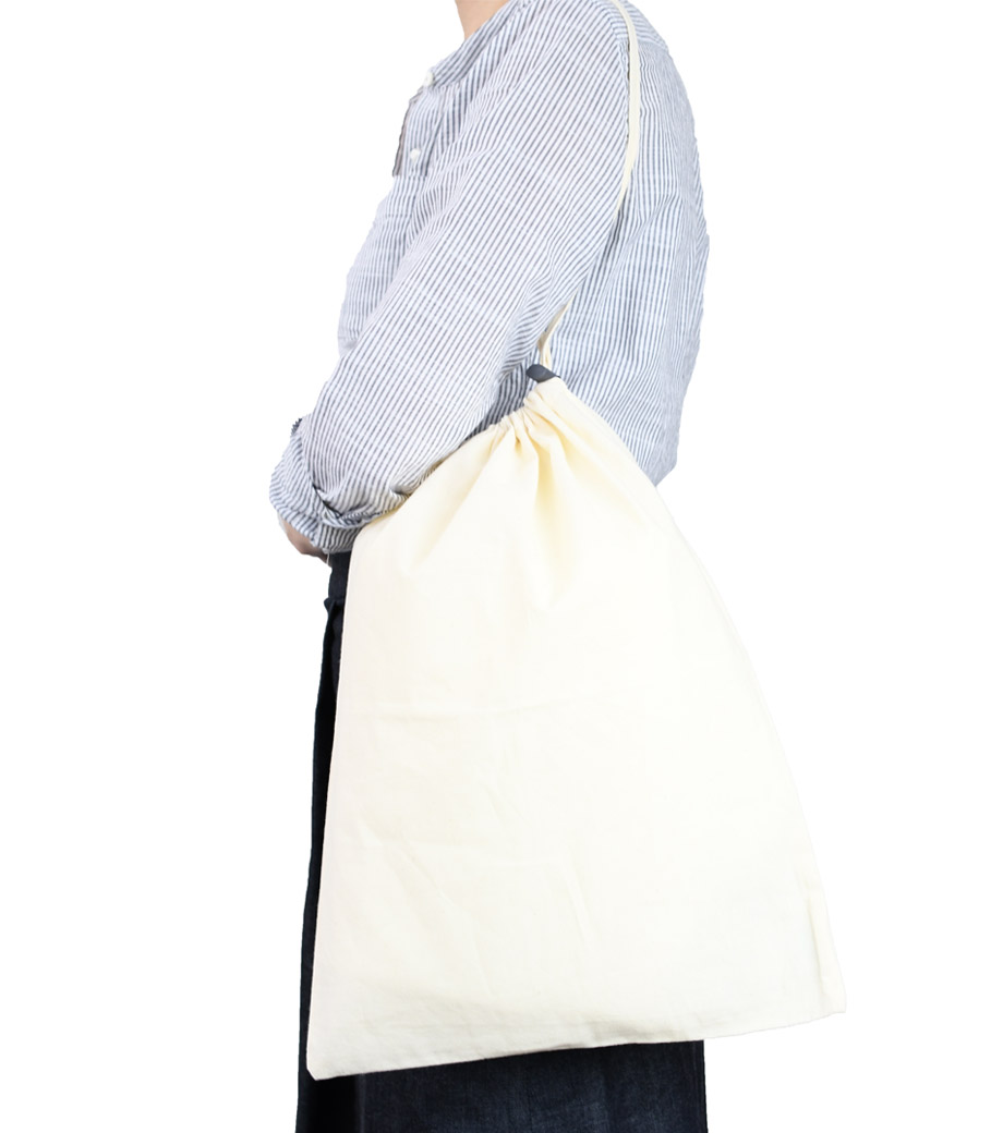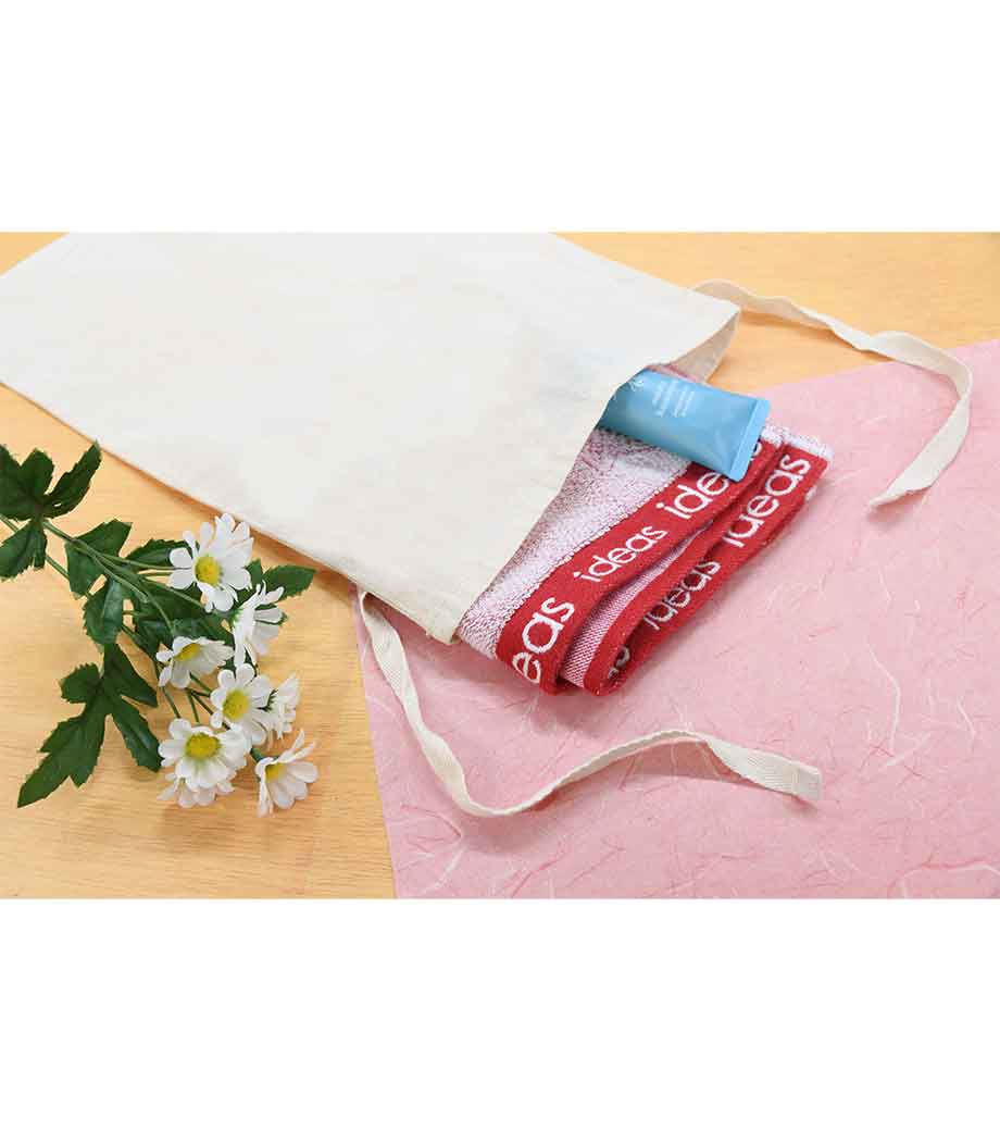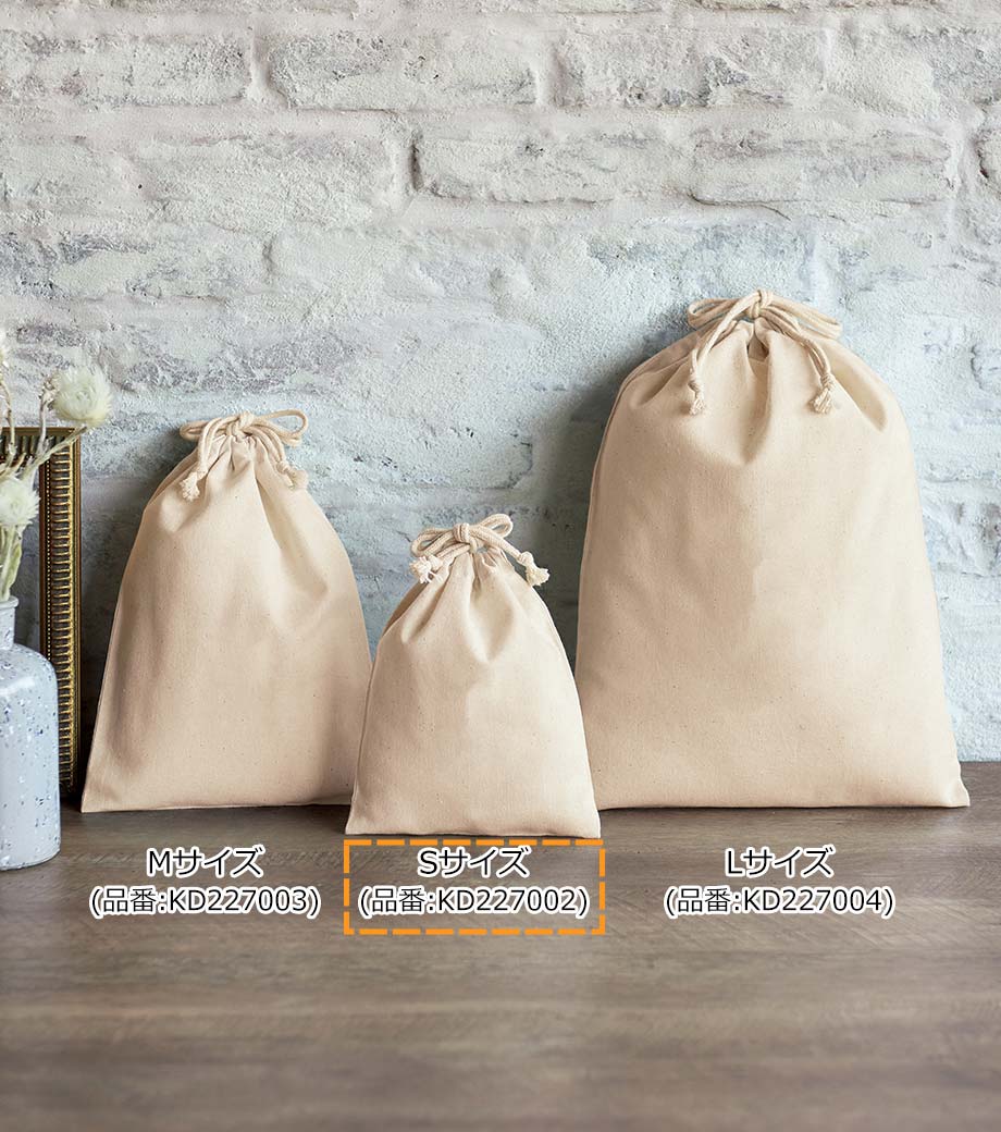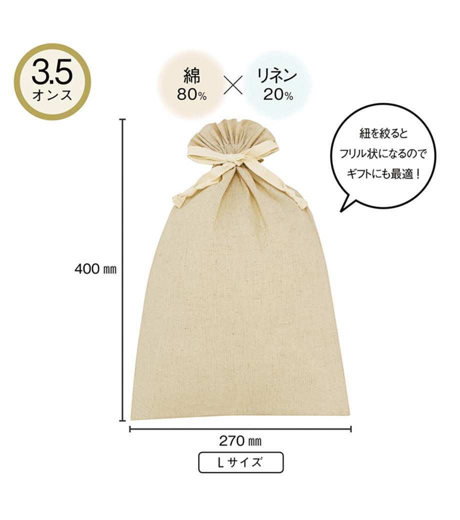 「コットン巾着(L)」は、自然の風合いがやさしい、コットン素材の巾着袋。衣類や小物類の整理にぴったりです。