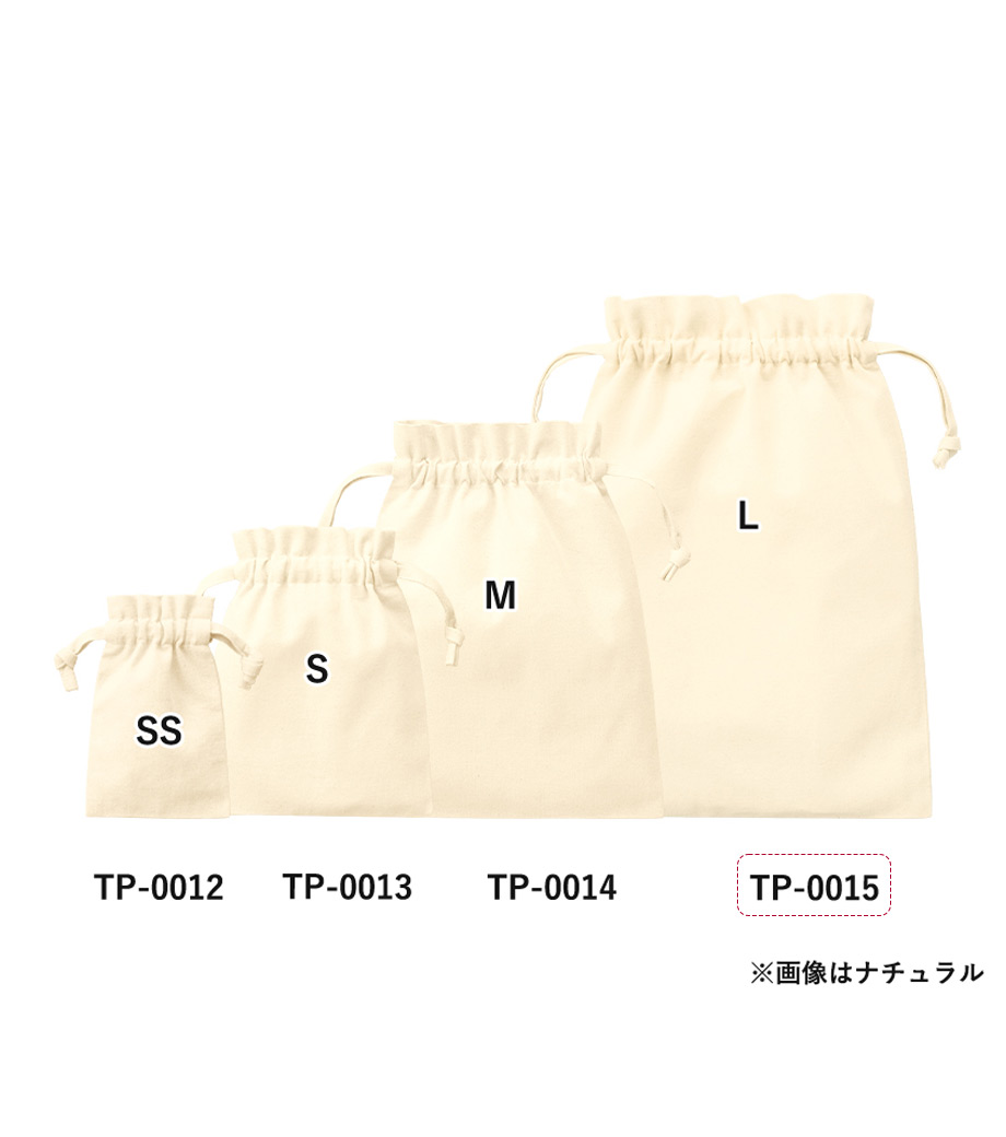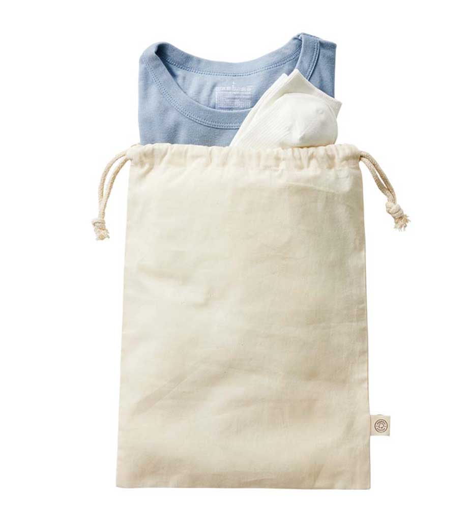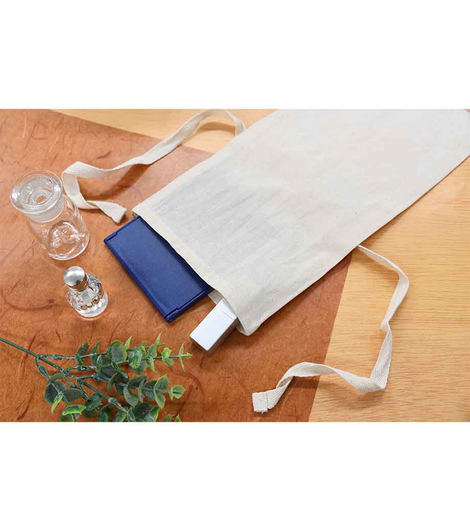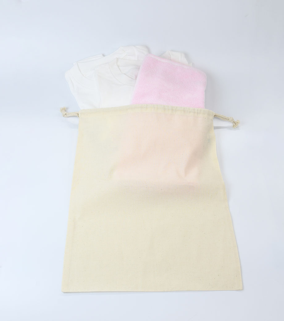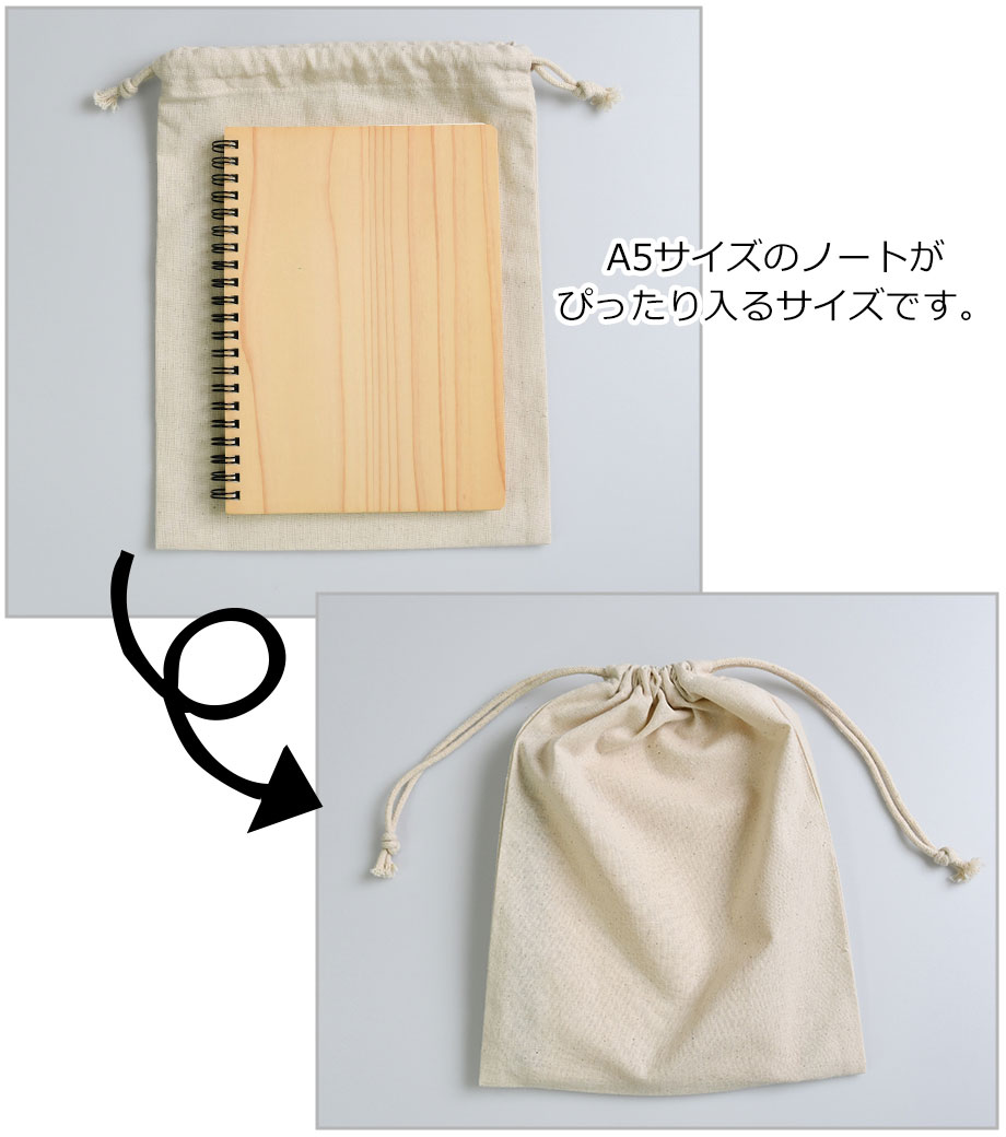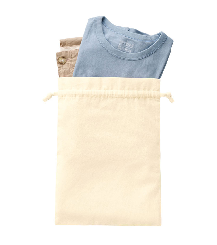 「コットン巾着(L)」は、自然の風合いがやさしい、コットン素材の巾着袋。衣類や小物類の整理にぴったりです。
