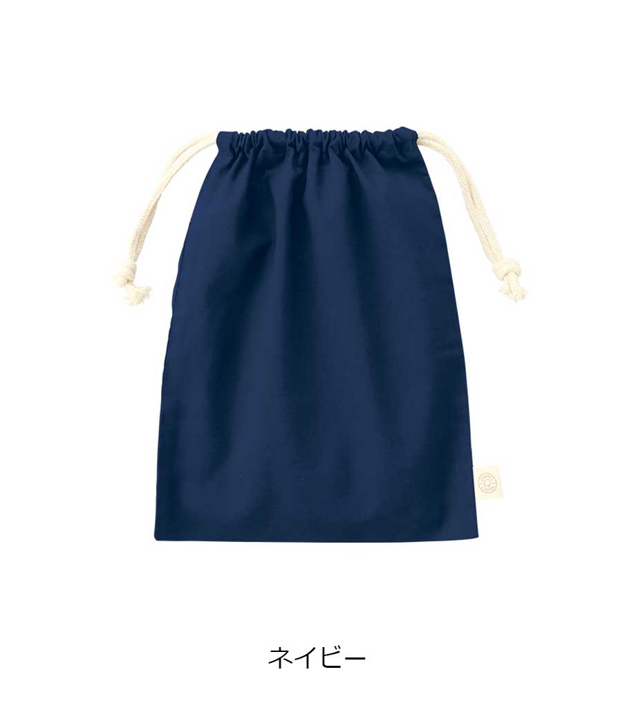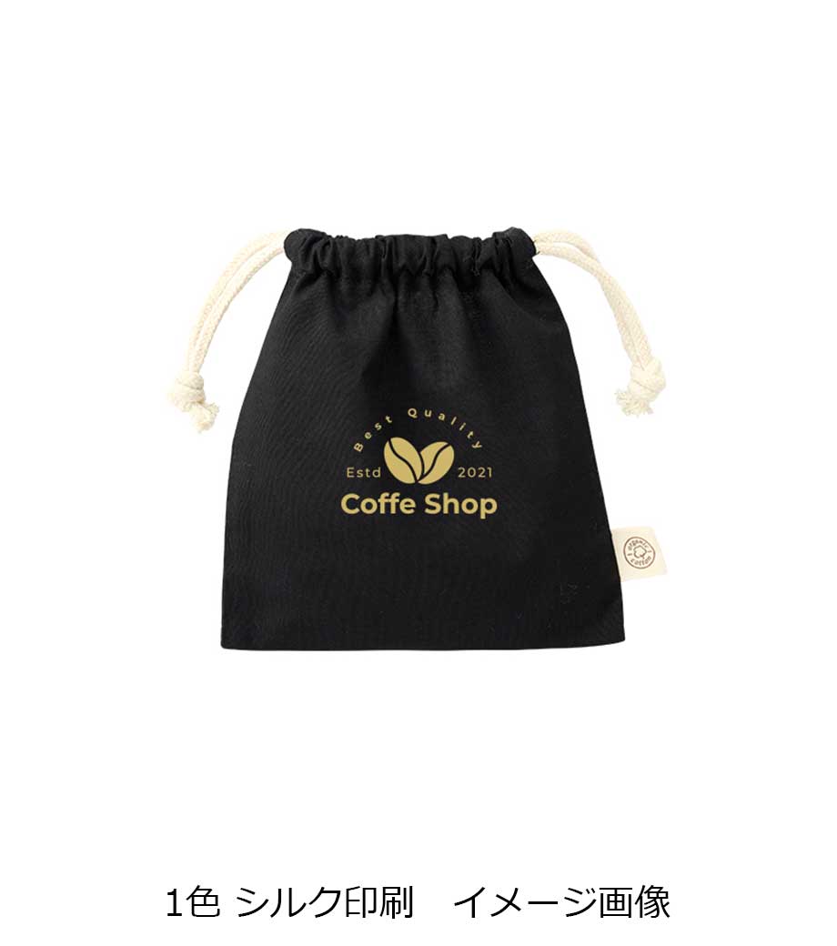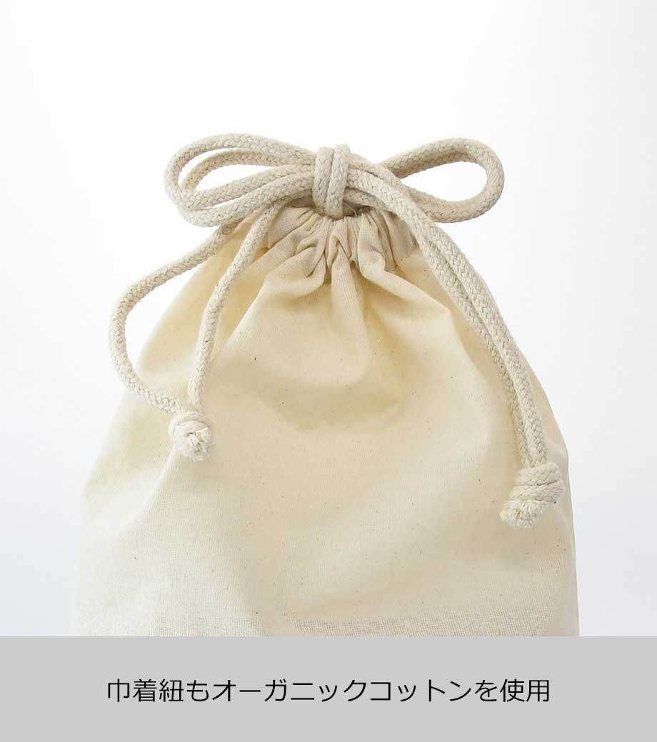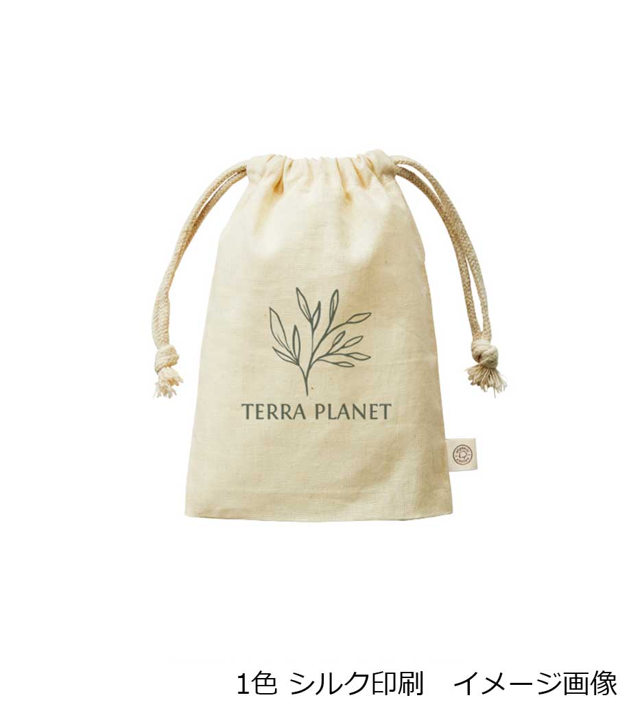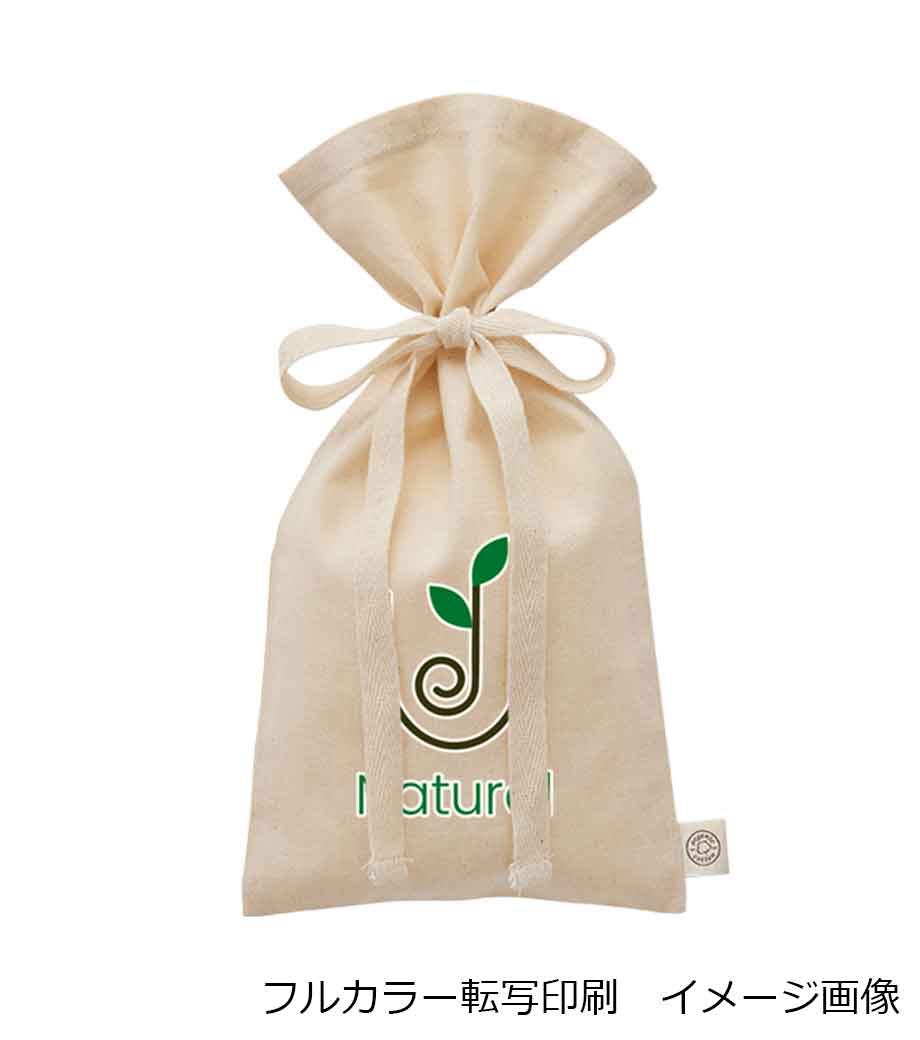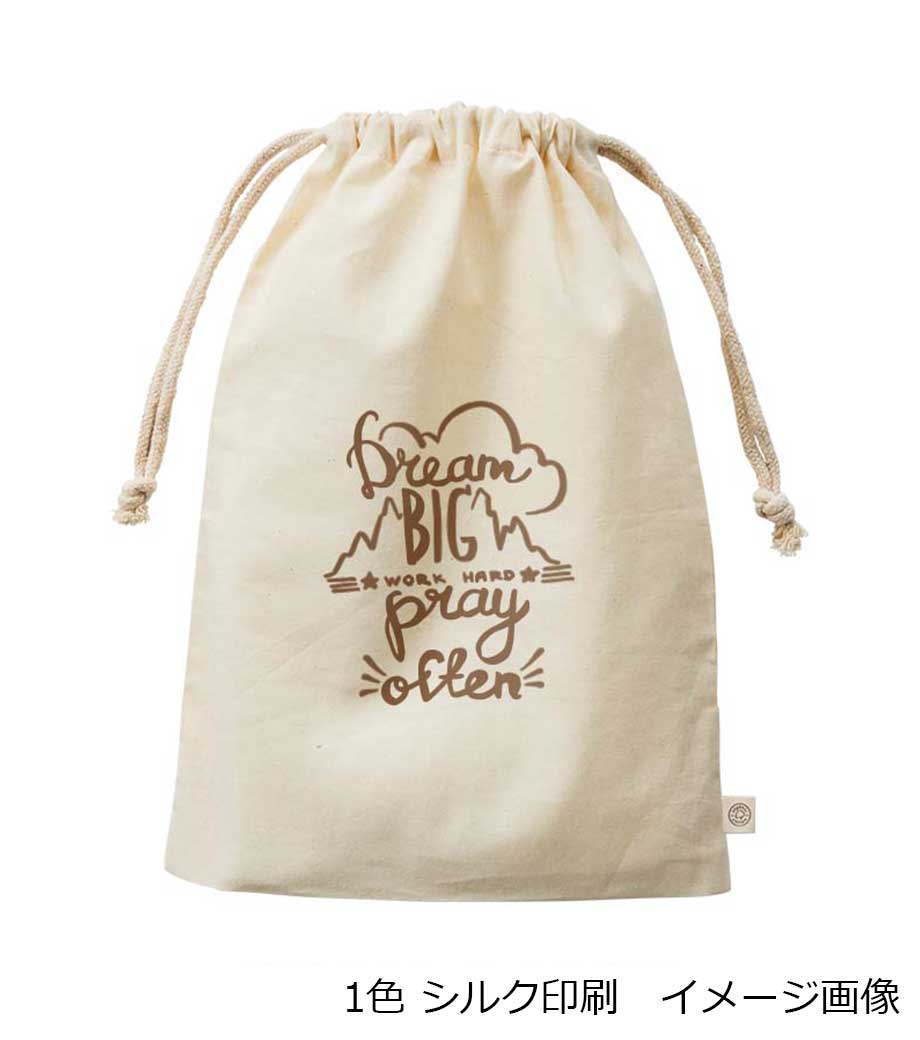 名入れ印刷が可能。ロゴやイベント名を印刷してオリジナル巾着が作れます。フェアトレード商品で持続可能な発展を支え、温かみあふれるオーガニックコットン。SDGsに取り組む企業のノベルティとしておすすめです。