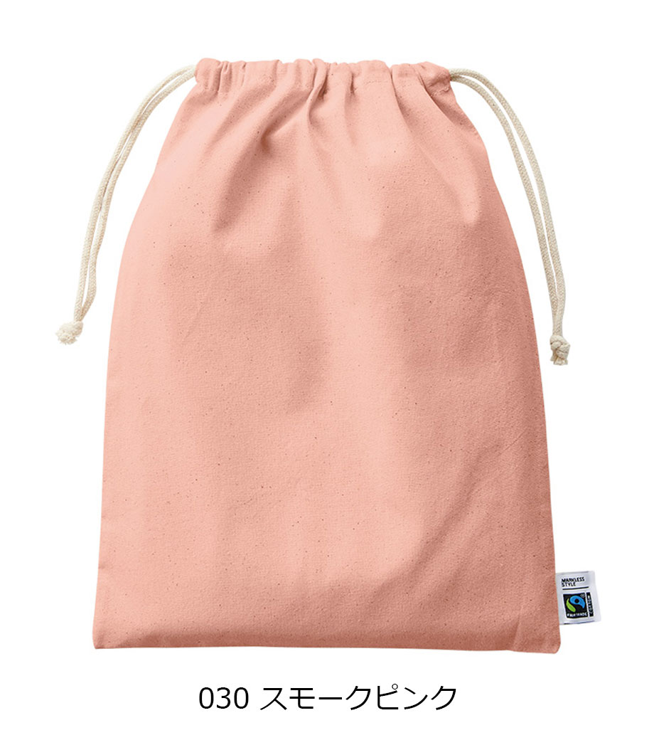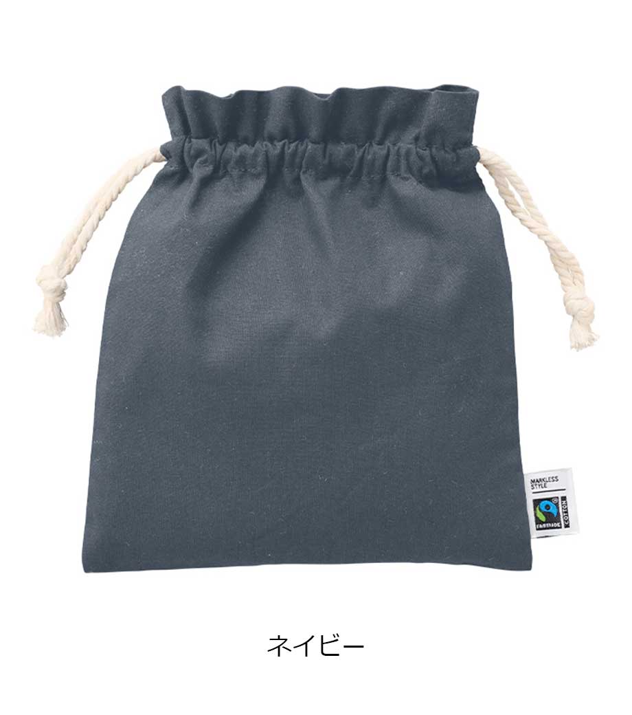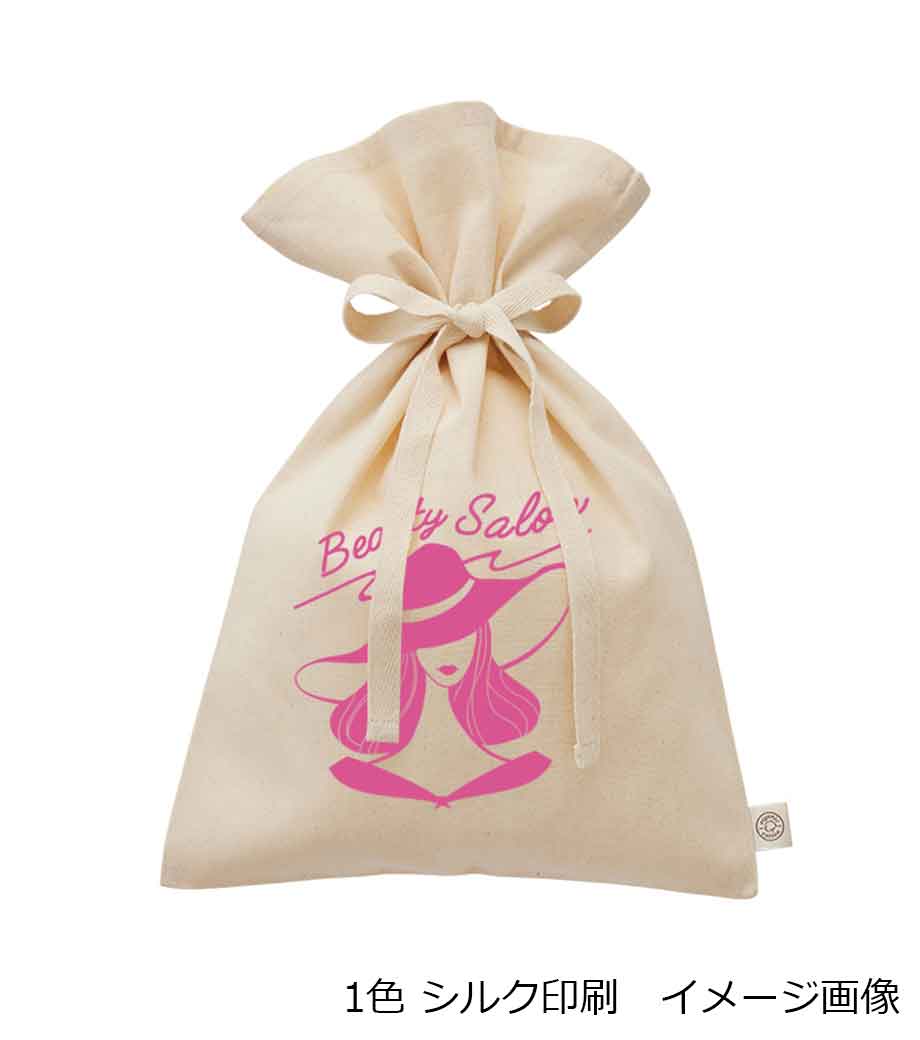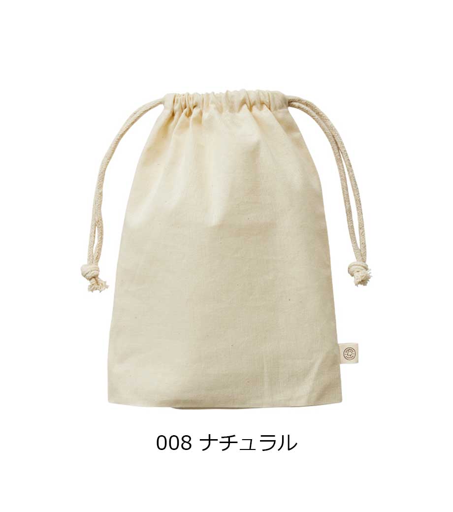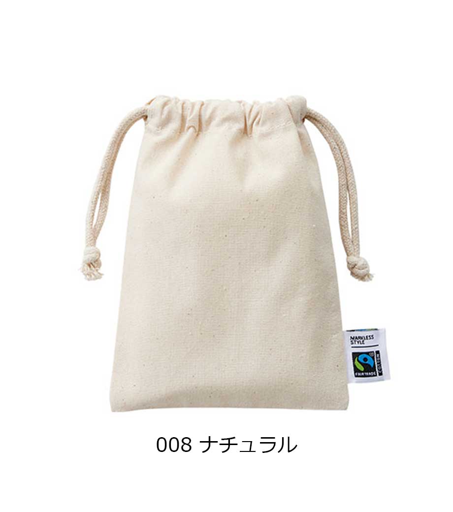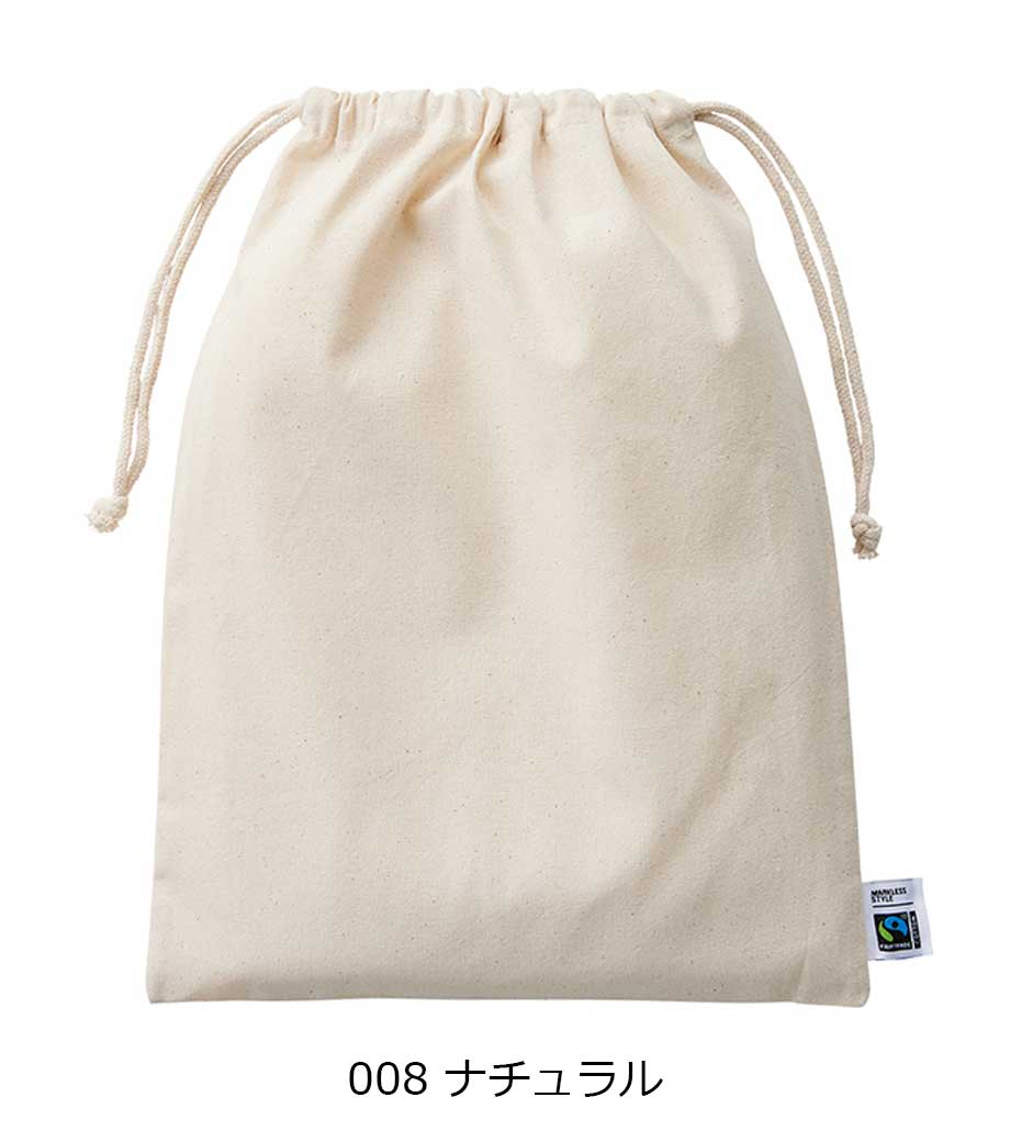 名入れ印刷が可能。ロゴやイベント名を印刷してオリジナル巾着が作れます。フェアトレード商品で持続可能な発展を支え、温かみあふれるオーガニックコットン。SDGsに取り組む企業のノベルティとしておすすめです。
