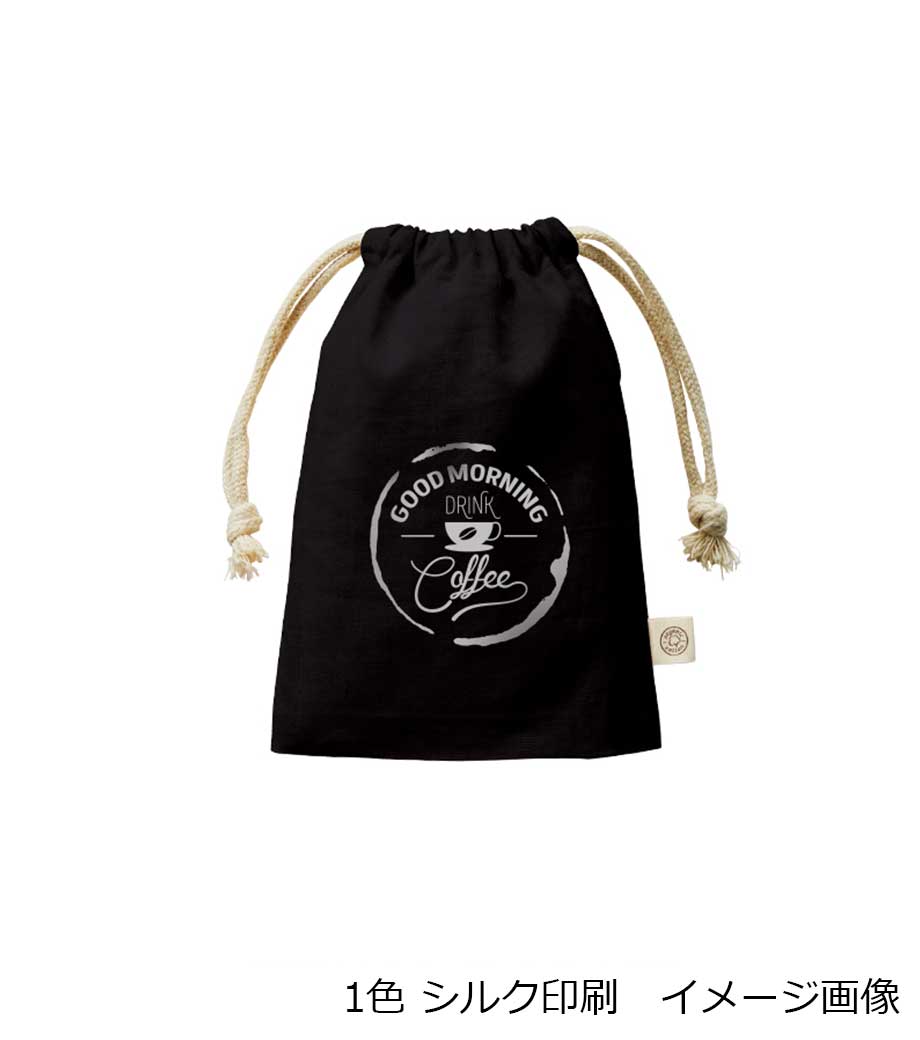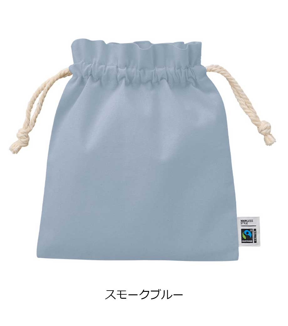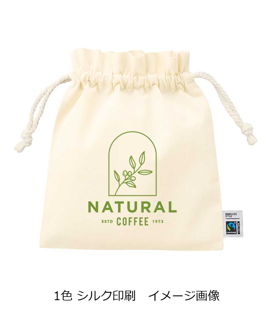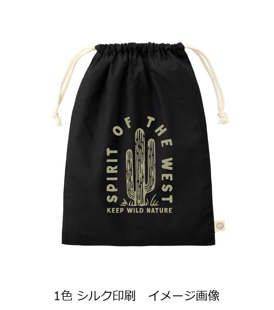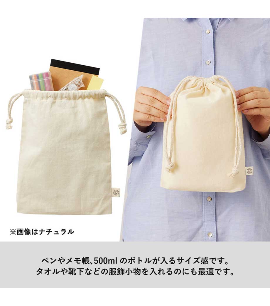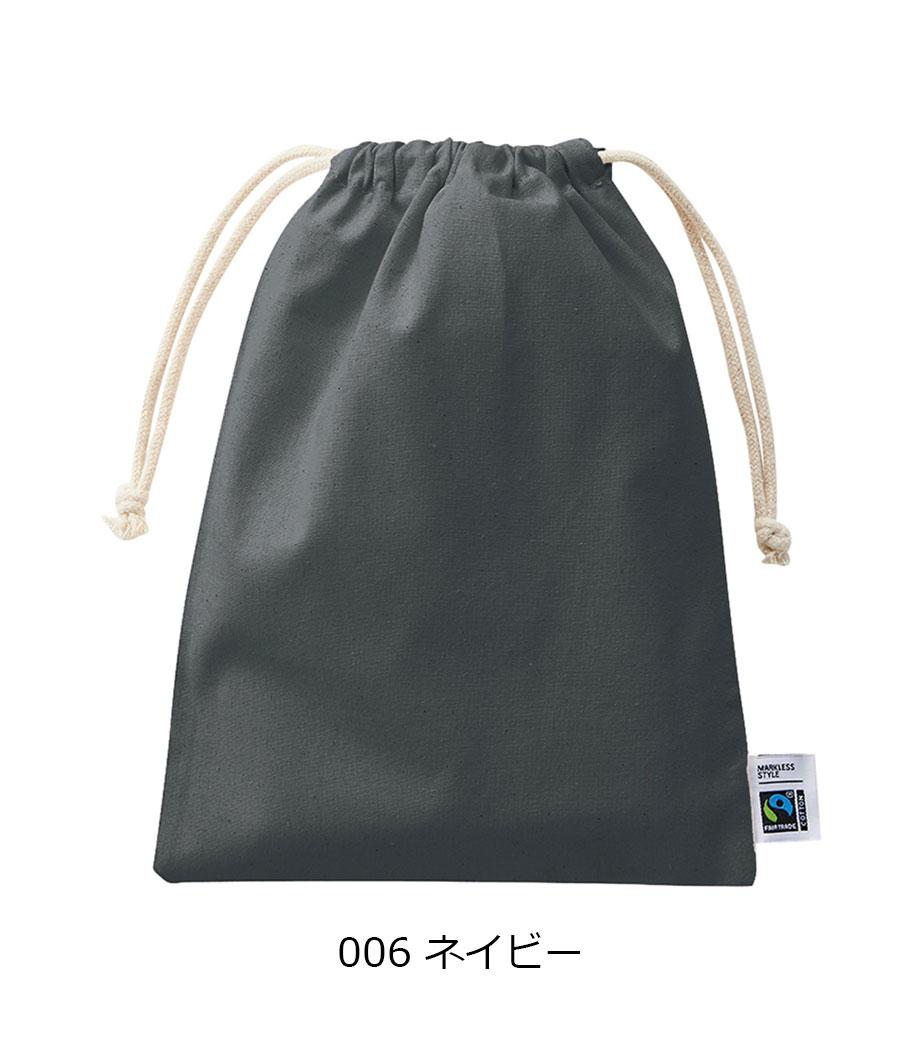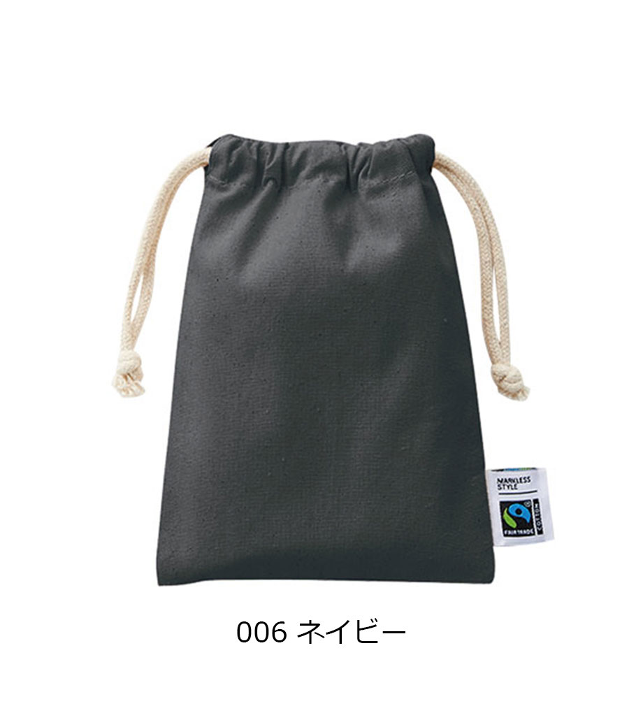 名入れ印刷が可能。ロゴやイベント名を印刷してオリジナル巾着が作れます。フェアトレード商品で持続可能な発展を支え、温かみあふれるオーガニックコットン。SDGsに取り組む企業のノベルティとしておすすめです。