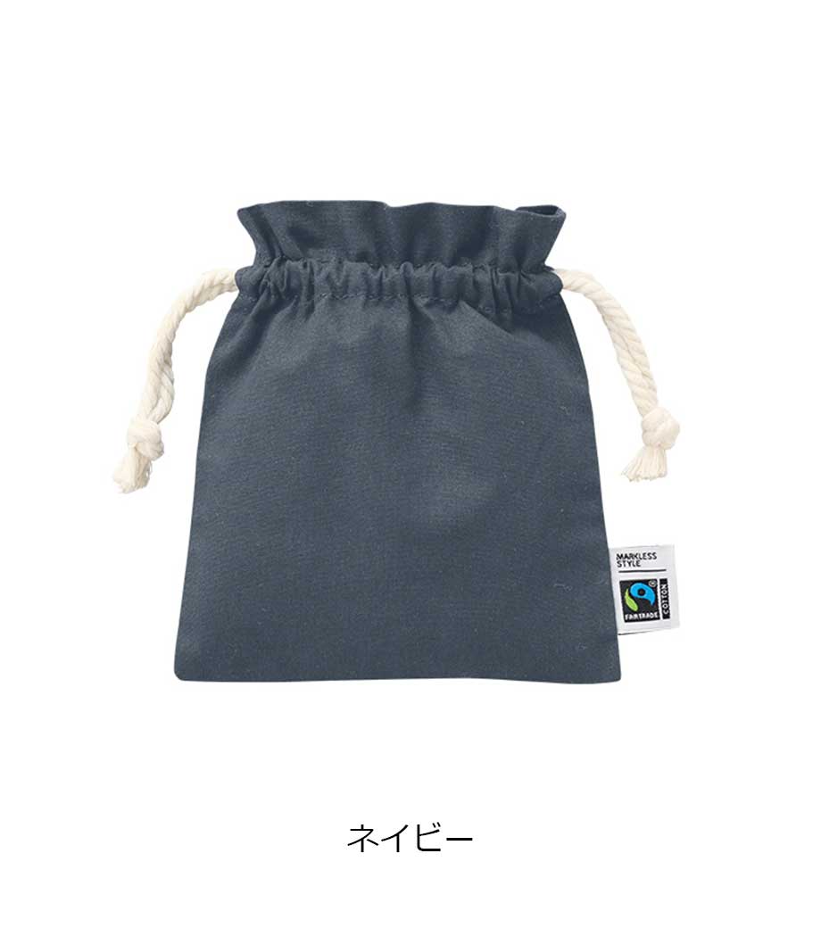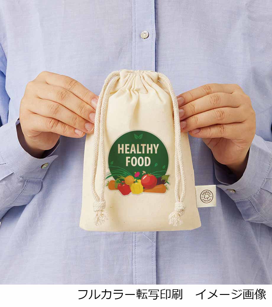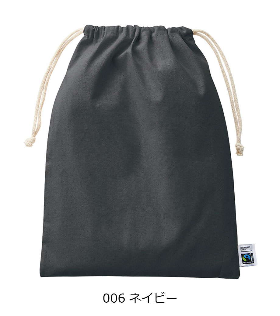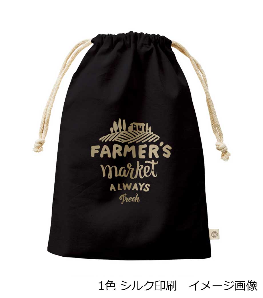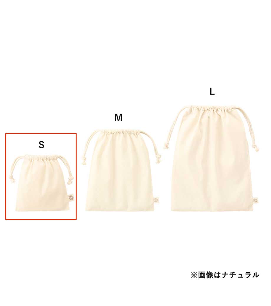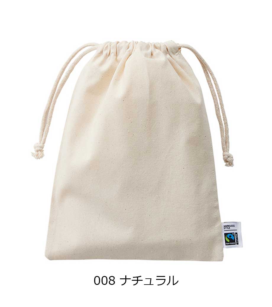 名入れ印刷が可能。ロゴやイベント名を印刷してオリジナル巾着が作れます。フェアトレード商品で持続可能な発展を支え、温かみあふれるオーガニックコットン。SDGsに取り組む企業のノベルティとしておすすめです。