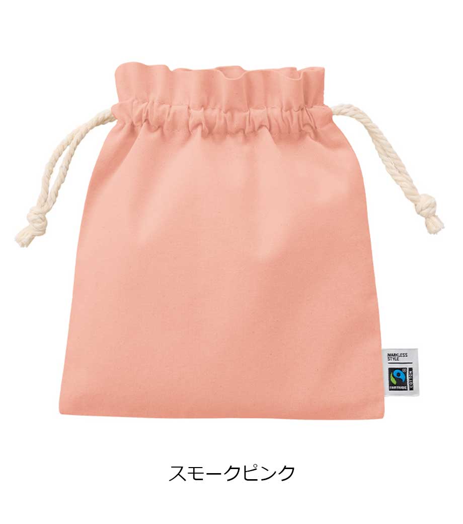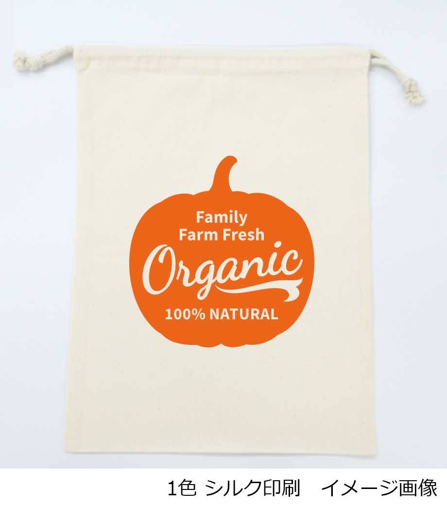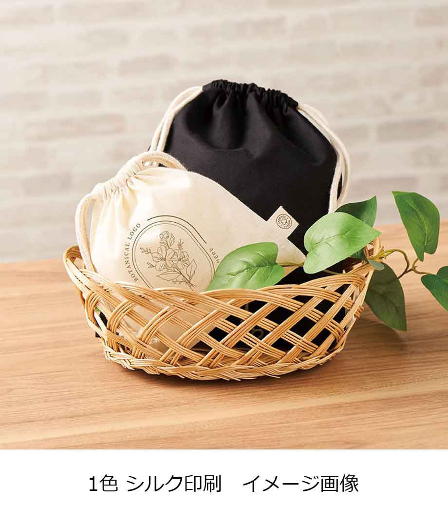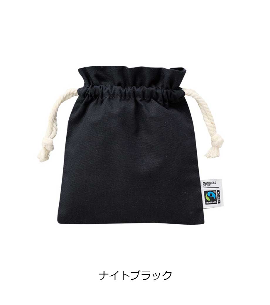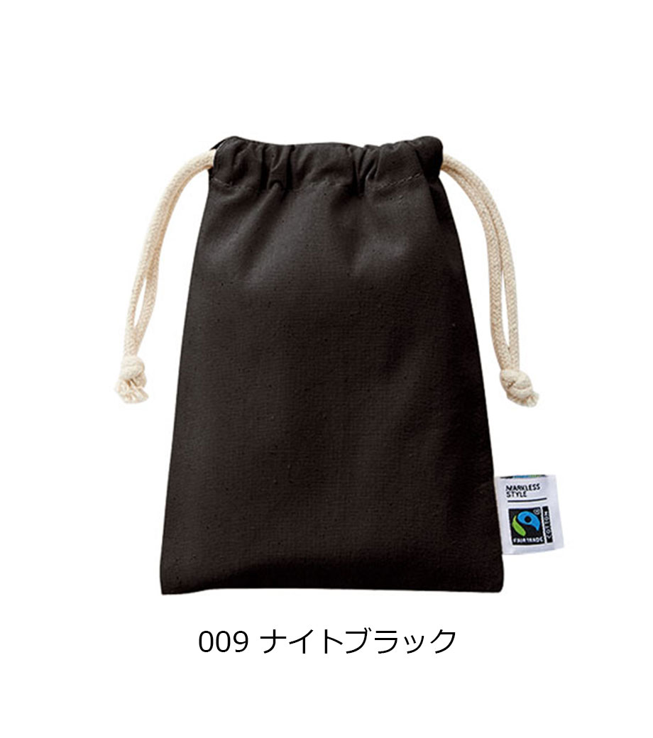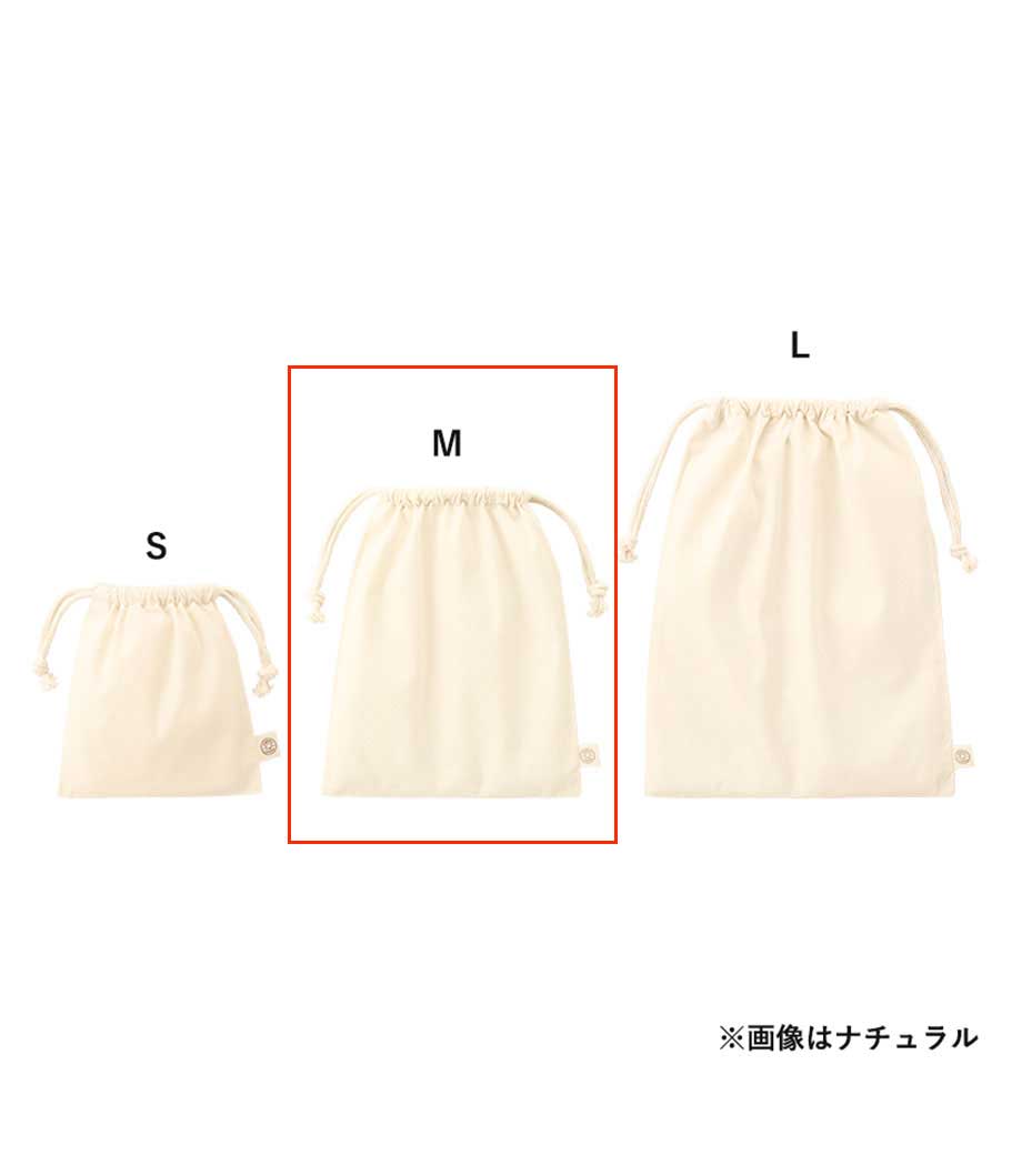 名入れ印刷が可能。ロゴやイベント名を印刷してオリジナル巾着が作れます。フェアトレード商品で持続可能な発展を支え、温かみあふれるオーガニックコットン。SDGsに取り組む企業のノベルティとしておすすめです。